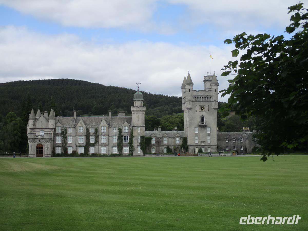 Wir legen Stops für Photos an den Burgen Corgarff Castle und Braemar Castle ein. Und wenn wir schon einmal hier sind, so besichtigen wir auch Schloß Balmoral, den Sommersitz von Elisabeth II. Da sie noch nicht anwesend ist, ist das Gelände für Besucher geöffnet. Zwar kann man nur den Bllsaal besichtigen, wird jedoch auch durch wunderschöne Parkanlagen belohnt.