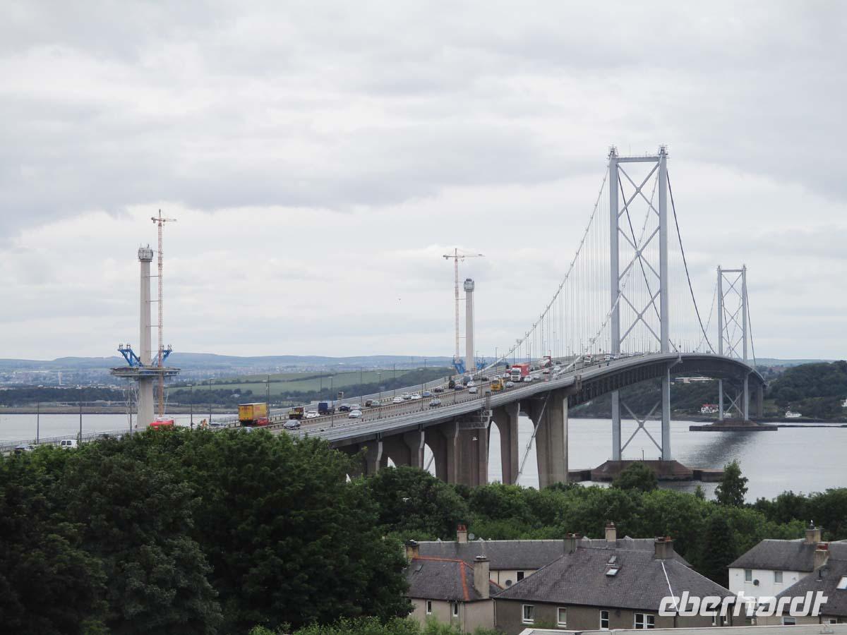 Unser Tag endet vor Hauptstadt Edinburgh in Livingston, vor dessen Erreichen wir noch die Forth Road Bridge über den Firth of Forth von einem Aussichtspunkt bestaunt haben.