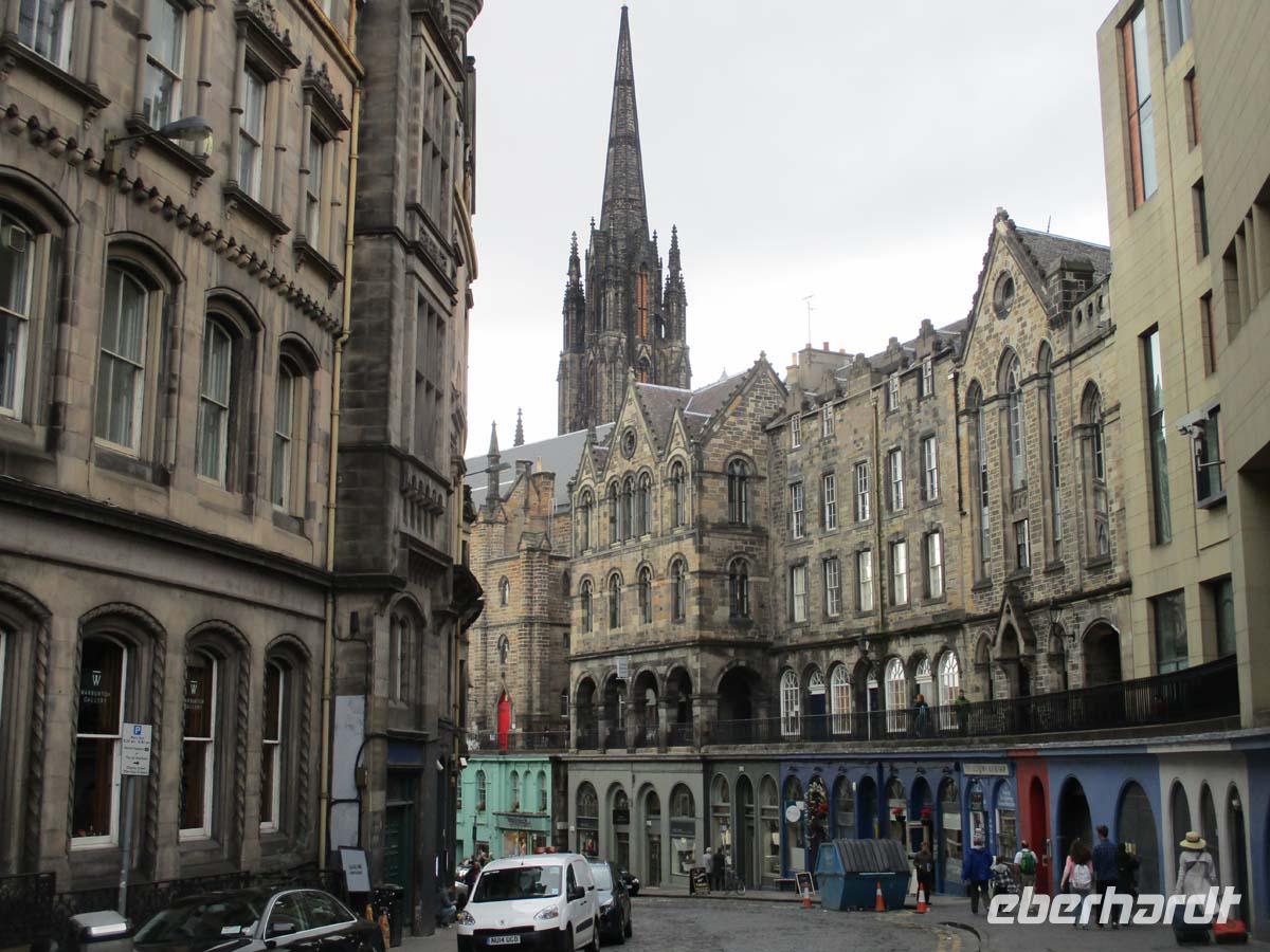 Nach dem Besuch des Schlosses haben wir freie Zeit in Edinburgh. Edinburgh hat einen ganz eigenen Charakter. Dunkle Gassen wechseln mit belebten Plätzen. Die Stadt ist eine Hochburg von Festivals. Vor dem Schloß werden gerade die Tribünen für das weltberühmte Military Tattoo Festival aufgebaut.