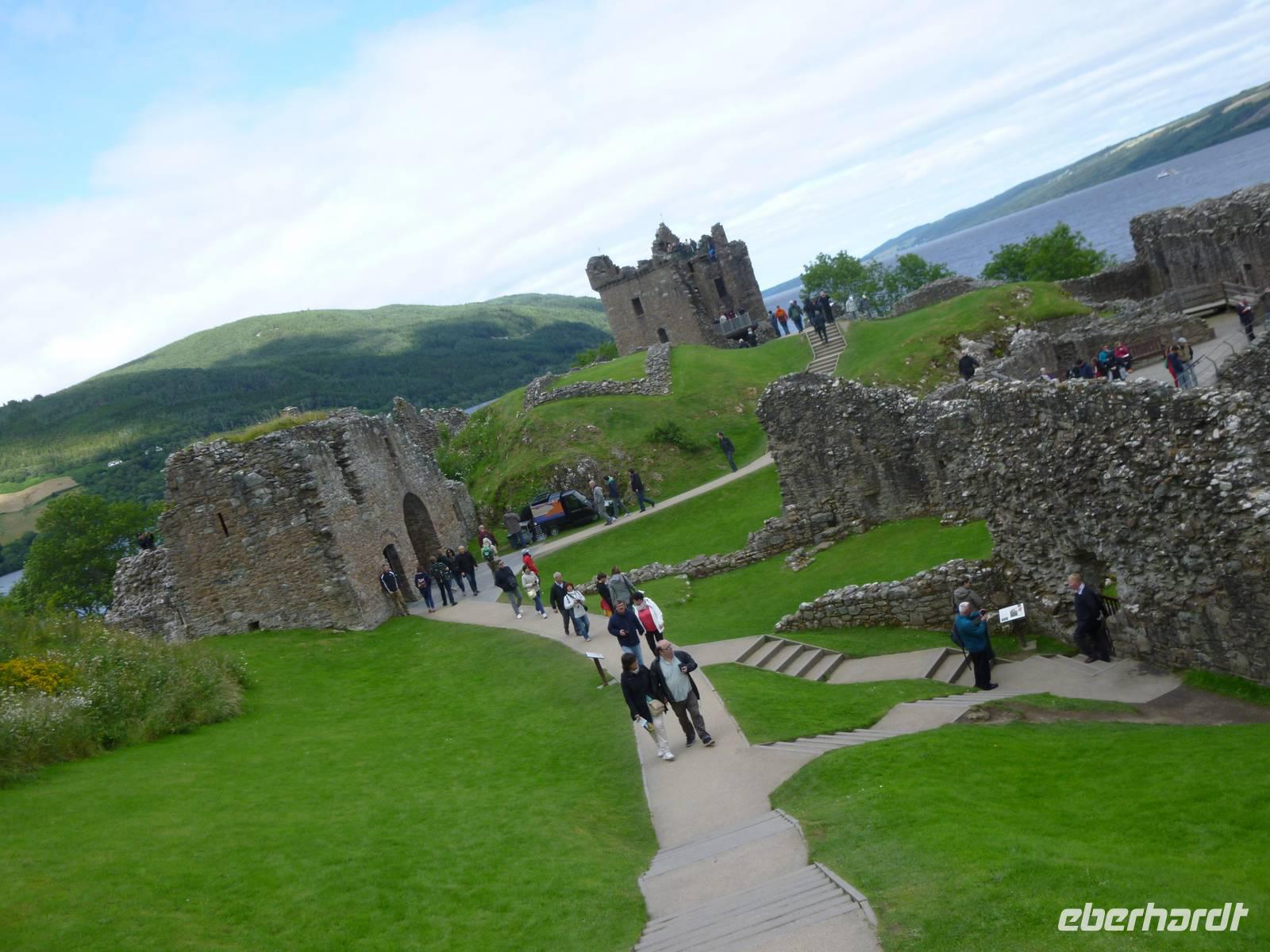 Von der romantische Ruine von Urquart Castle am See aus dem 13. Jahrhundert erklang unverwechselbar eine alte schottische Windsackweise nahe der ehemaligen Burgstallungen und wir hielten diesen besonderen Eindruck fest.