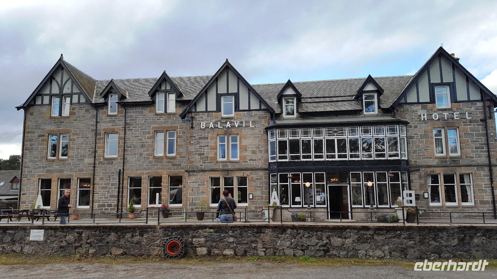 Unser nächstes Ziel hieß Falkirk Wheel, das berühmte Schiffshebewerk in Form eines Riesenrades. Auf dem Weg dorthin mußten wir lernen, dass eine Brücke mit einer Höhe von 10" für unseren Bus dann doch zu niedrig war und einen anderen Weg suchen. Endlich angekommen konnten wir auch direkt eine Hebung verfolgen. Gestärkt fuhren wir gegen 14 Uhr weiter Richtung Norden. Pitlochry war unser Ziel, genauer gesagt eine der Wiegen des "Wasser des Lebens"- die Blair Atholl Distillery. Aufgeteilt in 2 Gruppen erfuhren wir in englisch und deutsch wie Whisky hergestellt wird, die Besonderheiten des Single Malt und konnten natürlich auch diesen speziellen Tropfen verkosten. Getreu unserer Anleitung: Schauen-Riechen-Trinken-Nachbeben machten wir uns mit den einzigartigen Geschmacksnuancen vertraut. Danach ging es weiter zum Hotel, unser Balavil Hotel in Newtonmore erreichten wir gegen 18 Uhr so dass bis zum Abendessen noch genügend Zeit blieb sich einzurichten und anzukommen.