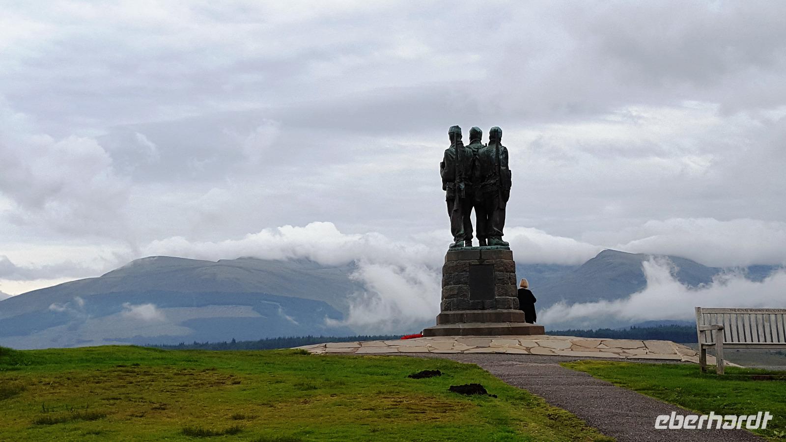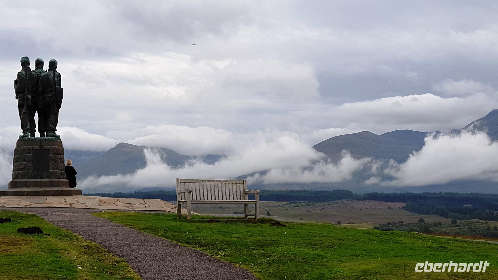 Am Commando Memorial, einem Kriegerdenkmal zu Ehren der britischen Commandos des zweiten Weltkrieges halten wir. Hier fand während des Krieges die Ausbildung der Commandos statt. Und hier haben wir auch eine tolle Aussicht auf die Berge ringsherum. Der Ben Nevis versteckt sich natürlich unter einer Wolkenkappe. An den anderen Bergen stauen sich die Wolken- tolle Bilder werden aufgenommen. Weitere Foto-Stops folgen bevor wir wieder unser Hotel erreichen und uns zum Abendessen treffen.