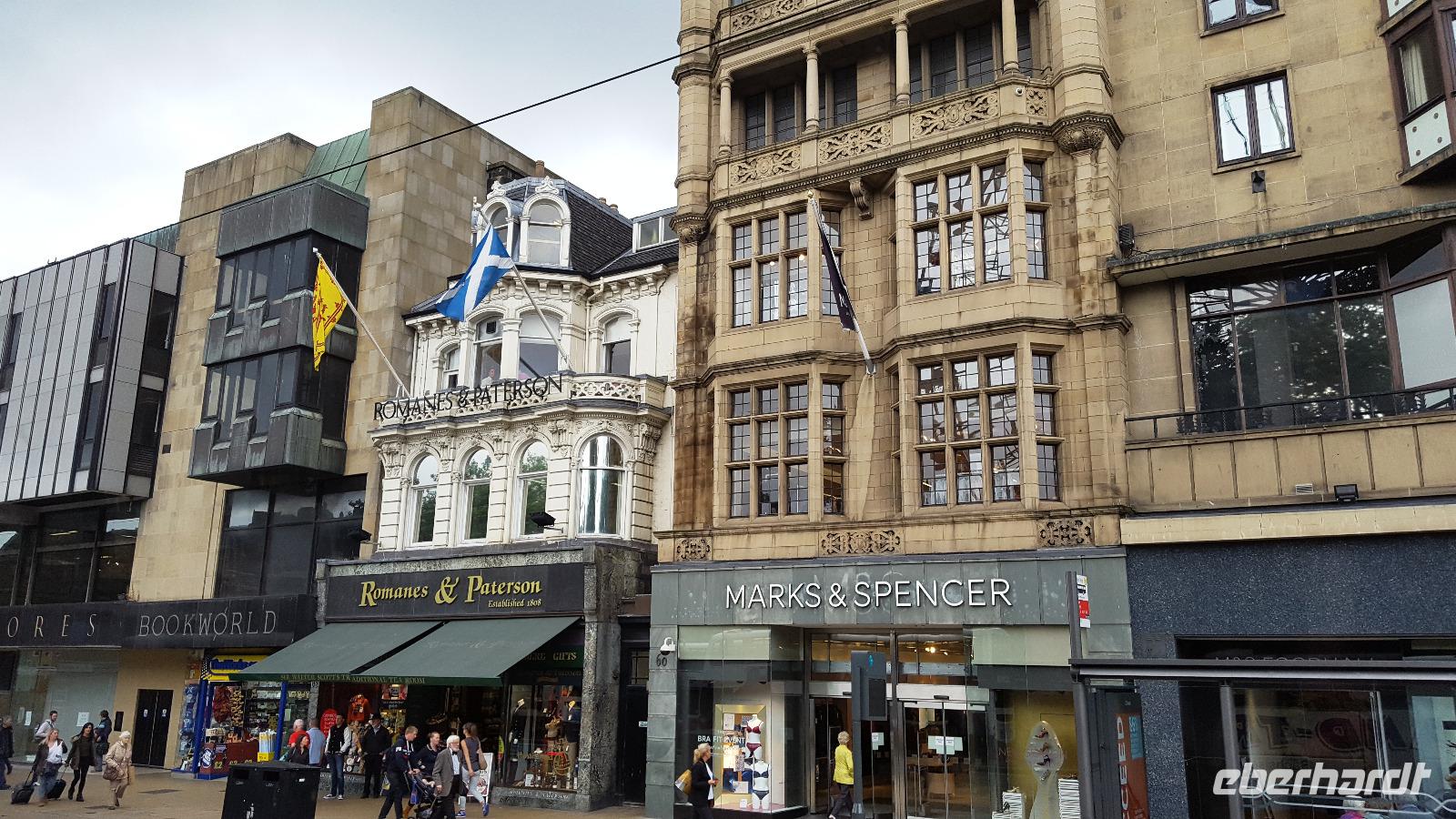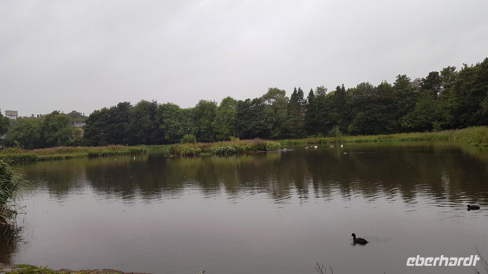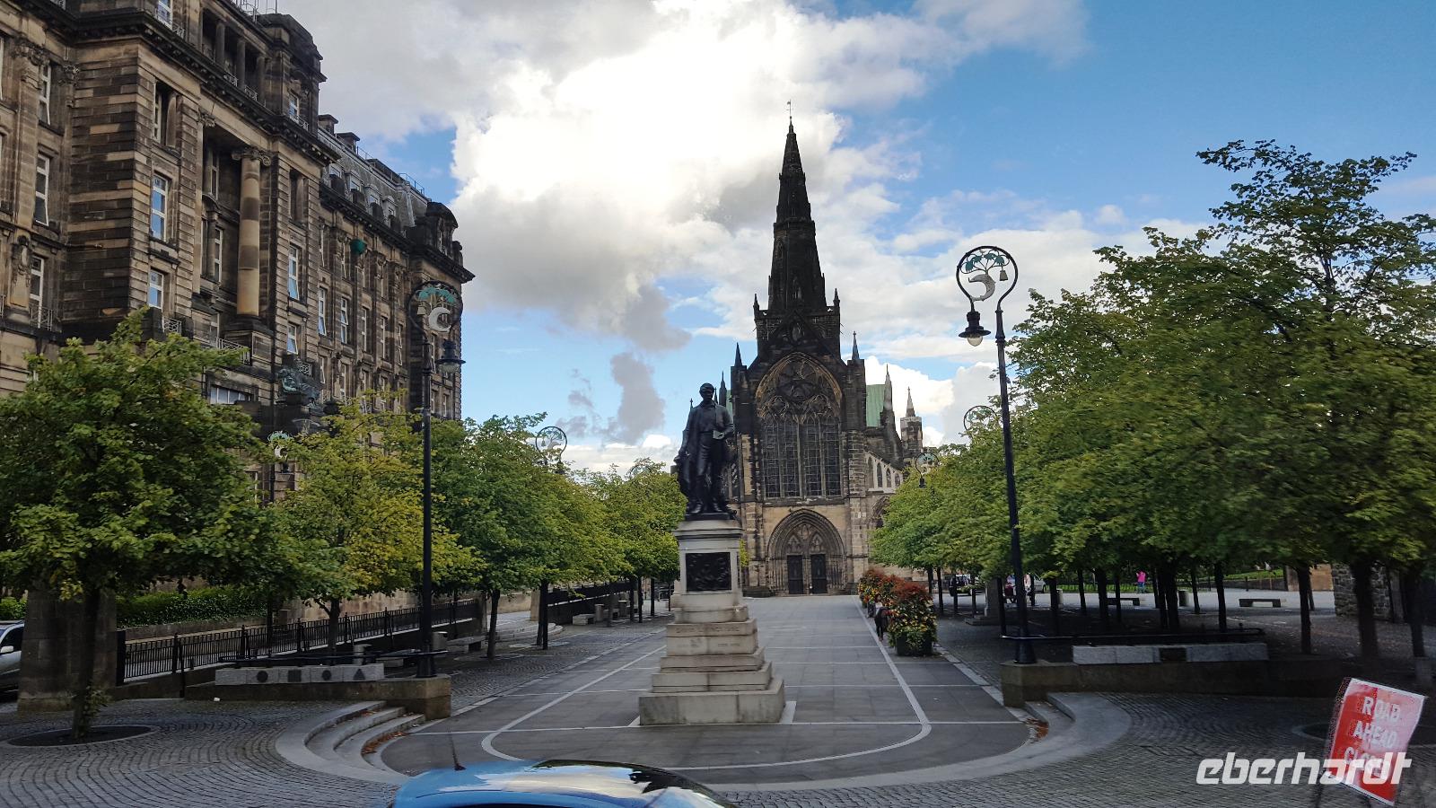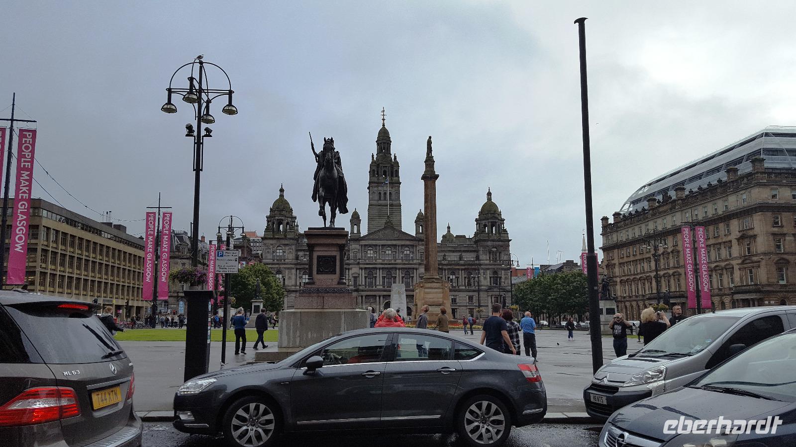 Nach einem ausgiebigen Bummel ging es weiter über die M74, leider mit etlichen Baustellen, so dass wir unser Hotel in Glasgow erst mit einer Stunde Verspätung erreichten. Wir begrüßten also rasch unsere Fluggäste und los ging es mit unserem Guide Gordon Fraser, die Stadt zu entdecken. In Glasgow fand an diesem Sonntag ein Radrennen statt- nicht gut für uns, denn da Stadtzentrum war weiträumig abgesperrt. Trotzdem konnten wir die Universität sehen, am Hafen die neuen Gebäude, die die Glasgower liebevoll ihr "Gürteltier" oder ihre "fliegende Untertasse" nannten. Zurück am Pond Hotel (benannt nach dem Teich neben dem Hotel) konnten wir kurz ausruhen, bis wir um 19:30 Uhr gemeinsam unser Abendessen einnahmen.