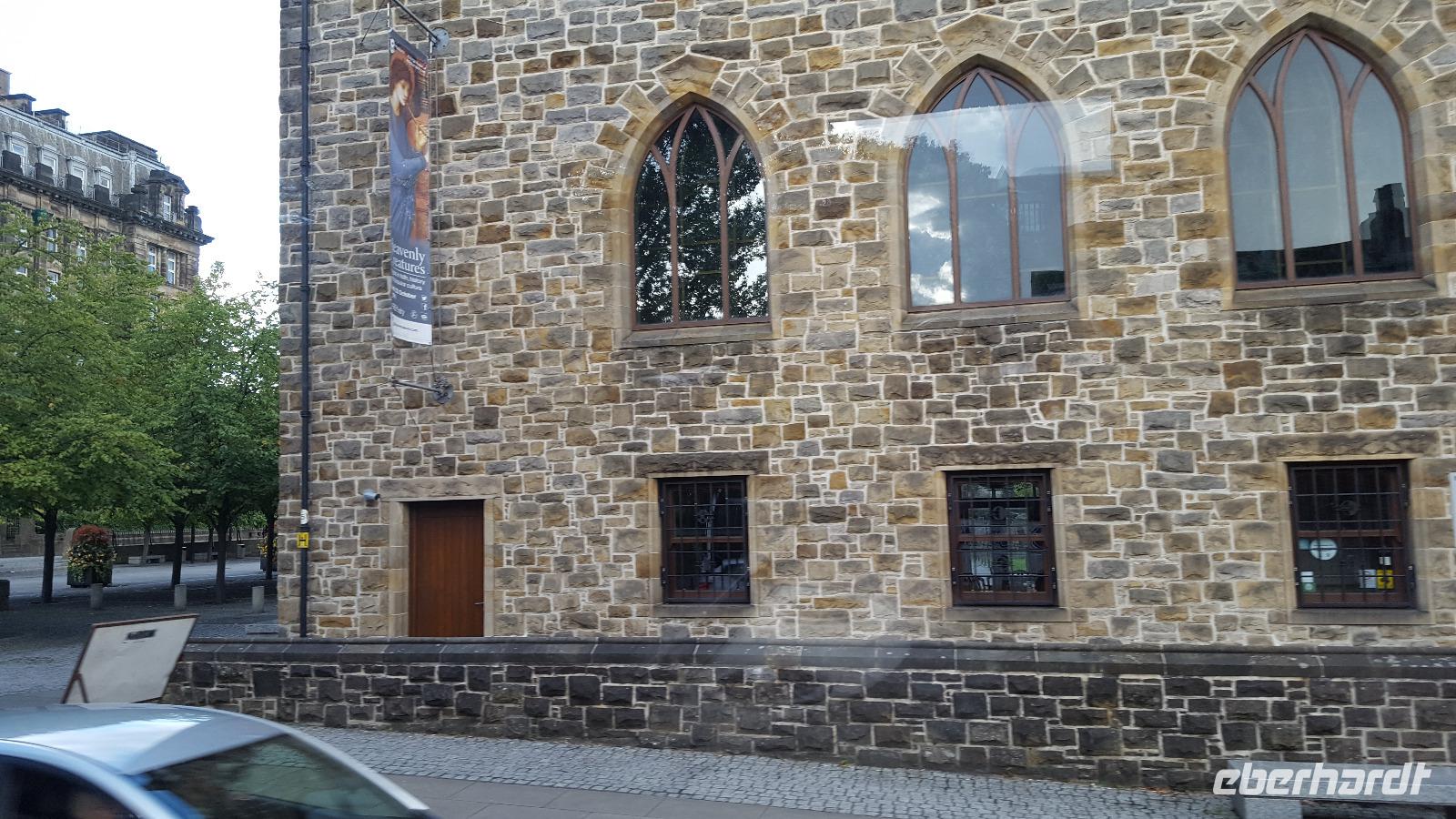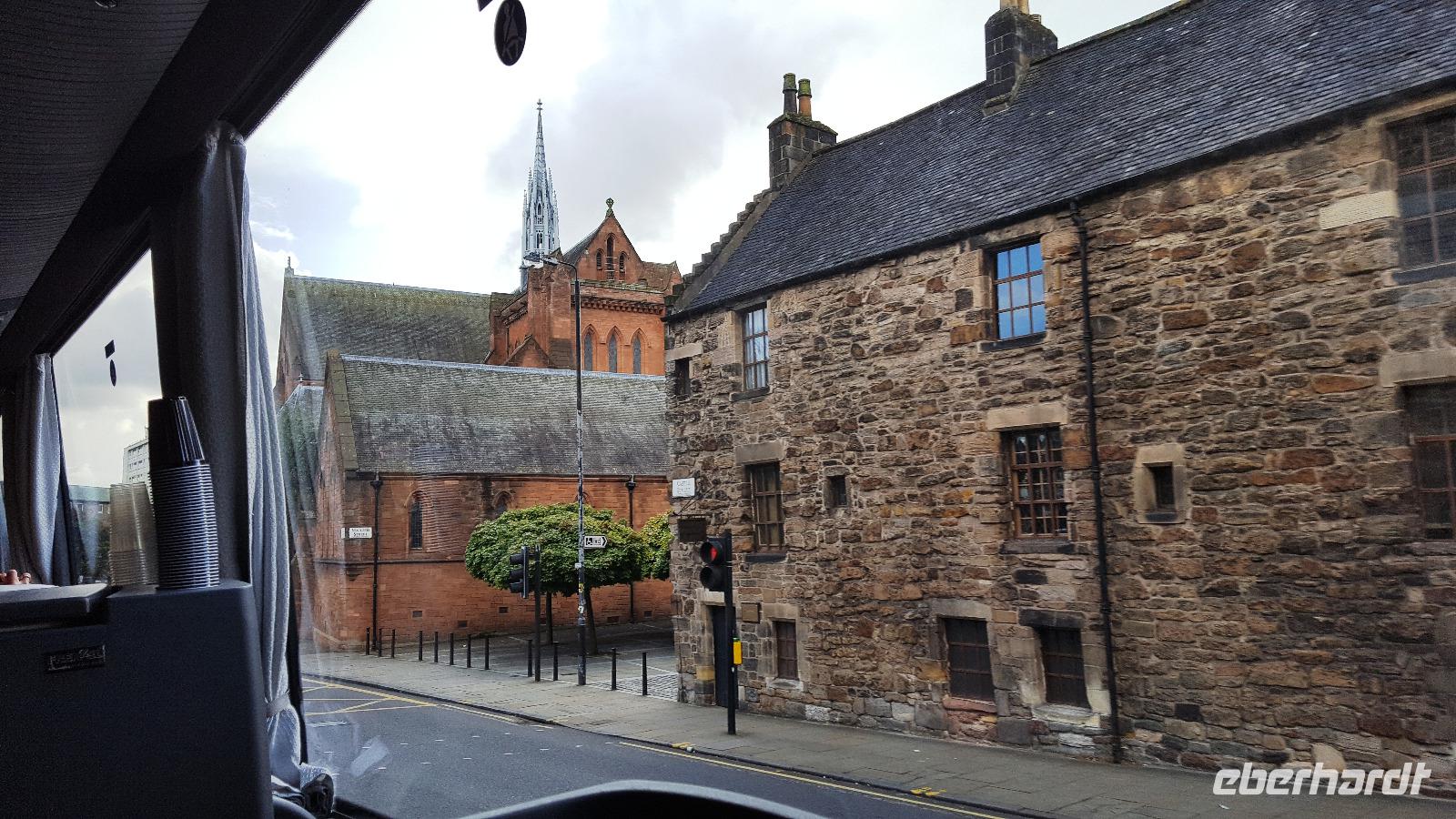 Nach unserem Frühstück brechen wir nach Edinburgh auf. Unsere Stadtführerin heißt Suzie Weigert, sie treffen wir am Charlotte Square. Das Wetter spielt mit und so führt sie uns durch ihre Stadt, wir können für tolle Fotos am Botanischen Garten, am Palace of Holyroodhouse und auf Arthers Seat, dem hohen Berg im Herzen der Stadt aussteigen. Sie erzählt von der Fenstersteuer, die der Premier Wilhelm Pitt eingeführt hatte, was zu zugemauerten Fenstern führte, die heute "Portraits of Wilhelm Pitt" heißen. Dass man im Steuern- Erfinden durchaus fantasievoll war zeigen die "Rauchpfennige" für die Anzahl der Kamine oder die "Sattelsteuer" für die Pferde. Wir sehen die Neustadt, die entstand, als es in der Altstadt zu eng, zu stickig und zu voll wurde, das ist bereits wieder 250 Jahre her. In den Parlamentsgebäuden bewundern wir die Anbauten, gewagte Architektur! Über die Kuhgasse und den Grassmarket geht es dann zur Burg. Gemeinsam besichtigen wir Edinburgh Castle bevor jeder bis zum Abend Zeit hat, die Stadt für sich zu entdecken. Das Wetter wäre nicht schottisch, wenn es nicht wieder beginnen würde zu regnen. Dazu kam am späten Nachmittag ein ausgesprochen ungemütlicher Sturm. Mit unheimlichen Geräuschen pfiff er durch die Tribünen-Aufbauten des Military Tattoo, das im August stattfand. Etliche Schirme versagten ihren Dienst auf dem Weg zum Bus und oftmals mußte man sich festhalten, wollte man nicht einfach umgeweht werden.