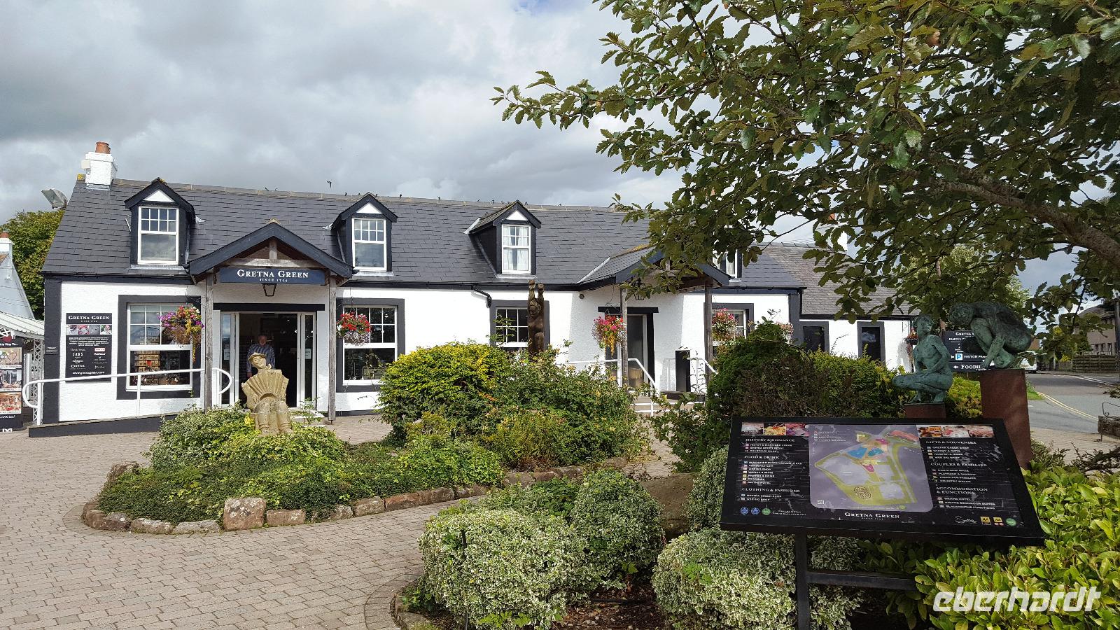 Weiter fuhren wir zu einem nicht minder geschichtsträchtigen Ort: Gretna Green. Auf der alten Postkutschenroute nach Norden war Gretna Green das erste Dorf auf schottischem Boden, hier nutzten ab 1753 minderjährige Paare erst aus England, später aus der ganzen Welt die Möglichkeit, heiraten zu dürfen. Da hatte nämlich die englische Rechtsprechung verfügt, dass bei Eheschließungen unter Minderjährigen die Zustimmung der Eltern vorgeschrieben wurde.