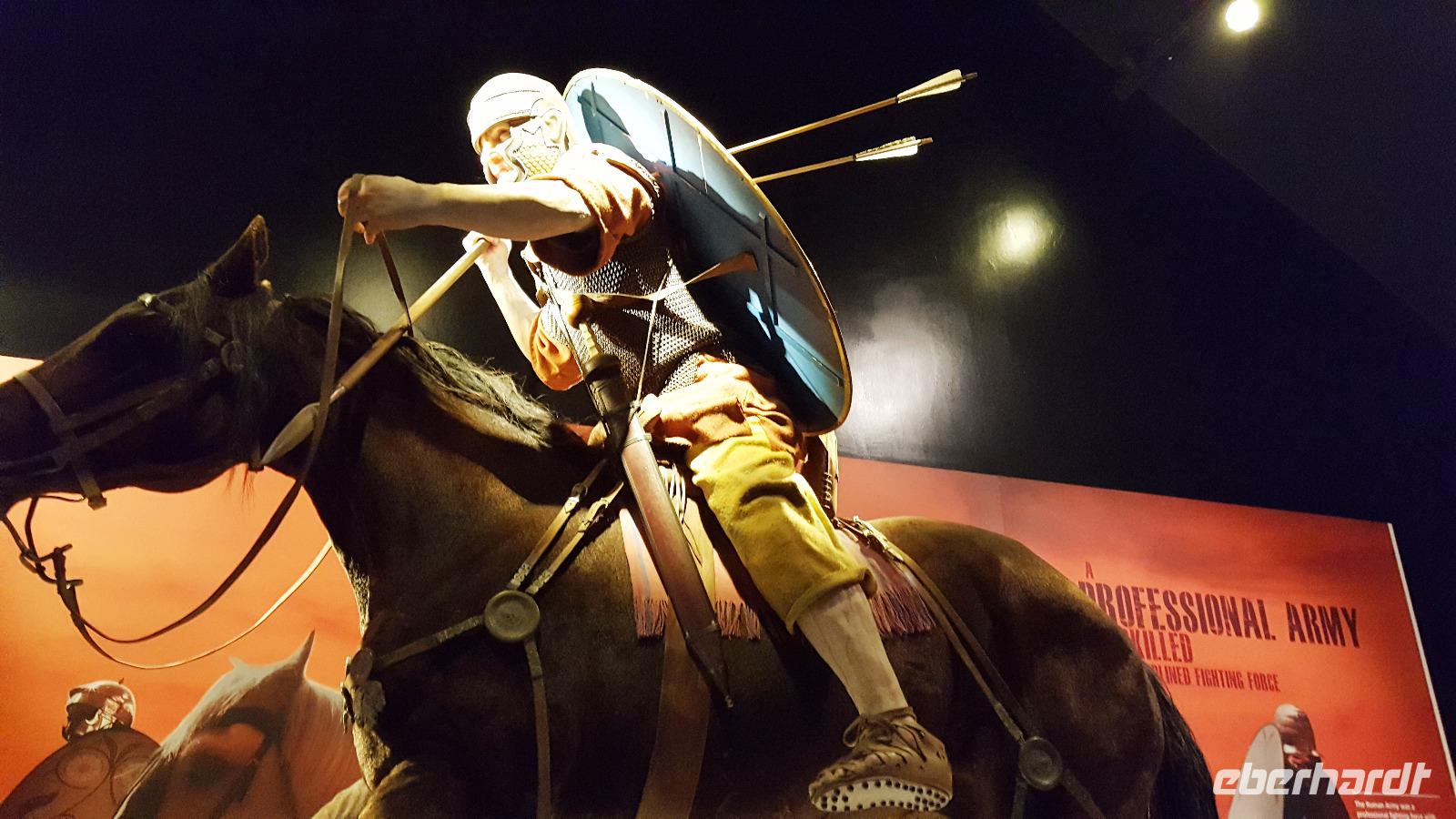 Nach einem individuellen Frühstück beobachteten wir, wie die Fähre gegen 09:00 Uhr Ortszeit anlegte. Während auf See noch die Sonne den neuen Tag begrüßte, empfing uns an Land typisch englisches Wetter, leichter Niesel. Newcastle, die Stadt, die schon als römische Siedlung am Hadrianswall bekannt war, war dann unser Ausgangspunkt für die Erkundung dieses Abschnittes des britischen Limes. Mit den Befestigungs- und Wallanlagen sollten der Norden, die Küsten und Hauptverkehrswege des römisch besetzten Britannien geschützt werden. Vorbei an Corbridge, einem wichtigen Versorgungsstützpunkt des Hadrianswalls, fuhren wir bis Greenhead. Dort war Zeit, das Museum der römischen Armee zu besuchen und sich ein Bild vom damaligen Besatzer-Leben zu machen.