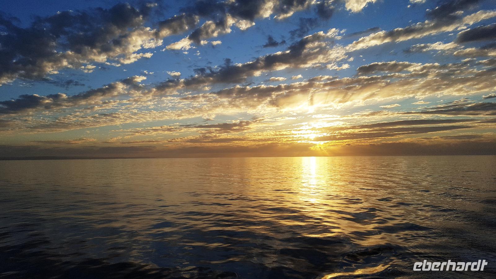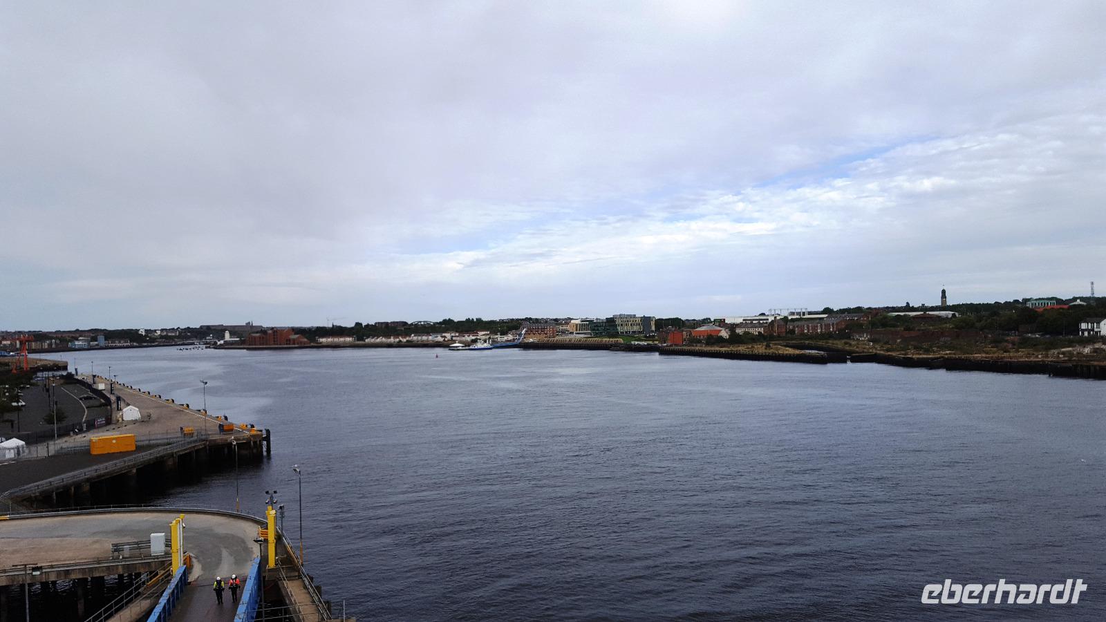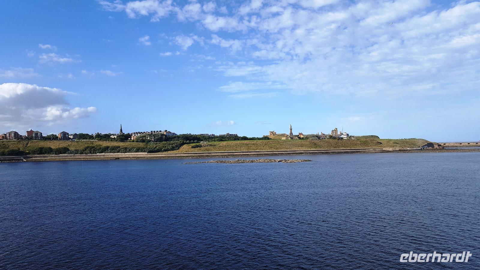 Pünktlich erreichen wir zum CheckInn die Fähre und legen um 16:45 ab. Wir können die Tyne-Mündung verfolgen, sehen das Collingwood Monument und die Ruinen der "Spanish Battery" am Nordufer. Wieder ist unsere Fähre die Princess Seaway und alle freuen sich auf das leckere Bufett am Abend. Wir werden nicht enttäuscht. Ein toller Sonennuntergang an Bord versöhnt uns auch mit dem schottischen Wetter und als Highlight tummeln sich Tümmler in einiger Entfernung.