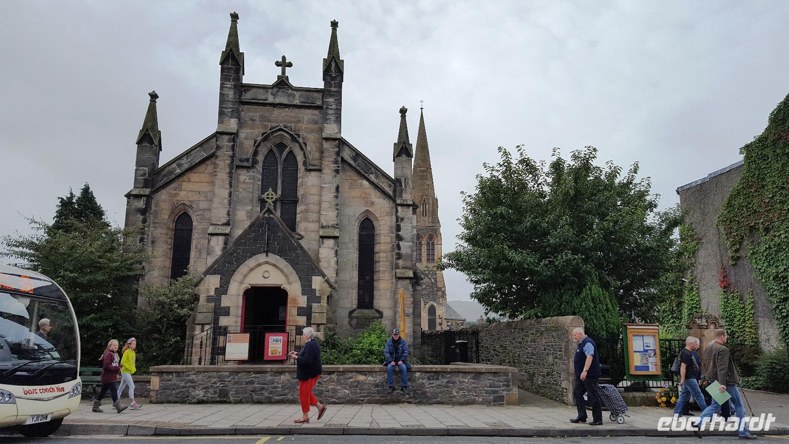 Nach unserem Frühstück brechen wir heute wieder Richtung Hafen auf. Unser Weg führt durch die Lowlands und später die Scottish Borders. Wobei Low nicht wirklich niedrig heißt, immerhin ist die höchste Erhebung hier 840 Meter hoch. Wir halten in Peebles, einem Ort, der bereits seit dem 12. Jahrhundert eine "Royal Burgh" ist, was freie Stadt bedeutet. Die einstige Marktstadt ist heute ein beliebter Erholungsort. Unser nächster Stop ist in Melrose. Hier schauen wir uns die Ruinen der Melrose Abbey an bevor wir gegen Mittag Jedburgh erreichen. Hier hat noch einmal jeder Gelegenheit, indivuduell die Stadt zu erkunden, die Abbey anzuschauen oder die Kirche mit ihrem wunderschönen Rosettenfenster, dem "St. Catherines´s Wheel", dem Rad der heiligen Katharina.