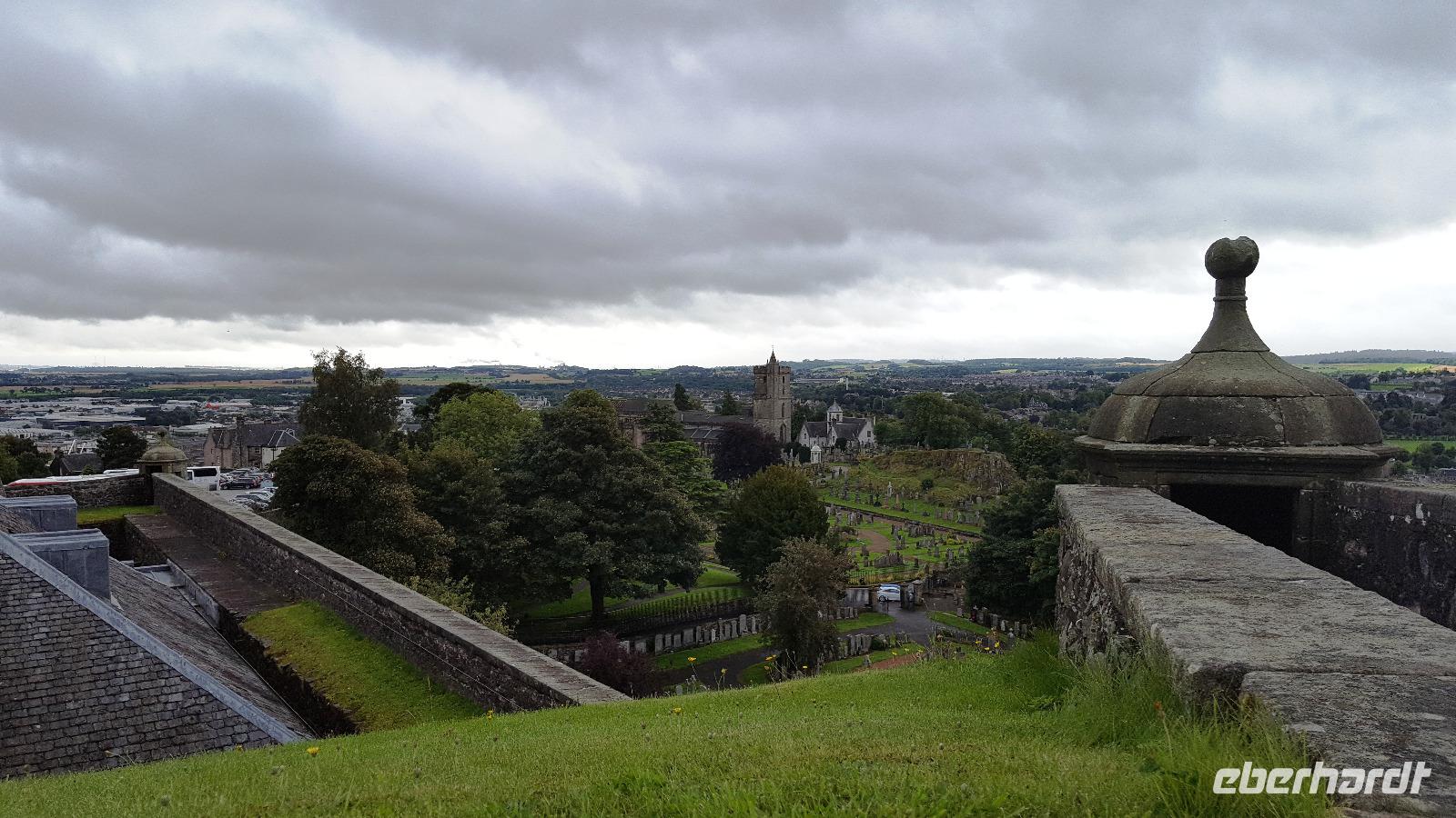 Nach einem ausgiebigen Frühstück starteten wir heute nach Stirling. Wir nutzten aber die Gelegenheit, am George Square kurz anzuhalten, was wir ja am Sonntag wegen der Sperrungen nicht konnten. Stirling Castle war dann unser Ziel. Hier konnte jeder das Castle, die Krönungskirche und das Städtchen erkunden. Als Schicksalsburg im Herzen Schottlands spielte die Burg eine wichtige Rolle in der Geschichte, wurde mindestens 16 Mal belagert oder angegriffen, 4 Schlachtfelder liegen in unmittelbarer Nähe und obwohl sie uneinnehmbar erscheint wechselte sie gerade im 13. und 14. Jahrhundert ständig die Besitzer. Bis 1685 war sie eine der Hauptresidenzen schottischer Könige, danach Hauptquartier des Regiments der Argyll and Sutherland Highlanders. Direkt gegenüber der Burg erinnert das Wallace- Monument an den schottischen Feldherren William Wallace, dessen Sieg bei Stirling Pridge 1297 Vorlage des Filmes Bravehart wurde.