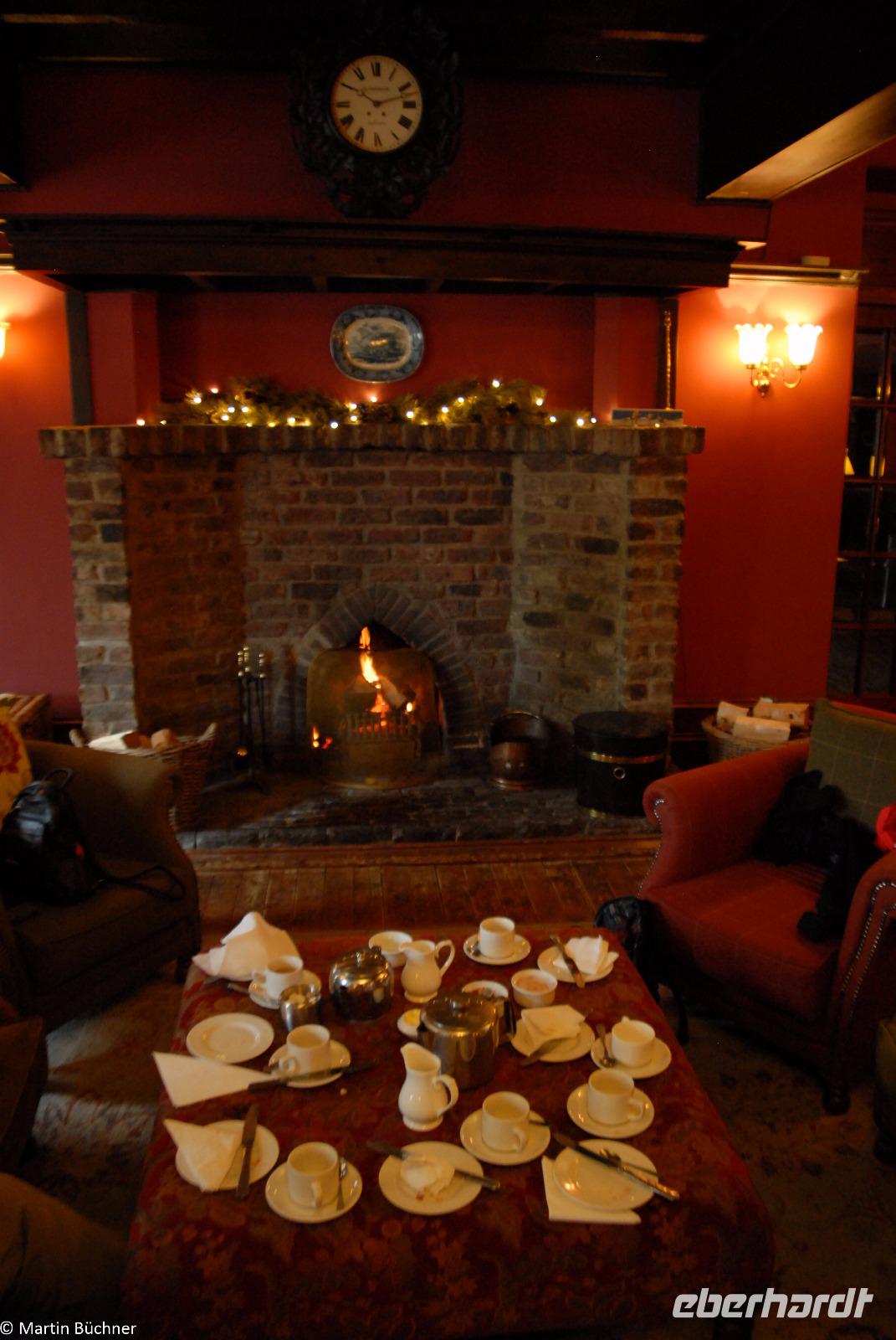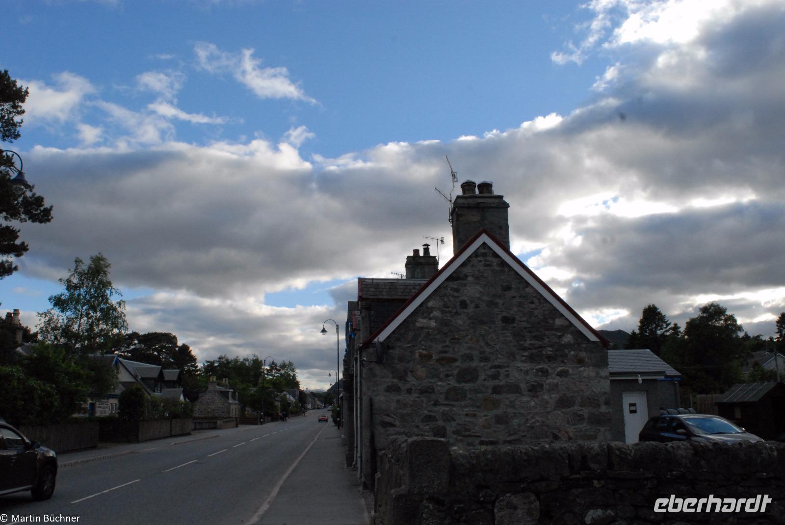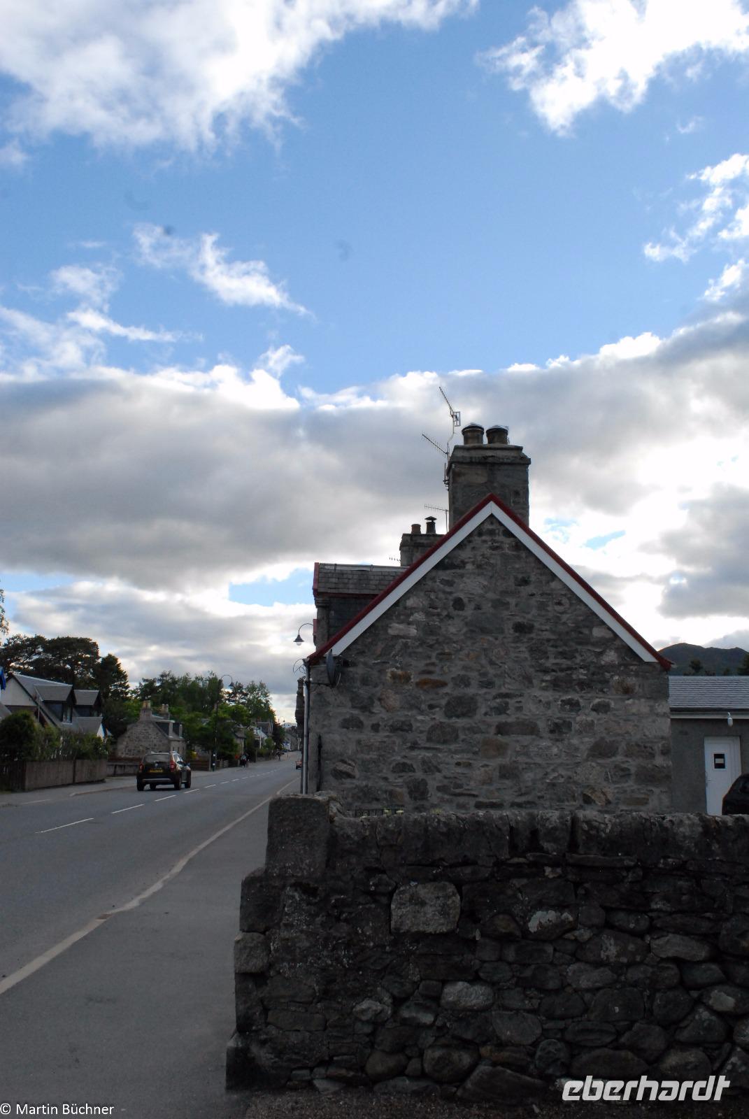 In Ballater lassen wir uns in Ur-Schottischem Ambiente am knisternden Kaminfeuer von einem typischen Creamtea mit seinem Tee und frisch gebackenen Scones samt Clotted Cream und Strawberry Jam verwöhnen, während draußen in Bindfäden Whisky produziert wird.