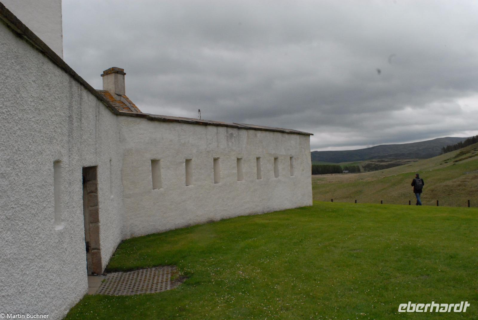 Mitten in den Bergen liegt eine unscheinbare Befestigung, genannt Corgarff Castle. Aus heutiger Sicht völlig unverständlich, warum dieses Gebäude errichtet wurde. In früherer Zeit lag es an der Old Military Road die das Fort George bei Inverness mit Edinburgh, indirekt mit London verband und damit wichtiger Nachschub war. Besonders beliebt dürfte dieses Gebäude nicht gewesen sein, wichtigste Aufgabe war es, illegale Whisky Produktion aufzuspüren und zu vernichten. Der Sinn ist auch deshalb fraglich, weil die Schotten natürlich nie, ich betone nie, illegal Whisky brennen würden oder in früherer Zeit jemals illegal gebrannt hätten...