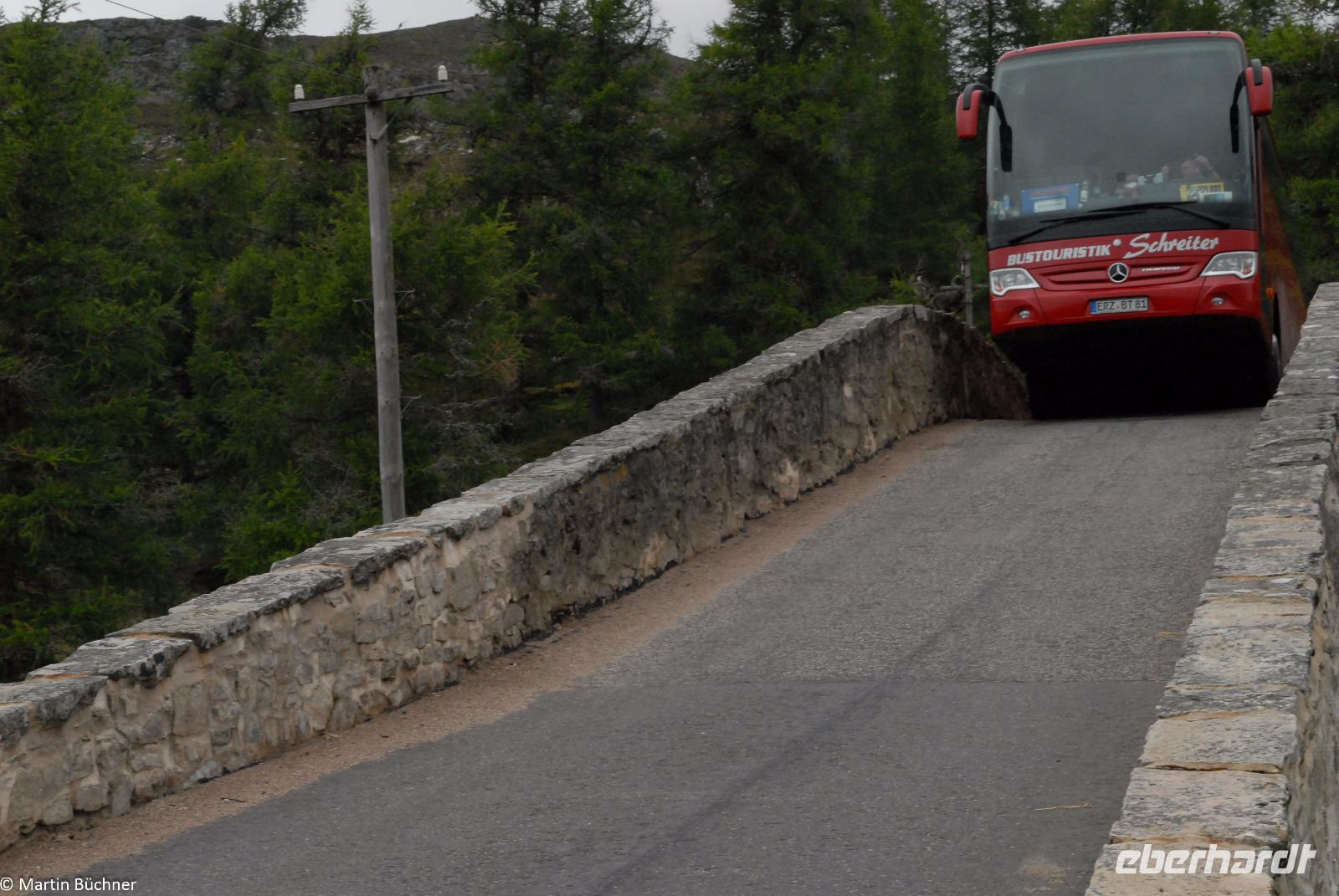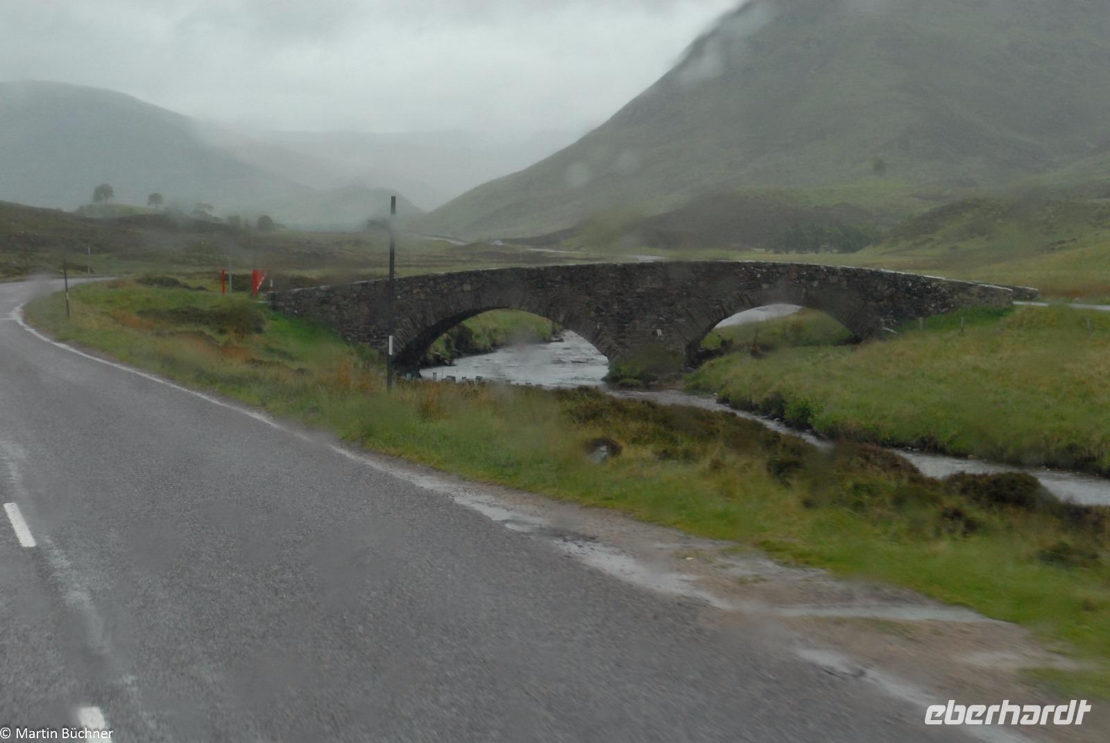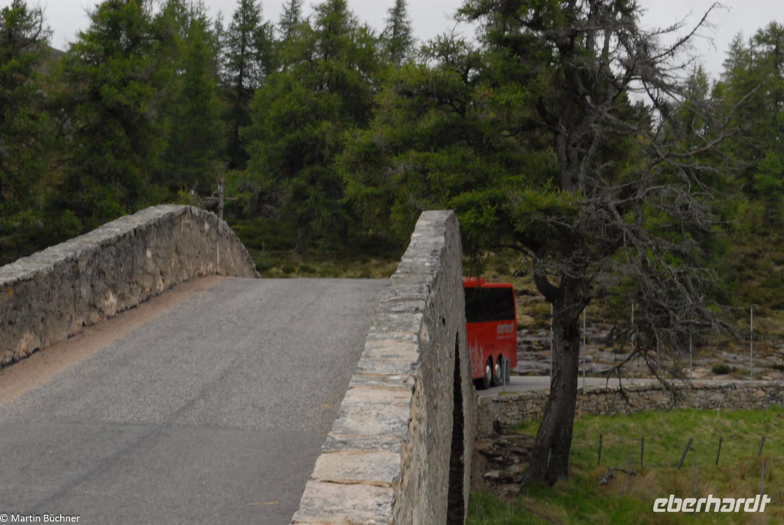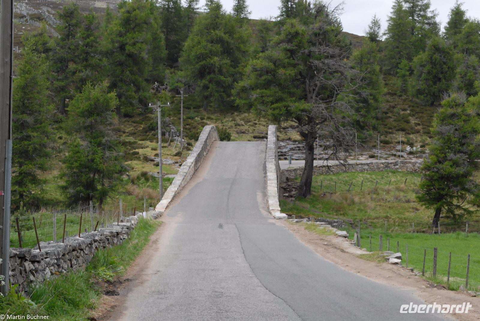 Auf dem Weg in Richtung Ballater überqueren wir die River Gairn Bridge. Wir steigen aus und gehen zu Fuß über die Brücke, natürlich nur um die spektakuläre Überfahrt unseres Busses über diese steile alte Steinbrücke zu beobachten. Unser Bus von Bustouristik Schreiter hat einen perfekt gepflegten Unterboden!!