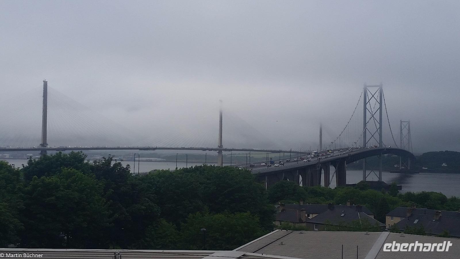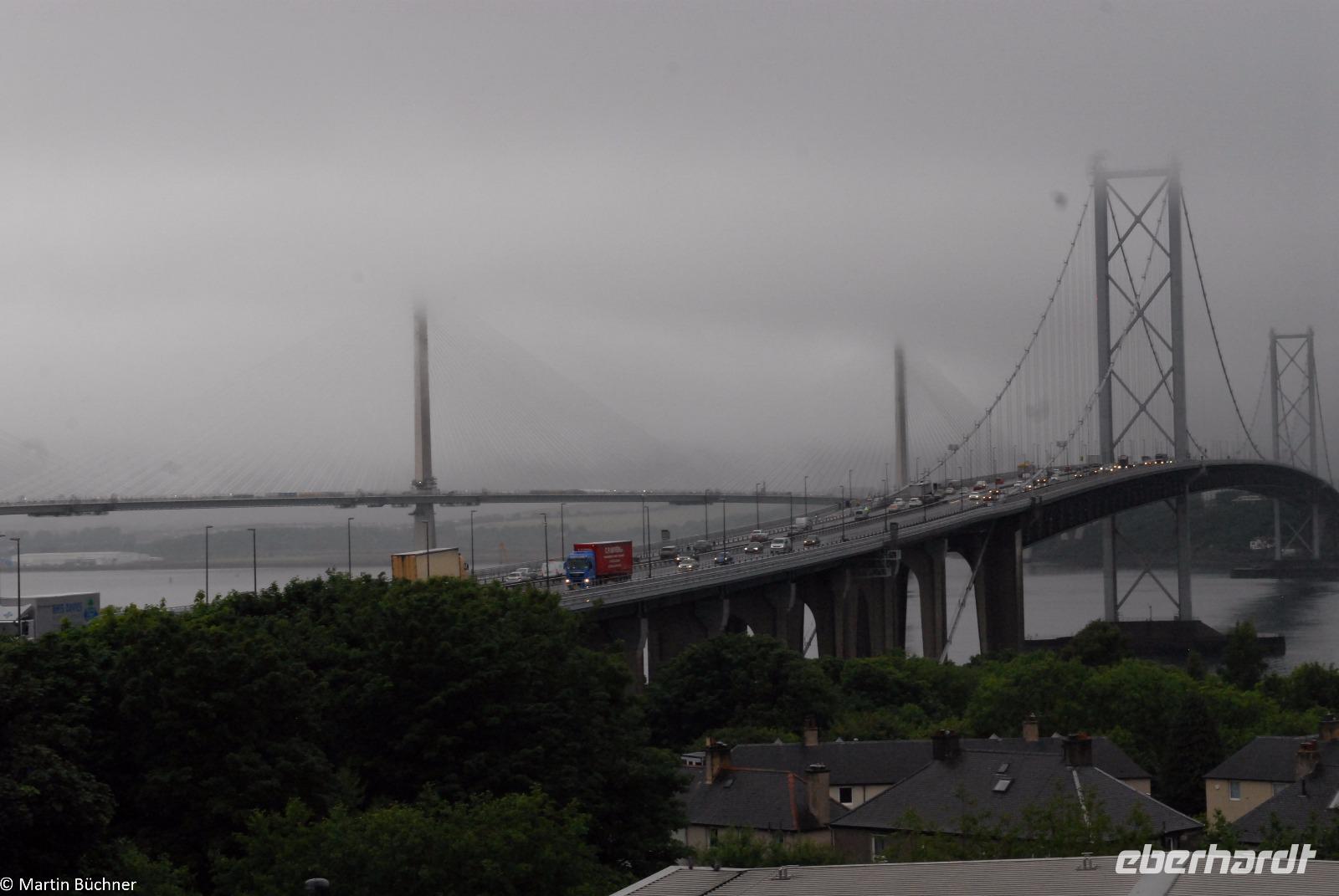Von den Highlands kommend trennt uns nun nur noch der mächtige Firth of Forth von unserem Ziel. Diesen kann man durch mächtige Brückenbauwerke überwinden. Im Osten der Eisenkoloss der Forth Bridge, einer Eisenbahnbrücke, der noch aktuellen Forth Road Bridge, die vom Design als Hängebrücke an die Golden Gate Bridge in San Francisco erinnert und die neue Straßenbrücke, eine Schrägseilbrücke, die schnellstmöglich die Forth Road Bridge wegen Baufälligkeit ersetzen muss.