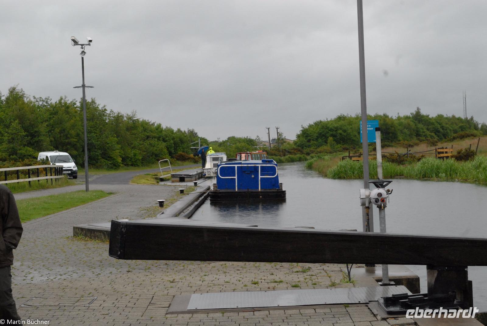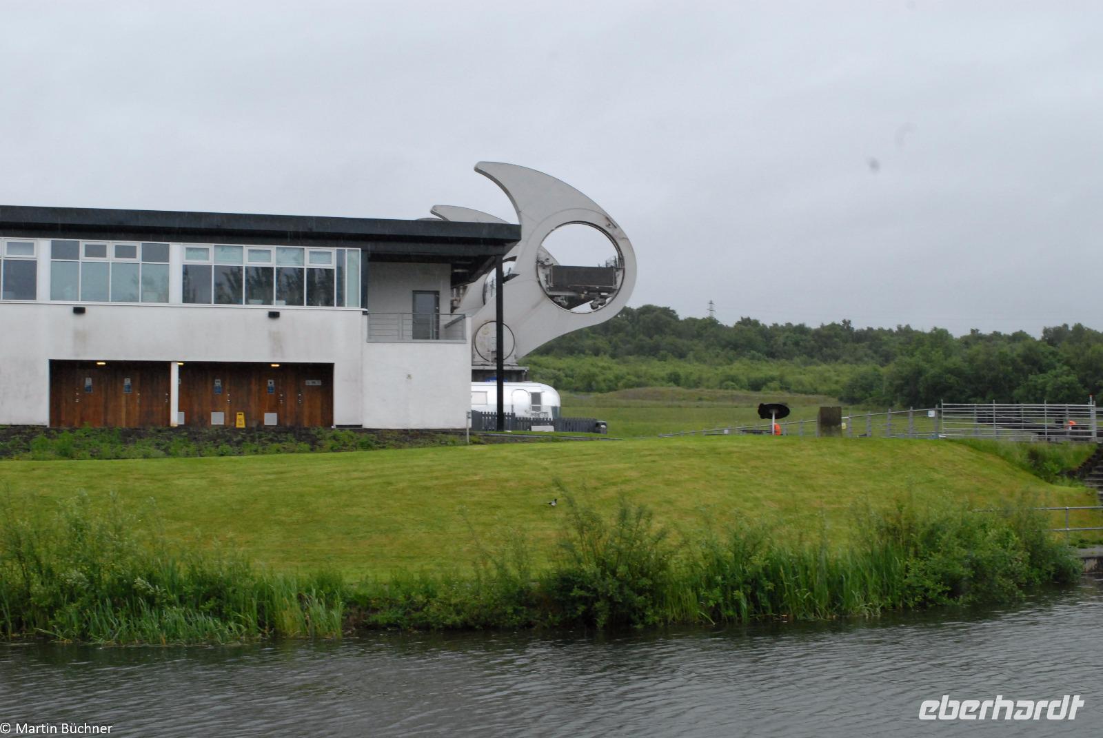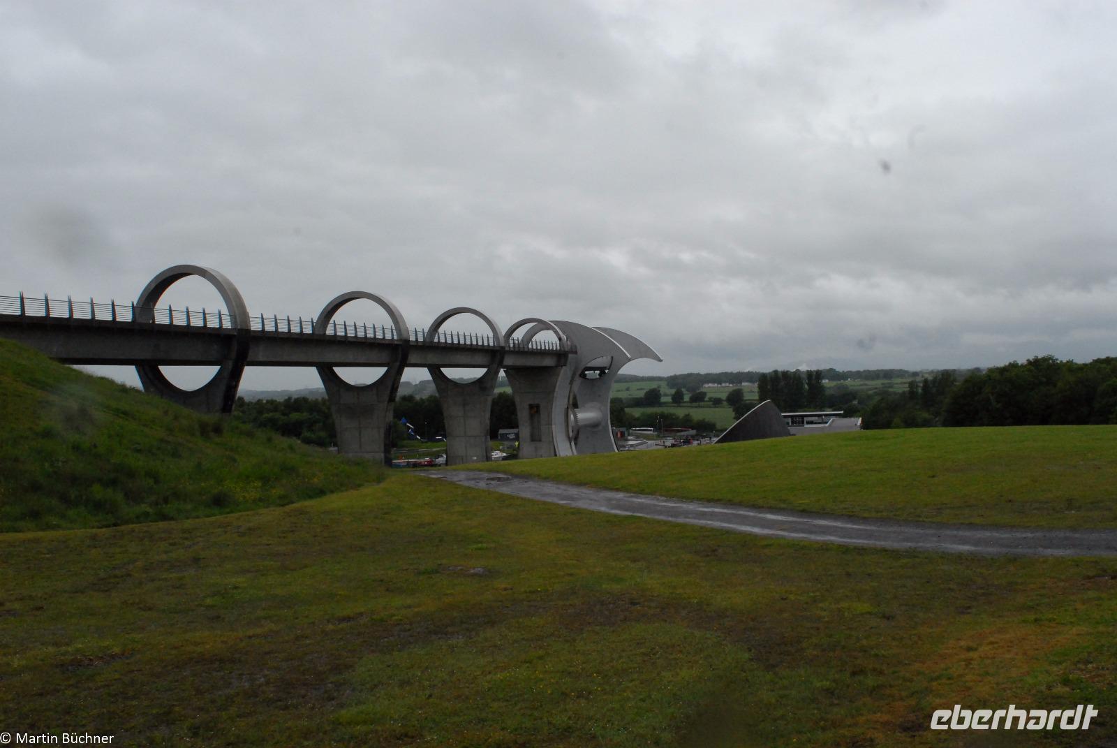 Wir starten zu einem weiteren Millennium Projekt, dem sogenannten Falkirk Wheel in Falkirk. Dabei handelt es sich um ein riesiges Schiffshebewerk in Form eines Riesenrades. Mit wenig Kraftaufwand können nach dem archimedischen Prinzip zwei Schiffe gleichzeitig befördert werden. Das Falkirk Wheel ersetzte eine baufällig gewordene Schleusentreppe am Union Canal, einer Narrowboat-Schiffsverbindung zwischen der Nordsee und der Irischen See, quer durch den Central Belt.