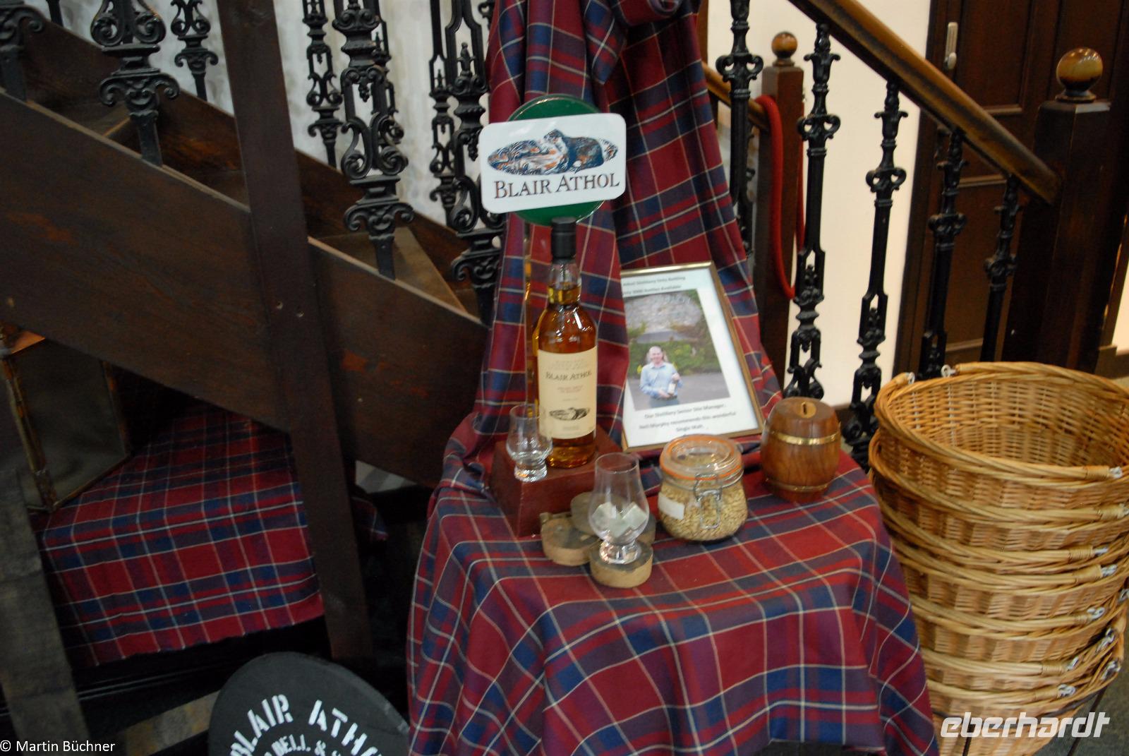 Nach dem Besuch der Festung geht es weiter in Richtung Pitlochry. Wir besuchen die Blair Athol Distillery. In dieser Destille verändert sich unser Weltbild, wir geloben uns nie wieder über Regen in Schottland zu beschweren! Was heute als Regen fällt ist in gut 12 Jahren bester Whisky! Kein Regen, kein Whisky! In einer guten Führung werden wir in manch ein Geheimnis der Whisky Herstellung und vor allem des Genusses eingeführt. Die meisten sehen Whisky nun mit anderen Augen (Gaumen).