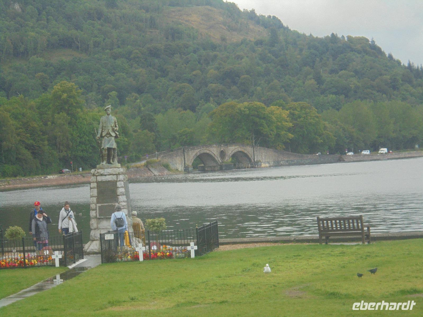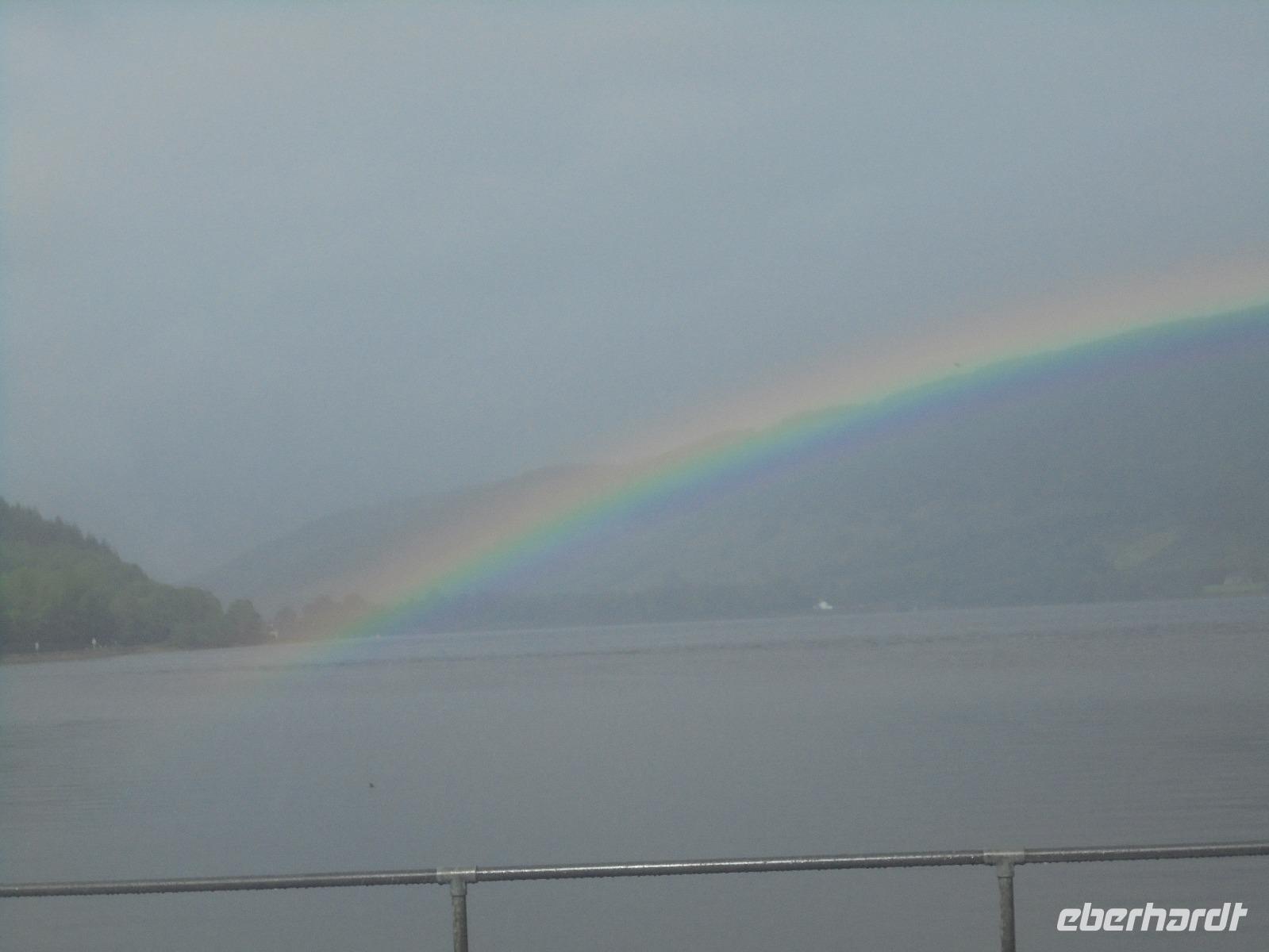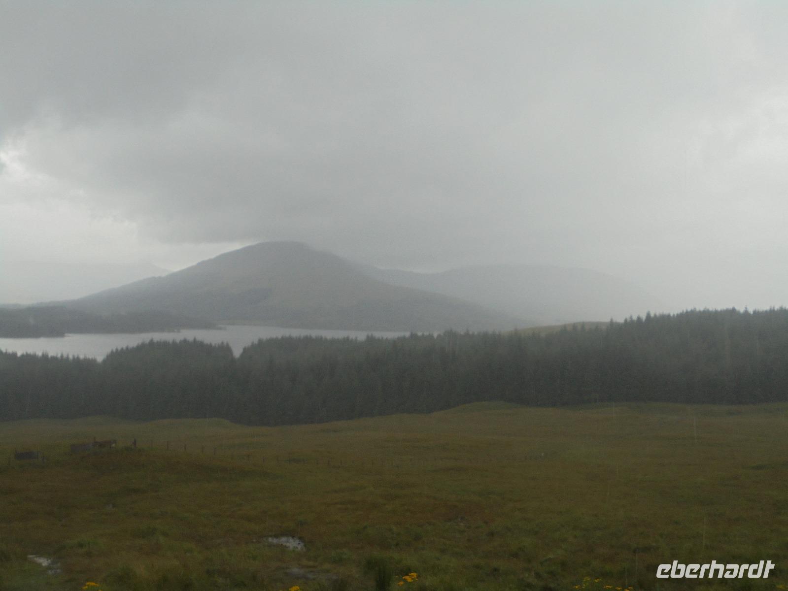 Nach dem Frühstück fuhren wir von Glsgow aus bei leider sehr unfreundlichem Wetter über die Erskine Bridge nach Norden in Richtung auf die vielbesungenen schottischen Highlands. Dabei kamen wir zunächst - noch in den Lowlands - zu Schottlands größtem See, dem 71 km² großen Loch Lomond. Der deutsche Romancier und Schottlandkenner Theodor Fantane hatte diesen See einmal als „große noble Wasserfläche, der es wohl zukommt, als der König der Seen bezeichnet zu werden..." benannt. Malerisch liegt er da mit seinen etwa 30 Inseln. Wir machten einen Fotostopp und hörten auch das bekannte Lied, das dem Gewässer gewidmet ist und eine traurige Begebenheit aus der schottischen Geschichte besingthatte. Hier machten wir eine längere Kaffeepause, die natürlich viele der Gäste zum Gang zum See nutzten.