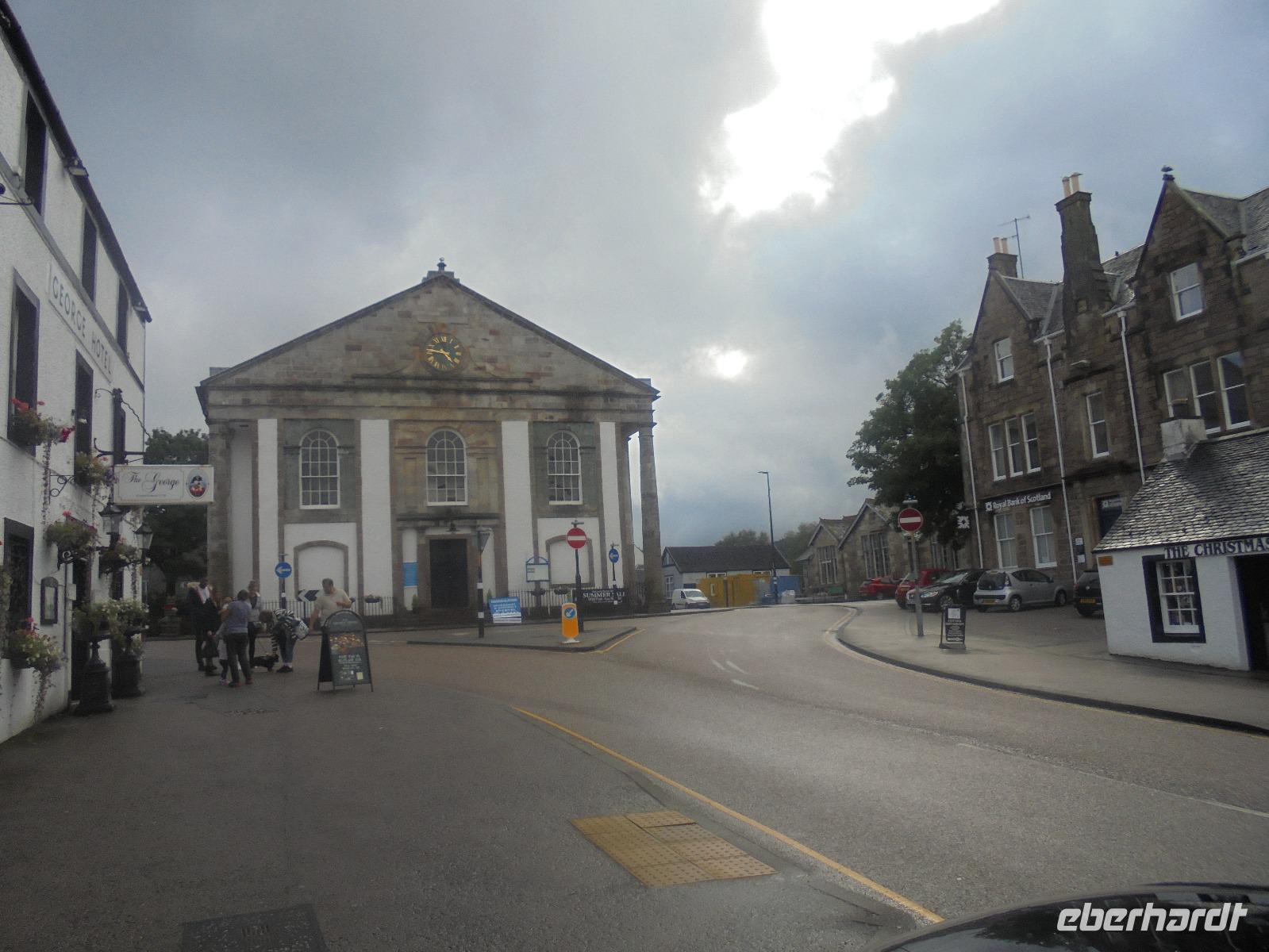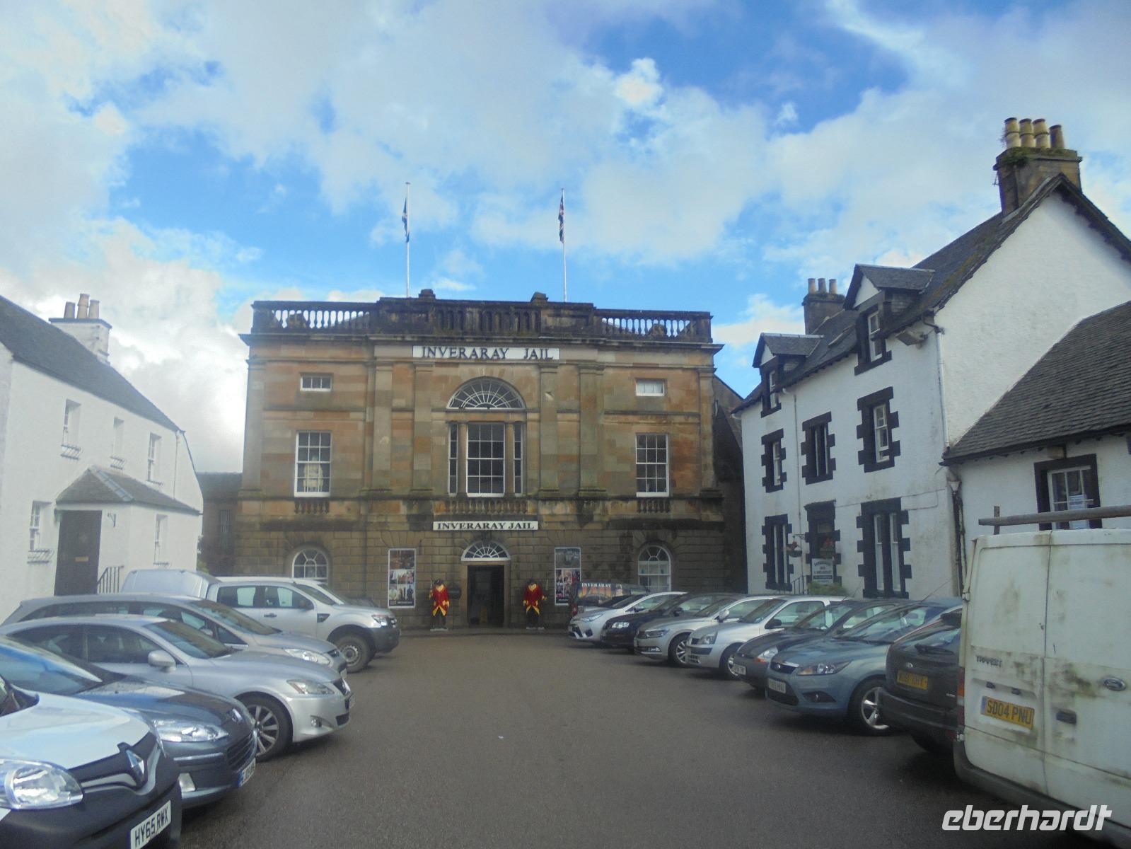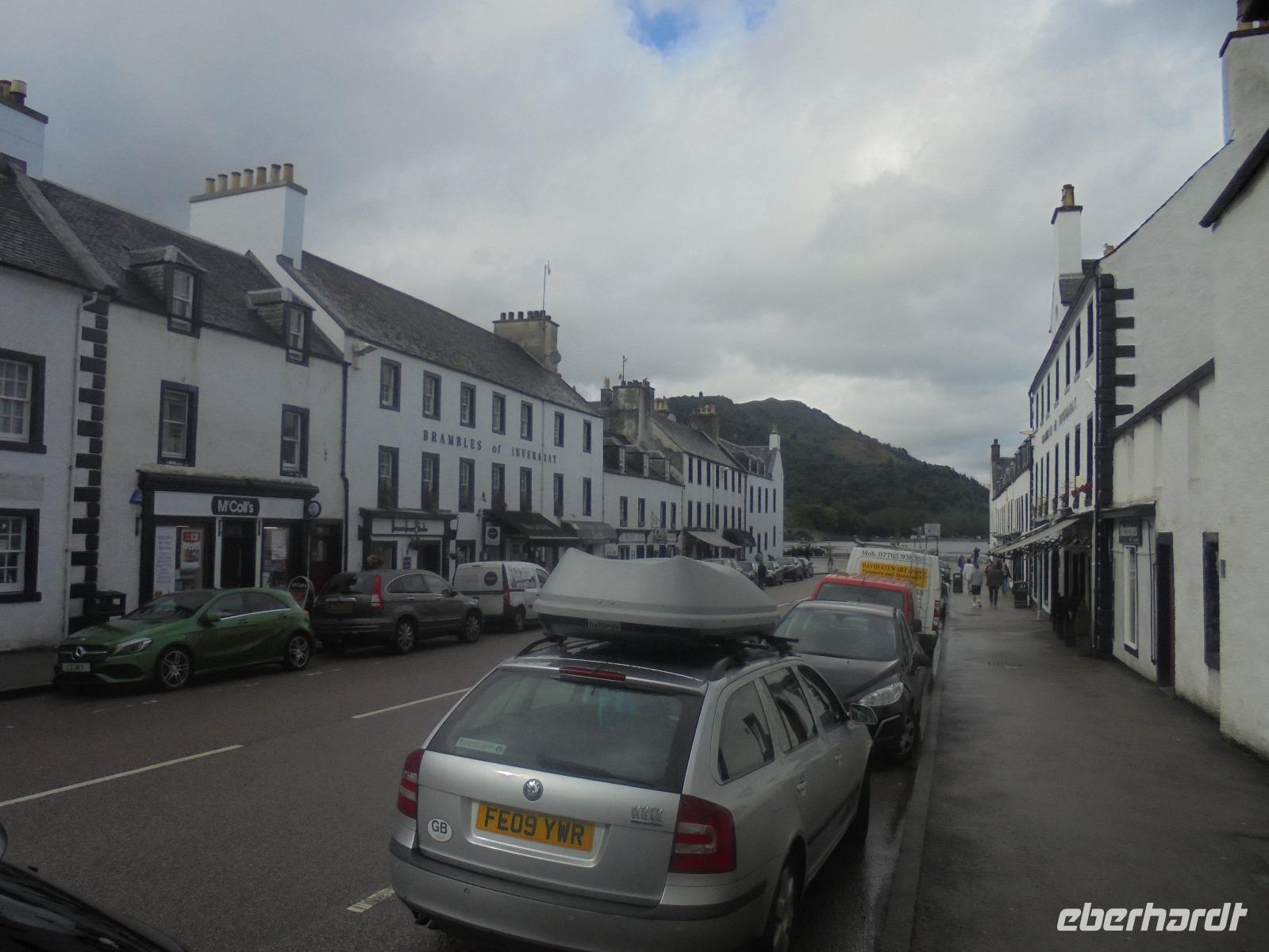 Nach einem länfgeren Aufenthalt hier am Hafen ging es weiter durch die Wälder zu einer der kleinsten Städte Schottlands. Dennoch ist Inveraray - mit seiner in den letzten Jahren auf inzwischen 600 Personen angestiegenen Einwohnerzahl - ein touristisches Zentrum der Region. Der Ort am Ende der fjordartig eingeschnittenen Meeresbucht Loch Fyne besitzt ein fast komplett denkmalgeschütztes Ortszentrum und hat nicht nur mit seinem Ensemble aus weißgetünchten Häusern, seinem berühmten Museumsgefängnis und dem Inveraray Castle, sondern auch seiner herrlichen Lage an der Meeresfront einiges zu bieten.