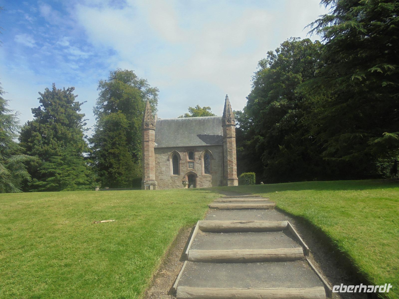 Ein weiteres Extra erlaubte uns einen kurzen Blick auf eine Legende. Am Scone Palace befindet sich nicht nur der beeindruckende neogotische Palast, sondern auch einer der historischen Standorte des piktisch-schottischen Krönungsstein. Nach der Zusammenführung der piktischen und schottischen Clans gründete der Legende nach Kenneth I. McAlpin das schottische Königreich und ließ 846 den legendären „Stein des Schicksals" hierherbringen, vor dem nur ein wahrer König Gnade finden würde, sobald er sich auf ihn setzte. So wurden bis 1296 wurden alle Könige Schottlands hier gekrönt, bevor Eduard I. von England den Stein in seinen Thron in Westminster einbauen ließ und er erst 700 Jahre später zurückgegeben wurde. Sein vor diesen Ereignissen üblicher Aufbewahrungsort, der Moot Hill, blieb dennoch weiterhin schottischer Krönungsort. Der von einer Kapelle dominierte Hügel ist auch eine Legende, denn man erzählt sich, dass die Clanchefs immer dem König auf ihrem eigenen Grund und Boden Treue schwören mussten. Wegen der vielen geografisch zerrissenen Territorien und den wenigen vorhandenen Straßen war Reisen überallhin für den König unmöglich - daher kamen die Clanchefs für den Treue-Eid in die Hauptstadt und brachten Heimaterde für den Schwur in ihren Stiefeln mit. So standen sie beim Eid auf ihrem Grund und Boden und schütteten danach ihre Stiefel aus. So entstand aus der gesammelten Heimaterde aller Clans im Laufe der Zeit der Hügel ...