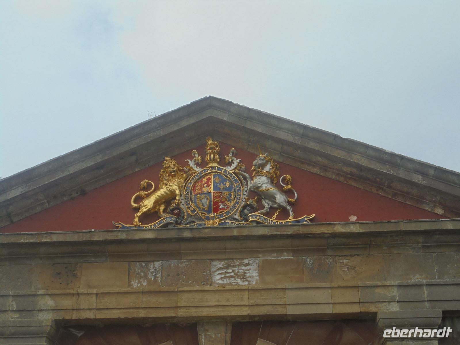 Die schottische Hauptstadt würde den heutigen Tag ausfüllen. Wir brachen in Livingston auf und trafen uns in der Edinburgher Neustadt mit Stadtführerin Nadine zur Stadtrundfahrt durch die schottische Metropole. Zunächst widmeten wir einige Zeit der Neustadt, erbaut im 18.Jahrhundert in gregorianischem Stil. Ihre Stadtpaläste, verziert durch gusseiserne Balustraden, kleinen Balkons und großen Fenstern gehören zu einem der weltweit größten geschlossenen georgianischen Bau-Ensembles. Durch die regelmäßig angelegten Straßen der Neustadt, vorbei an den typischen Privatgärten, zu denen nur die Bewohner der zugehörenden Stadtpalaste einen Schlüssel haben und später vorbei am mitten in der Stadt liegenden Hügel Calton Hill fuhren wir zum Palast von Holyroodhouse, eine der offiziellen königlichen Residenzen. Der Palast wurde von König Jakob IV. maßgeblich errichtet und später mehrfach umgebaut, war aber usprünglich nur ein Gästehaus der danebenliegenden Abtei von Holyrood. Hier gibt - auch Besichtigung - einiges zu sehen, unter anderem ein historisches Häuschen vor den Toren, das als „Badehaus von Maria Stuart" gilt, es gibt aber auch Souvenirläden und Toiletten. An diesem Palast beginnt die Royal Mile, die als Königliche Meile apostrophierte Innenstadtstraße, die - längs durch Edinburghs Altstadt - Holyroodhause mit der Burg von Edinburgh verbindet. Wir durchfuhren diese Teile der Altstadt, fuhren vorbei an Museen und Teilen der Edinburgher Universität, sahen die etwas unscheinbare aber sehr bekannte Hunde-Statue von „Greyfriars Bobby" und waren schließlich am Grassmarket mit der ehemaligen Hinrichtungsstätte und den legendären Pubs wie „White Heart" oder „Last Drop".