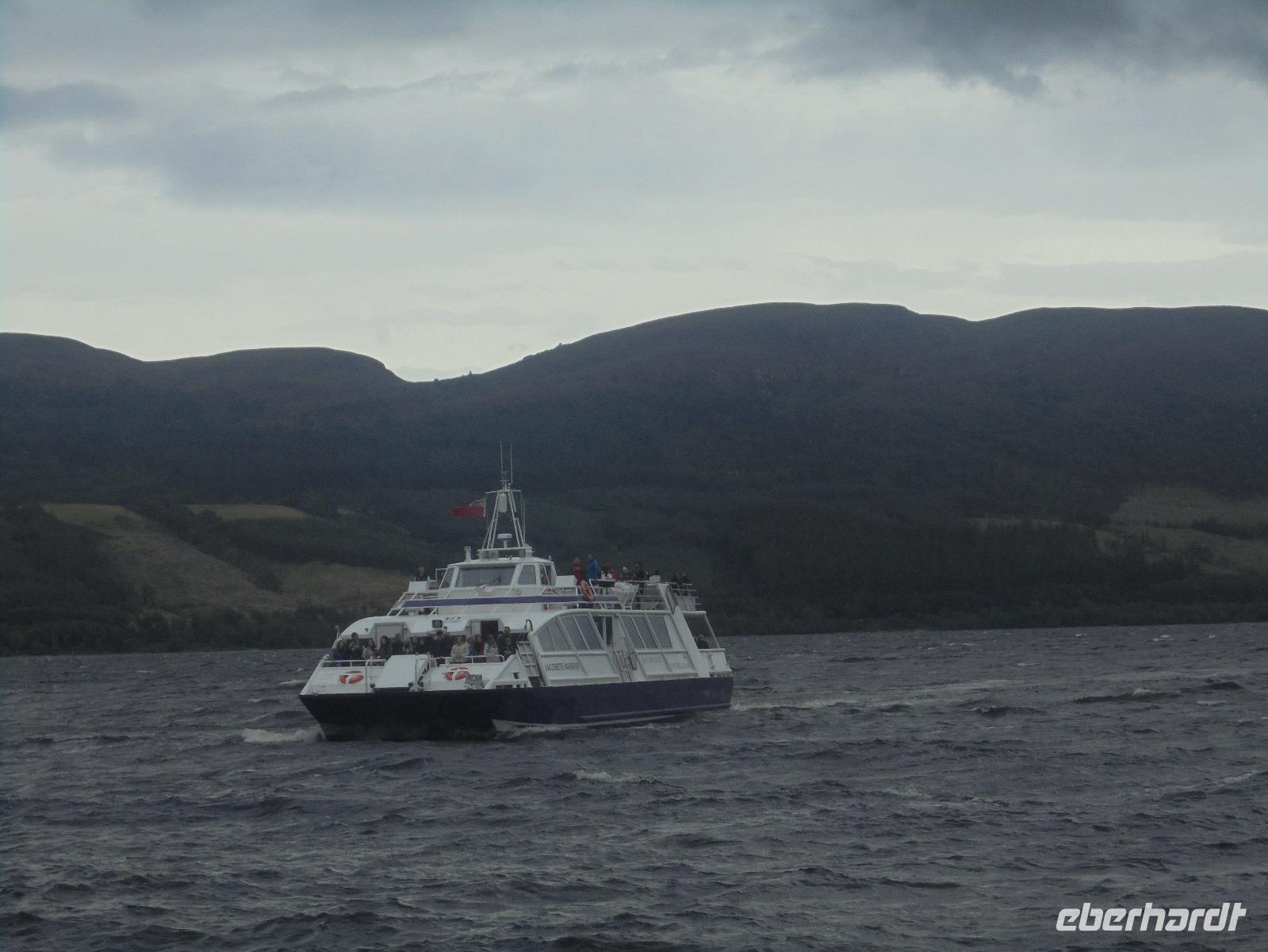 Später ging es nach Inverness, der Hauptstadt der Highland-Region. Die geschichtsträchtige Stadt, deren Silhouette heute von ihrem erst im 19. Jh. anstelle der ehemaligen Burg errichteten Castle dominiert wird, liegt an strategisch wichtiger Position was fast seit Beginn ihrer Entwicklung immer wieder zu Konflikten führte. Der Ort war schon in der Frühzeit eine der Hauptburgen der Pikten, später regierte hier der durch Shakespeares Drama bekannt gewordene König Macbeth und beständig kam es hier zu Schlachten und Auseinandersetzungen der Clans untereinander. Heute ist das kaum zu glauben, wenn man die belebte Stadt mit ihren vielen Kirchtürmen sieht. Inverness ist friedlich geworden und wenn man durch seine Hauptstraße schlendert, nimmt man den Ort eher als Einkaufs-Zentrum wahr... Wir hatten hier Gelegenheit zum Bummel, ehe es Zeit wurde für eine kleine Bootsfahrt. Die führte uns hinaus auf Schottlands legendenumwobenen See Loch Ness.