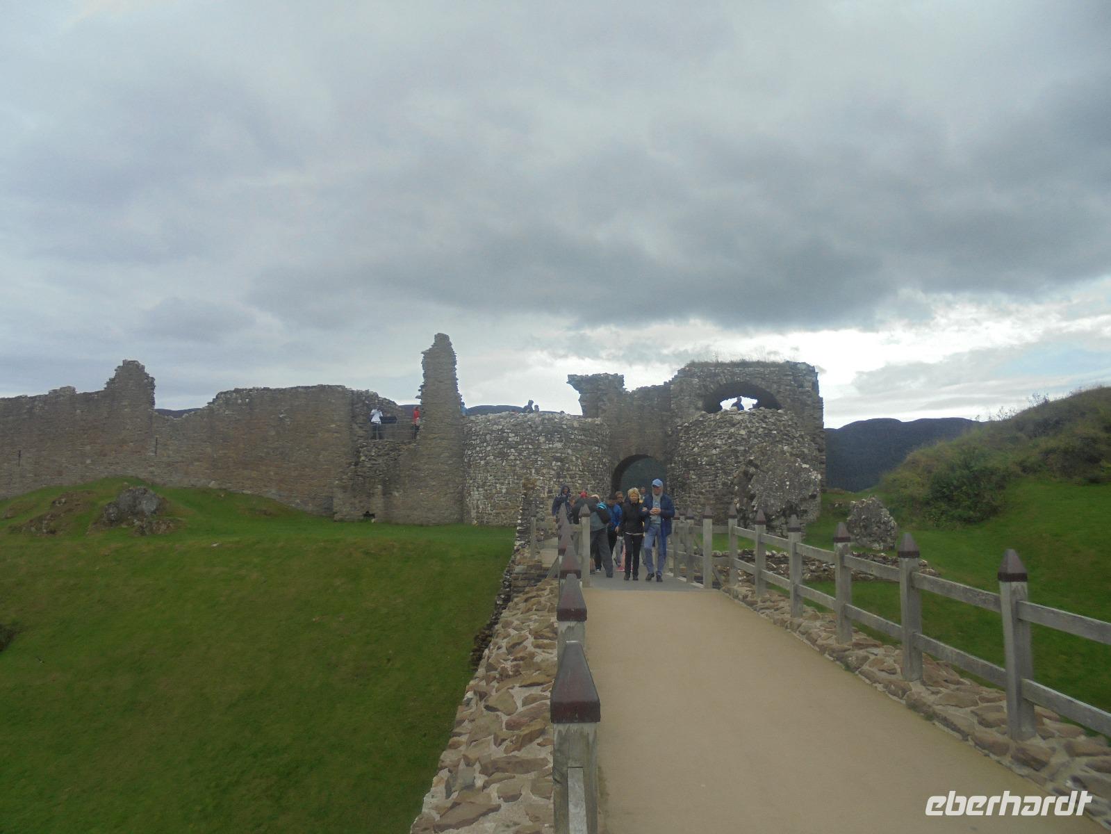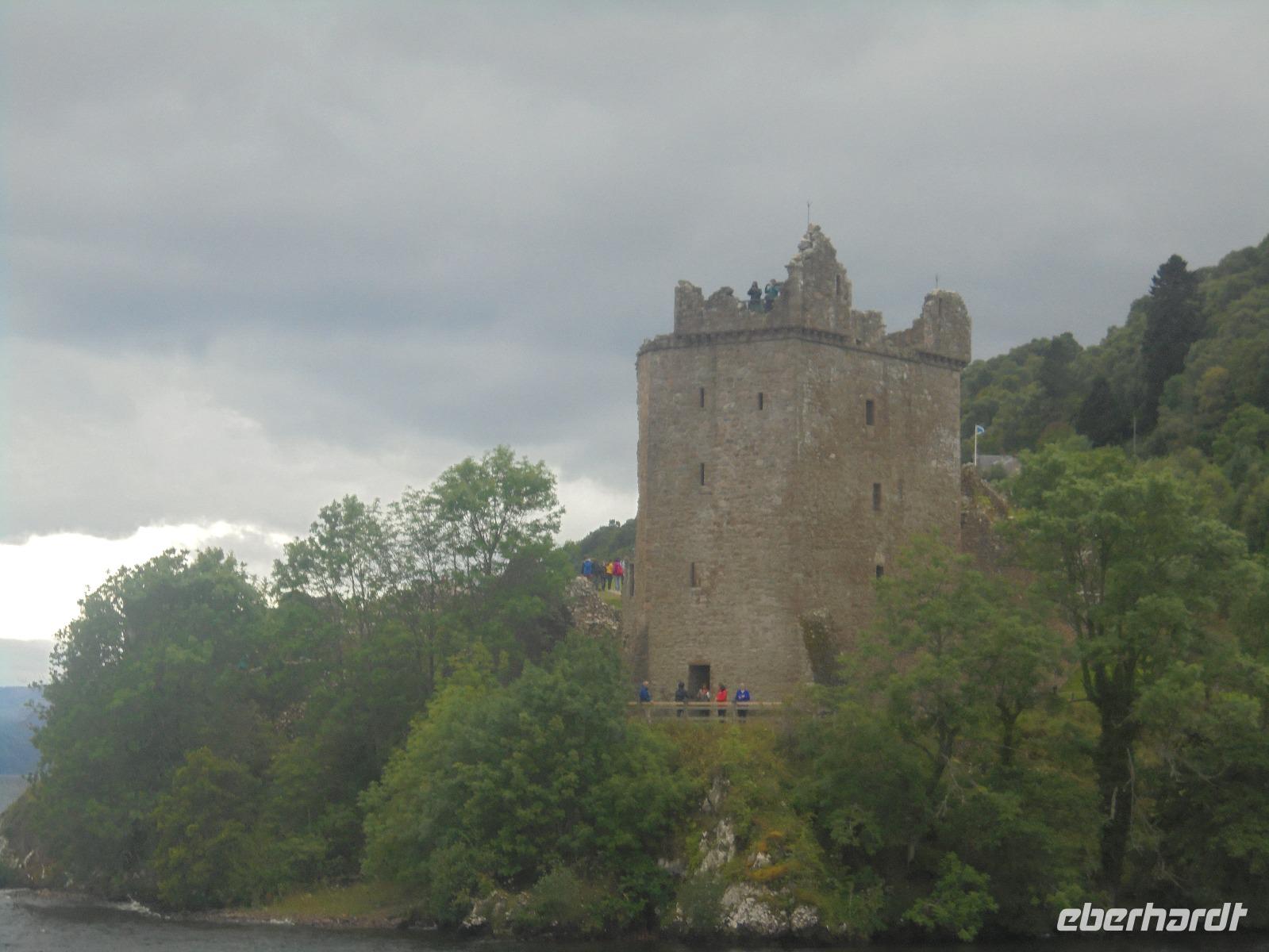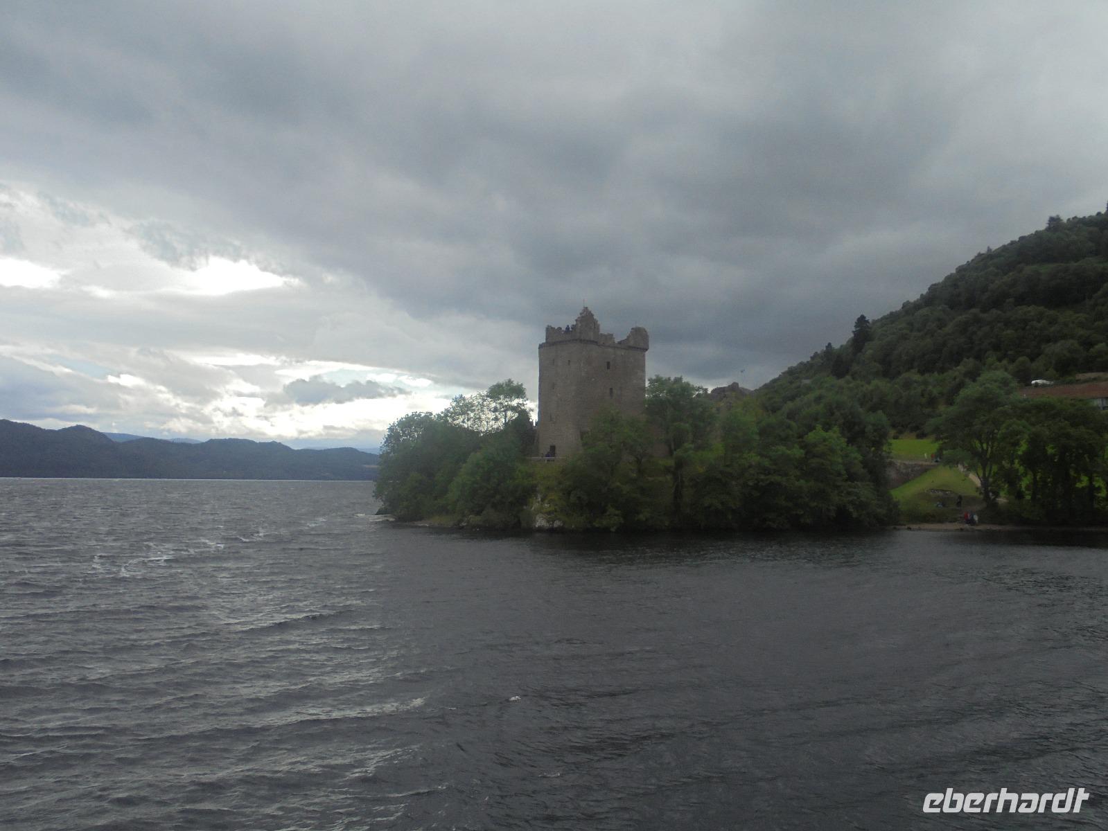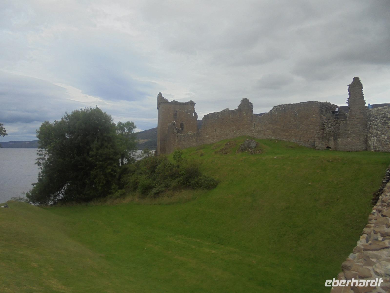 Unsere halbstündige Bootsfahrt endete an der Burgruine Urquhardt Castle. Sie ist eine der gut erhaltenen, besonders malerischen und daher am meisten besuchten Burgruinen Schottlands. Einst war sie riesig, mit Palast und Festungsanlagen versehen und diente als wichtiger Stützpunkt der schottischen Könige. Ihre zentrale Lage am bekannten und für den Handel wichtigen See machte sie auch strategisch bedeutsam - als sie diese Bedeutung verlor, verfiel sie.
