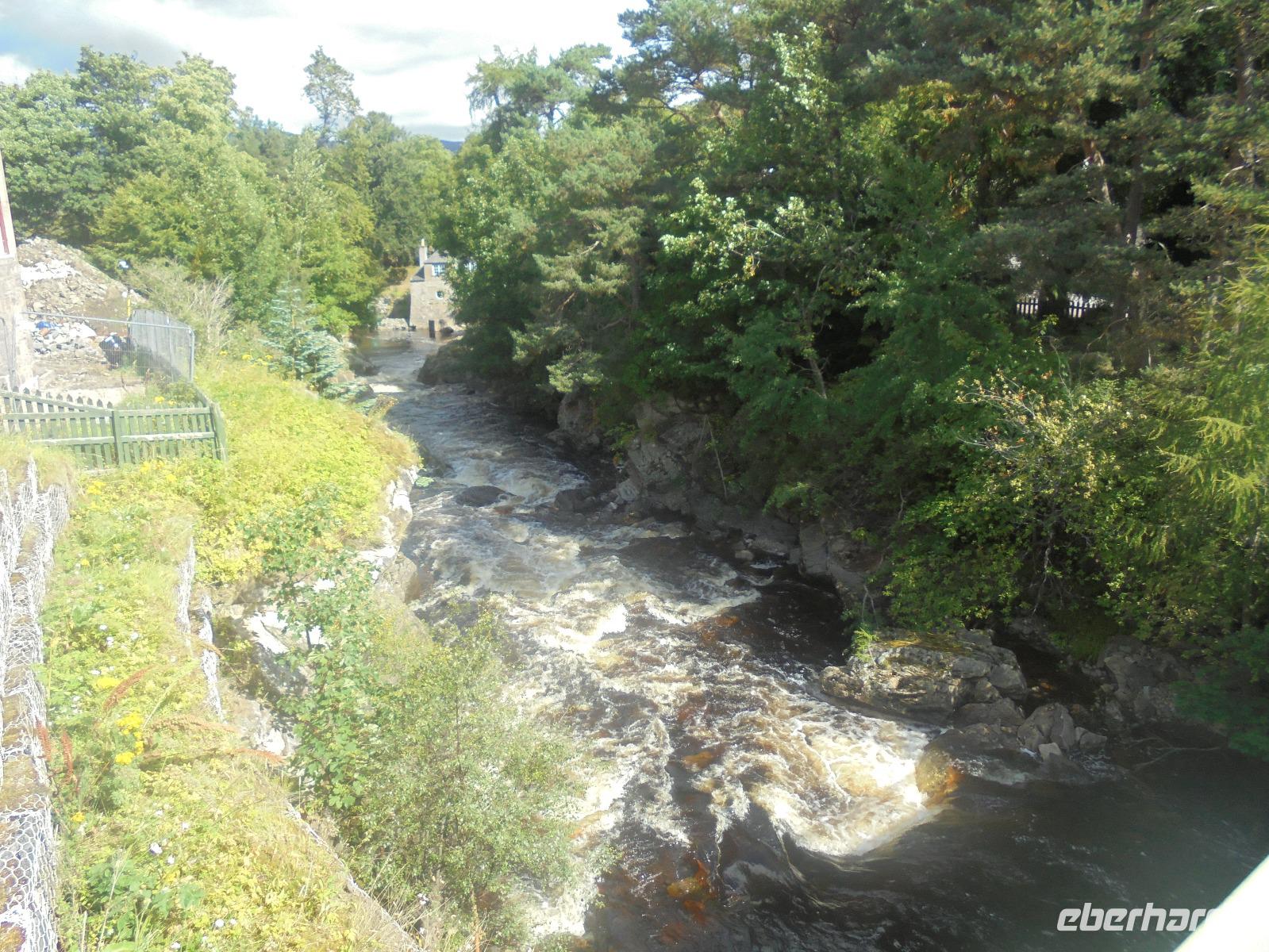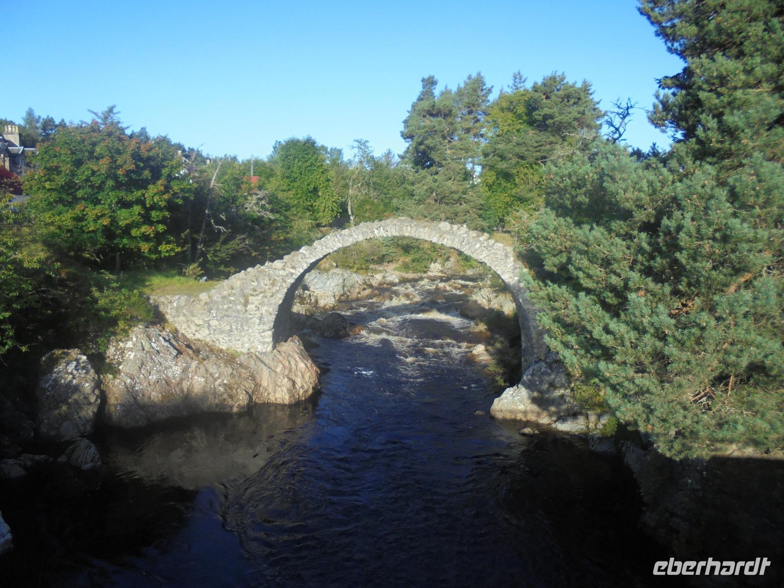Am südlichen Rand der Cairngorms liegt Braemar, ein Dorf am bedeutenden Fluss Dee. Hier finden alljährlich - zumeist unter Anwesenheit der Königlichen Familie - die die Saison abschließende Highland-Games statt. Diese Hochland-Spiele sind historisch tradierte Sportwettkämpfe mit seltsamen Disziplinen wie Baumstammwerfen, Steinetragen, Heuballenweitwurf - alles natürlich im Kilt, der traditionellen Hochländer-Bekleidung. Das Dörfchen, das als inoffizieller Hauptort der Region Deeside gilt, ist malerisch, wird durch die Stromschnellen des Flüßchens durchschnitten und bot uns Gelegenheit zu einem Bummel.