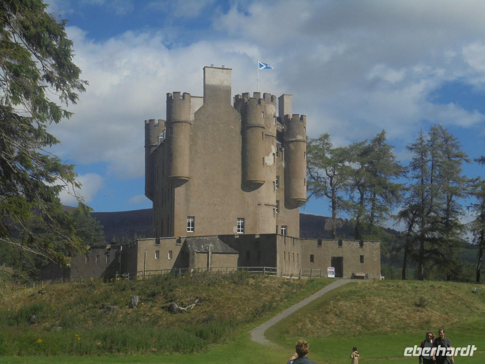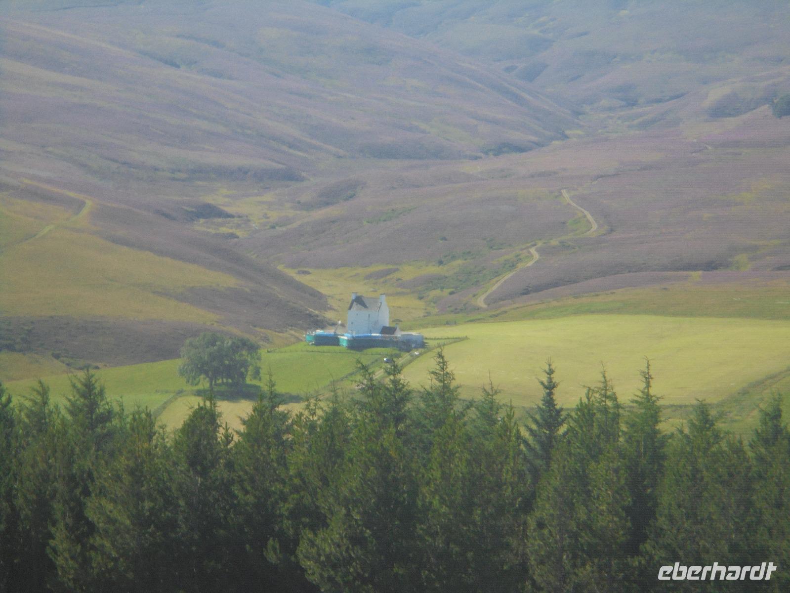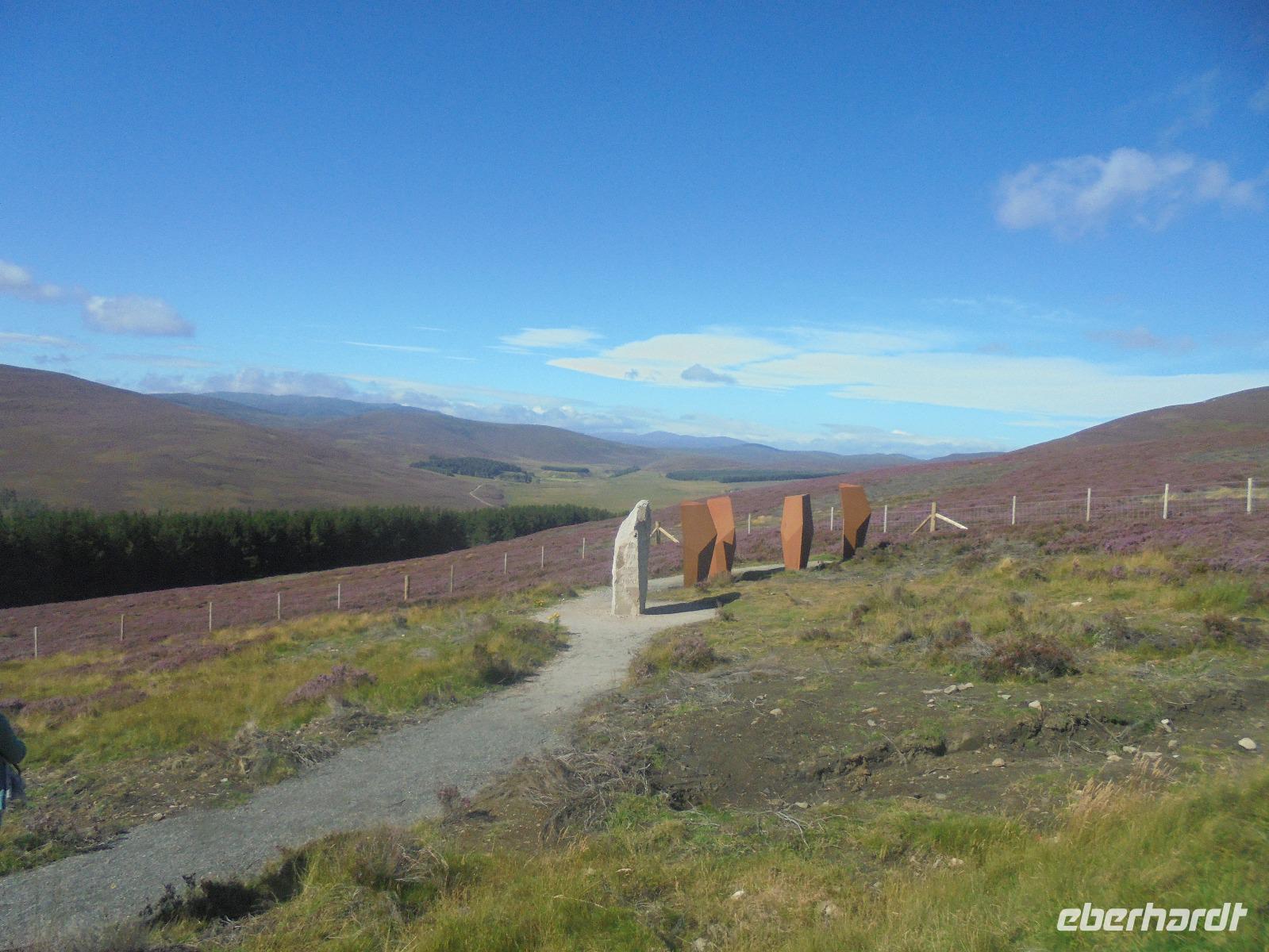 Dann setzten wir unseren Weg durch die Cairngorms fort, die vielleicht schönste Gebirgslandschaft in Schottland. Viele Gipfel ragen über 1000 m in die Höhe und allein fünf der zehn höchsten Berge Schottlands stehen hier. Wegen der ausdrucksvollen Schönheit der Landschaft erklärte das Schottische Parlament 2003 ein über 4500 km² großes Gebiet zum Nationalpark und einen weiten Teil davon durchquerten wir heute. In der malerischen Gebirgsgegend, wo sich hohe Berggipfel mit Hügeln und weiten, über und über mit zur Zeit gerade blühendem Heidekraut bedeckten sanft geschwungenen bis steil abfallenden Tälern abwechseln, befinden sich z.B. auch drei der fünf schottischen Ski-Gebiete, von denen wir das durch seine Schlepplifte gekennzeichnete Lecht-Ski-Centre passierten.