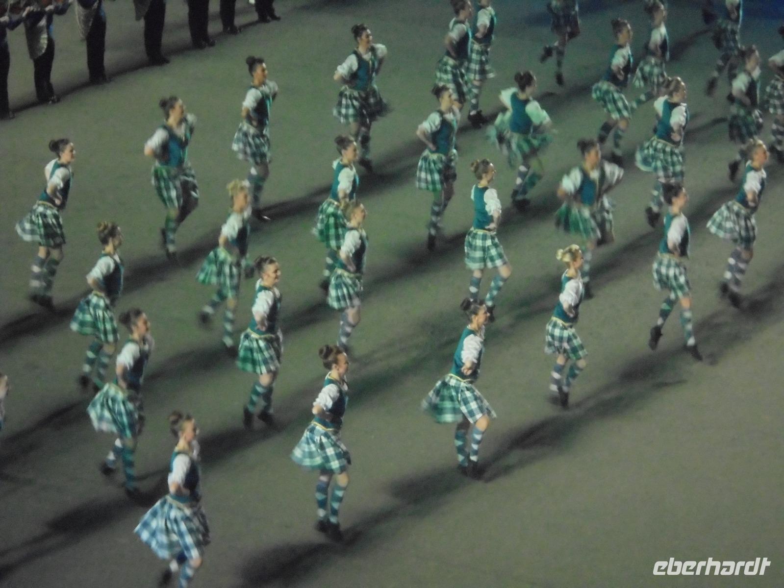 Später trafen wir uns wieder, fuhren mit dem Bus in einen traditionellen Pub um ein typisches Abendessen einzunehmen und fuhren danach zum heiß erwarteten Höhepunkt des Abends, dem Military Tattoo. Die aus dem Holländischen stammende Bezeichnung beendete früher als - „tap toe" (Zapfhahn zu) jeglichen Ausschank - ist also so etwas wie ein Zapfenstreich. Inzwischen ist es das wohl bekannteste und - wie die Besucherrekorde beweisen - beliebteste und bunteste aller Militärfestival. Hier in Schottland hat es mit seinen vielen hundert Dudelsäcken, den aus verschiedenen Ländern als Gäste geladenen bunt kostümierten Militärkapellen und seinen immer wieder besonderen Darbietungen und Showeinlagen eine besondere Tradition. Viele hundert Mitwirkenden bringen die Gäste zum Stauen und immer wieder zu rasendem Applaus. Wie jedes Mal hat es natürlich auch mich mitgerissen und unsere Mitreisenden waren von allem - Tattoo, Darbietungen, Musik und natürlich auch der grandiosen Kulisse der Burg von Edinburgh restlos begeistert.