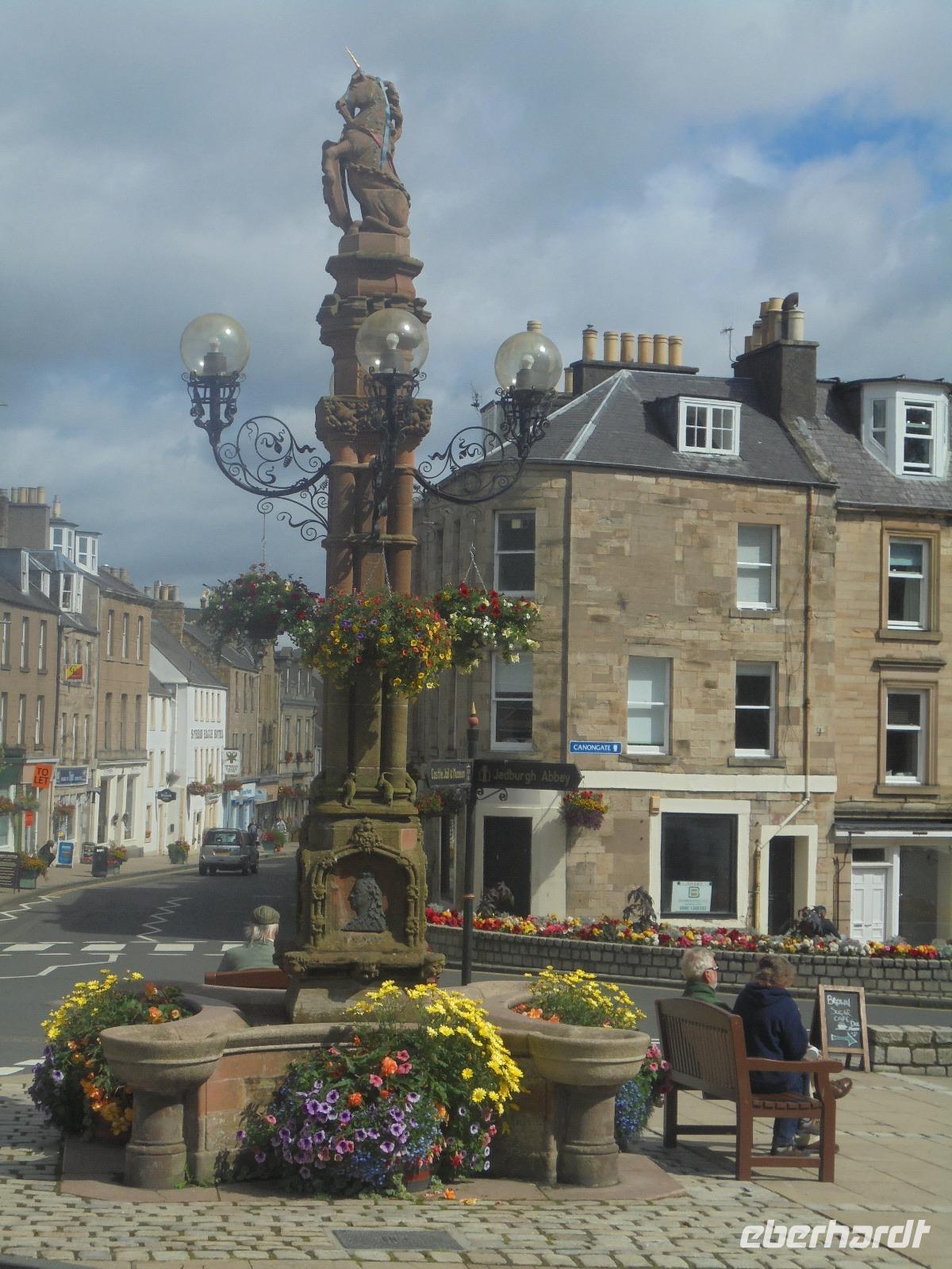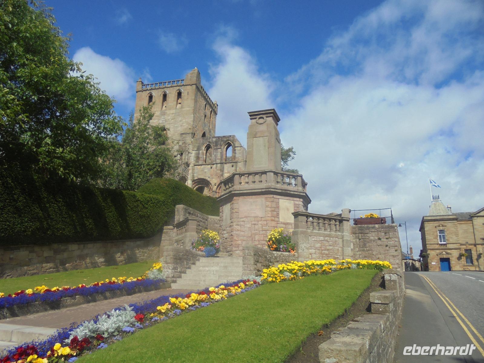 Als letzter Programmpunkt auf schottiscjhem Boden war heute der Besuch von Jedburgh. Geplant, der im südlichen Grenzland gelegenen Stadt. Kurz besuchten wir hier die Wollmühle, um Gelegenheit für den Kauf eines letzten Schottland-Souvenirs zu haben. Hier gibt es stets eine große Auswahl an Whiskies, und anderem Typisch Schottischem