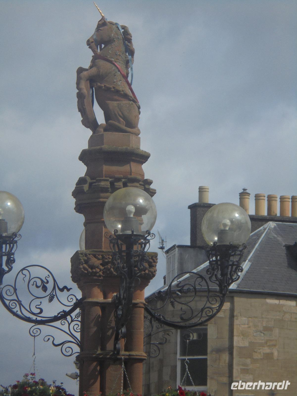 Nicht allzuweit war es von hier nach Stirling. Die Stadt mit ihren 50.000 Einwohnern ist von großer Bedeutung für die schottische Geschichte. Bemerkenswertestes Bauwerk ist ihre gewaltige und neben der von Edinburgh als uneinnehmbar geltende Burganlage. Viele Jahre lang war hier der Sitz der schottischen Könige. Auch als Münzstätte und Versammlungsort des schottischen Parlaments war die Burg bekannt und die schottischen Könige verliehen dem zu Füßen der Burg geachsenen Ort schon im 12. Jahrhundert die Rechte einer „königlichen Stadt" (Royal Burgh).