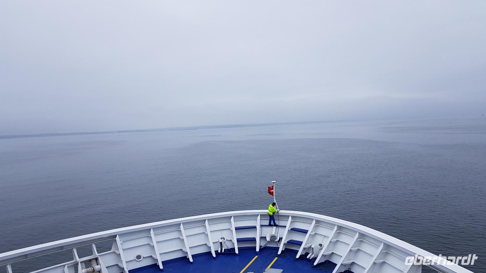 Es war eine ruhige Überfahrt, ab und an eine kleine Dünung, also alles gut. So konnten alle ihr Frühstück in Ruhe geniessen. Bis zur Ankunft war auch noch genug Zeit. Der Regen der Nacht verzog sich und es hellte sichtbar auf. Wir hören von unseren Berliner Fluggästen, dass sie wohl noch in der Nacht zu Hause angekommen sind, die Leipziger mußten noch eine Nacht in Frankfurt verbringen und die Dresdner sollten mit dem Zug nach Hause gebracht werden. Wir machen uns nach dem Auschecken gemütlich im Bus auf den Weg nach Hause. Mit den obligatorischen Stopp alle 2 Stunden erreichten wir am Nachmittag bereits die ersten Ausstiegs-Orte und nach und nach verabschiedeten wir uns voneinander. Gegen 20:30 Uhr waren wir dann in Dresden und alle kamen mit ihren Transfers gut nach Hause.