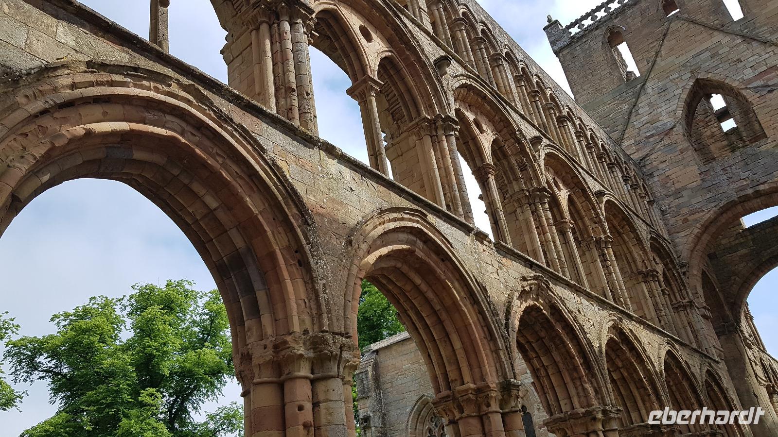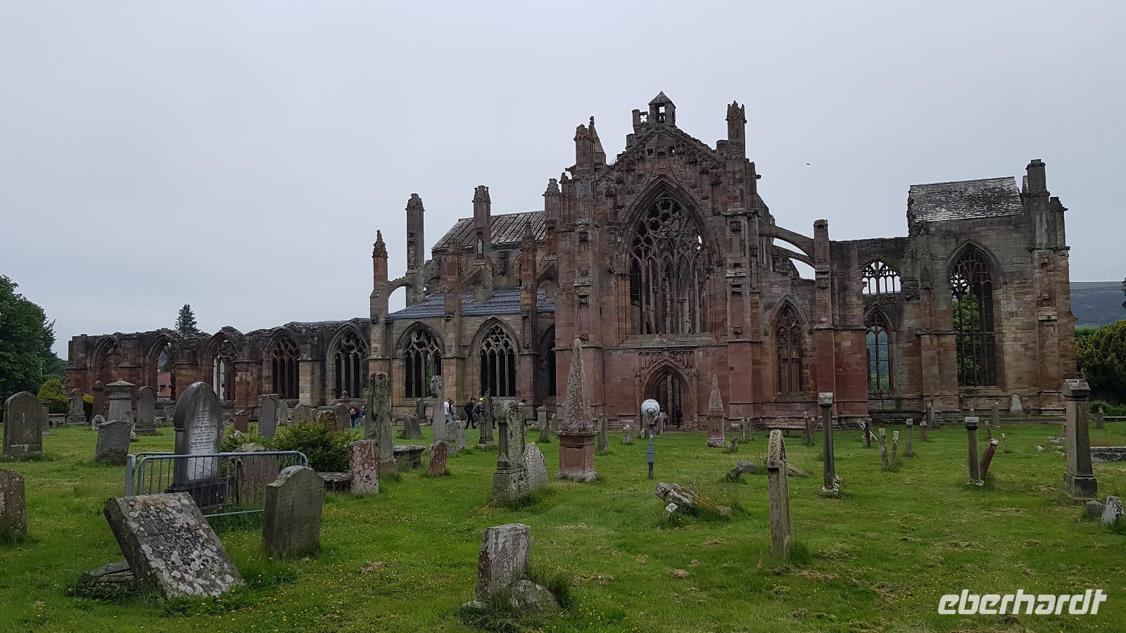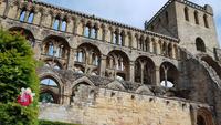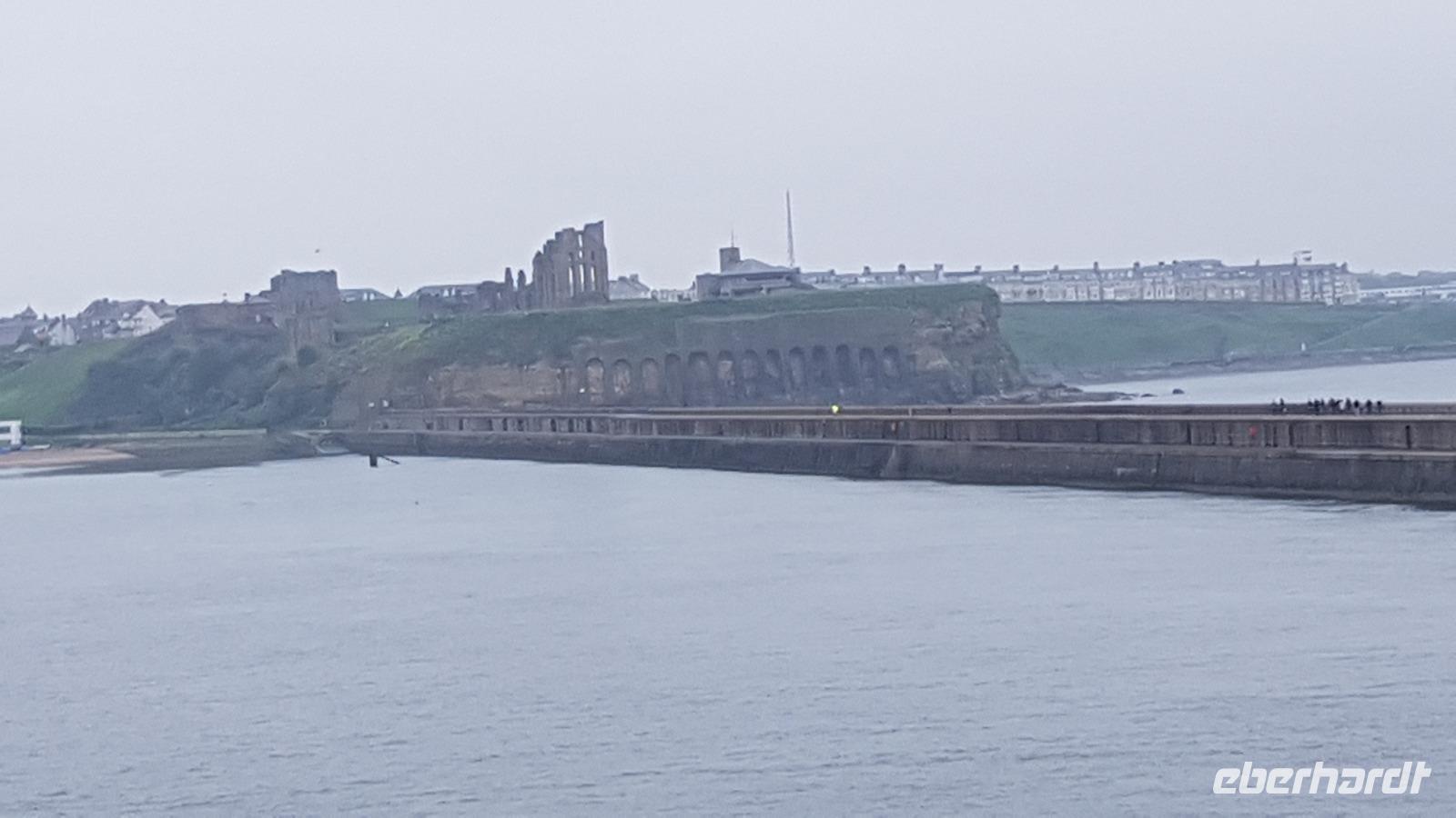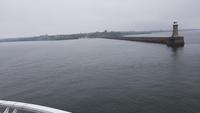 Zum Frühstück sehen wir uns alle noch einmal, dann verabschieden wir uns voneinander. Die Bus-Gruppe fährt zuerst los, dann werden auch die Flug-Gäste von ihren Transfers zum Flughafen abgeholt. Bis Frankfurt klappt auch alles mit den Flügen, dann aber verhindern Unwetter vor Ort die Weiterflüge. Es bleibt also eine abenteuerliche Reise. Die Bus-Gruppe hat es da besser, Unsere Fahrt Richtung Süden führt uns durch die Lowlands in die Border-Region, die Grenzregion. Hier besuchen wir kurz Melrose Abbey, eine der 4 Border-Abbeys. Mit jeder Menge Fotos im Gepäck geht es weiter nach Jedburgh. Hier ist genug Zeit, die hiesige Abbey zu besuchen, also holen wir Tickets und Audio Guides und besuchen diesen geschichtsträchtigen Ort. Einige nutzten auch die Zeit für einen kleinen Abstecher zum Haus der Maria Stuart, hier hatte sie einst übernachtet auf ihrer Flucht und daher gibt es ein kleines Museum. Dann geht es weiter, hinauf die Cheviot Hills nach Carter Bar- der Grenze zwischen England und Schottland. Natürlich ist unser Freund, der Dudelsack-Spieler da und verabschiedet uns herzlich mit einigen bekannten Weisen. Da sind wir also wieder in England, ein kurzer Stopp noch mit Bordservice inmitten der Weiden hier, dann erreichen wir auch schon Newcastle. Perfektes Timing: wir können ohne Wartezeiten einchecken, fahren gemeinsam durch die Zollkontrolle und gehen an Bord unserer Fähre. Zum Abendessen treffen wir uns wieder und hören hier die Hiobsbotschaften von den Fluggästen. Weitere Unwetter in Frankfurt führten zu Flugausfällen. In der Hoffnung, dass auch sie gut nach Hause gebracht werden genießen wir unser Dinner vom Buffett und lassen den Tag ruhig ausklingen.