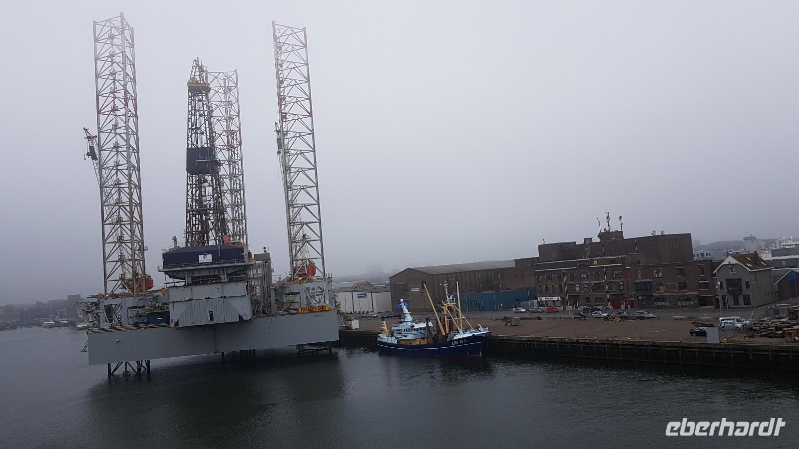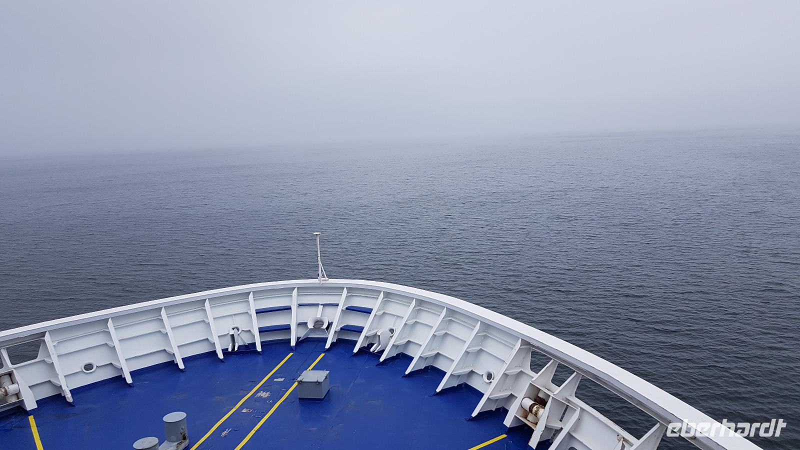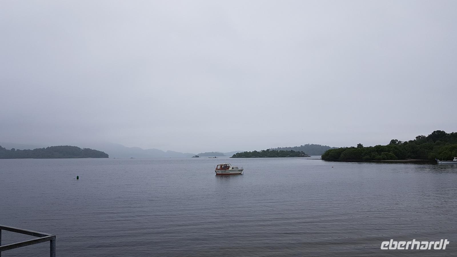 Morgens um 3 Uhr „noch vor dem Aufstehen" also treffen sich die ersten Gäste in Dresden am Flughafen. Von hier startet unsere Reise nach Schottland, zuerst einmal zur Fähre nach Amsterdam/ Ijmuiden. Diese soll 17:30 Uhr ablegen, um dafür den Check In zu erreichen müssen wir also zeitig los. Immerhin liegen mehr als 800 Kilometer vor uns. Zügig kommen wir voran und nach Zustiegen in Hainichen, Teufelstal, Neudietendorf und Reinhardshain ist unsere Bus-Gruppe komplett. Weitere Gäste werden morgen direkt in Glasgow eintreffen. Nach den obligatorischen Pausen am Rasthof Rimbach, Sauerland Ost und dem Mittags-Imbiss mit Bordservice in Isselburg kommen wir gegen 15:15 Uhr endlich am Fährhafen an. Dabei haben wir 4 Bundesländer/Freistaaten durchquert und die Niederlande. Leider hat auch das Wetter allerhand zu bieten, unterwegs von allem etwas: Sonne, Regen, Nebel, Niesel - so jetzt auch beim Ablegen. Dichter Nebel legt sich über das Meer und so sind wir nicht traurig, dass wir bereits beim Abendessen sitzen, als die Fähre ablegt. Das Buffett bietet für jeden etwas und manch einer fühlt sich hinterher wie das kleine Teufelchen aus dem Trickfilm „Omas Geburtstag". Dann fordert das zeitige Aufstehen seinen Tribut: Wir verkrümeln uns Richtung Koje, Schlafen klingt einfach wunderbar.