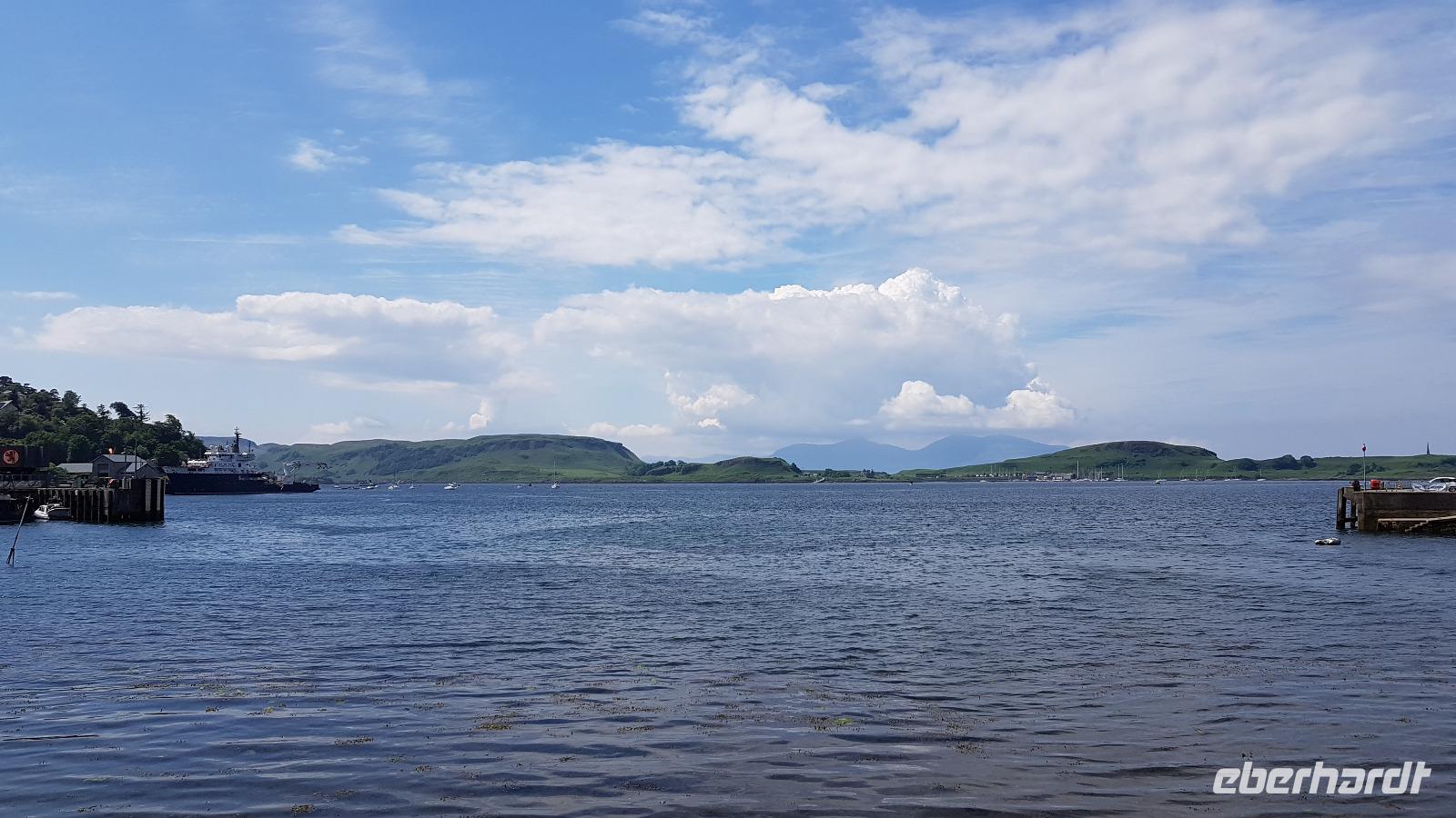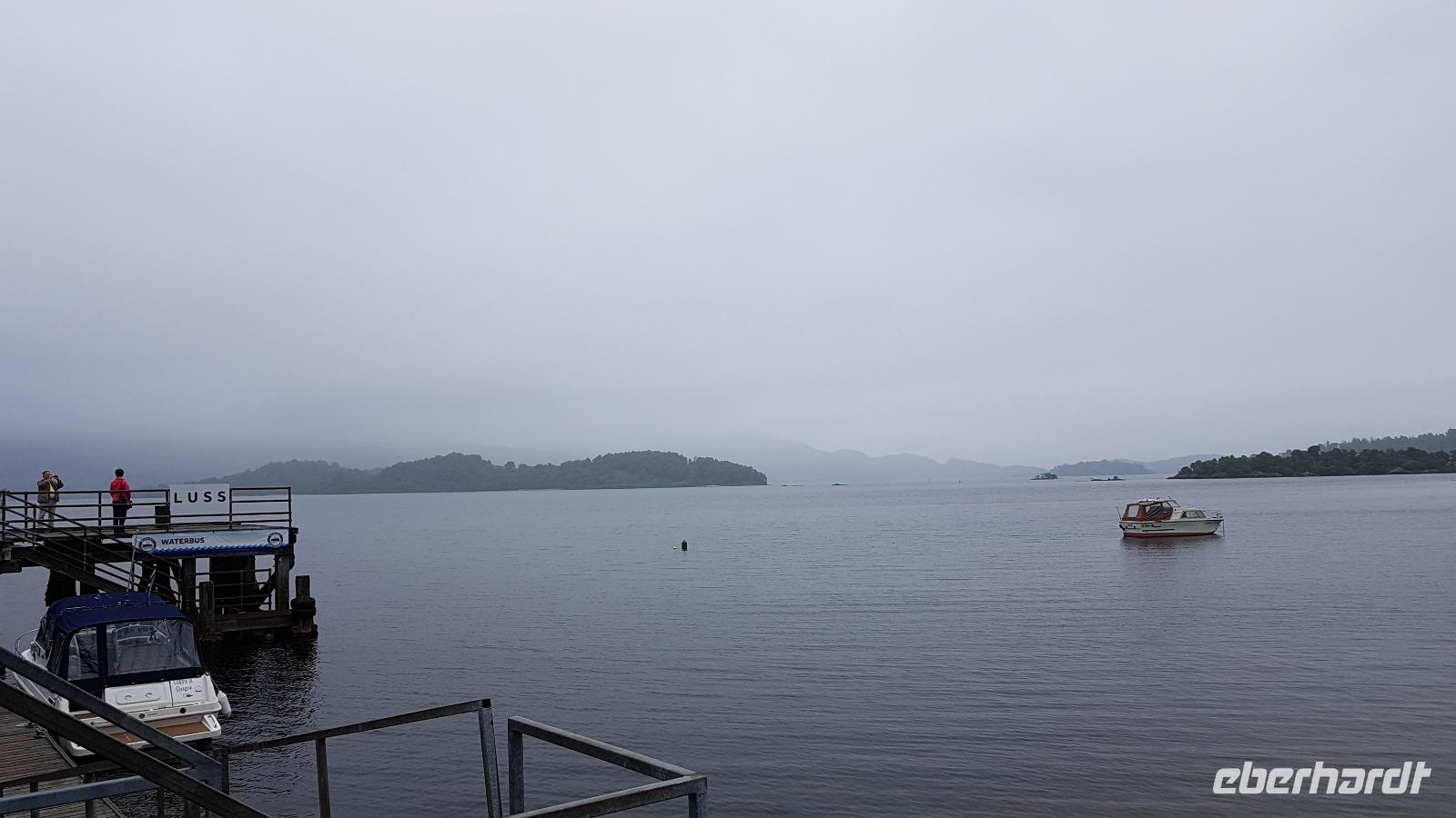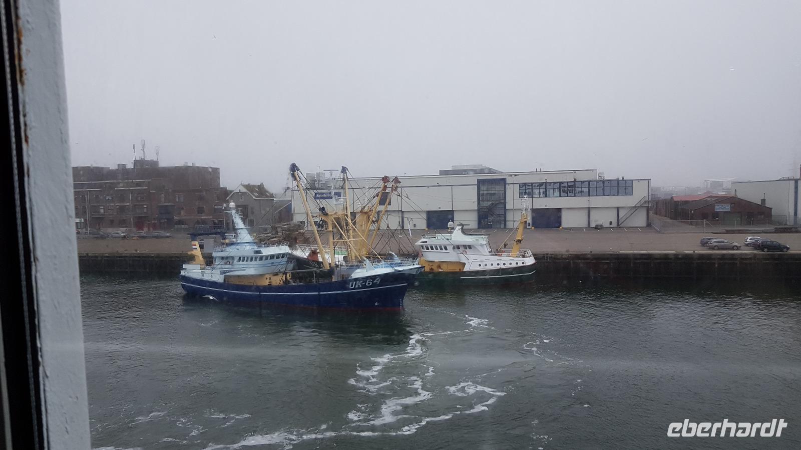 Morgens um 3 Uhr „noch vor dem Aufstehen" also treffen sich die ersten Gäste in Dresden am Flughafen. Von hier startet unsere Reise nach Schottland, zuerst einmal zur Fähre nach Amsterdam/ Ijmuiden. Diese soll 17:30 Uhr ablegen, um dafür den Check In zu erreichen müssen wir also zeitig los. Immerhin liegen mehr als 800 Kilometer vor uns. Zügig kommen wir voran und nach Zustiegen in Hainichen, Teufelstal, Neudietendorf und Reinhardshain ist unsere Bus-Gruppe komplett. Weitere Gäste werden morgen direkt in Glasgow eintreffen. Nach den obligatorischen Pausen am Rasthof Rimbach, Sauerland Ost und dem Mittags-Imbiss mit Bordservice in Isselburg kommen wir gegen 15:15 Uhr endlich am Fährhafen an. Dabei haben wir 4 Bundesländer/Freistaaten durchquert und die Niederlande. Leider hat auch das Wetter allerhand zu bieten, unterwegs von allem etwas: Sonne, Regen, Nebel, Niesel - so jetzt auch beim Ablegen. Dichter Nebel legt sich über das Meer und so sind wir nicht traurig, dass wir bereits beim Abendessen sitzen, als die Fähre ablegt. Das Buffett bietet für jeden etwas und manch einer fühlt sich hinterher wie das kleine Teufelchen aus dem Trickfilm „Omas Geburtstag". Dann fordert das zeitige Aufstehen seinen Tribut: Wir verkrümeln uns Richtung Koje, Schlafen klingt einfach wunderbar.