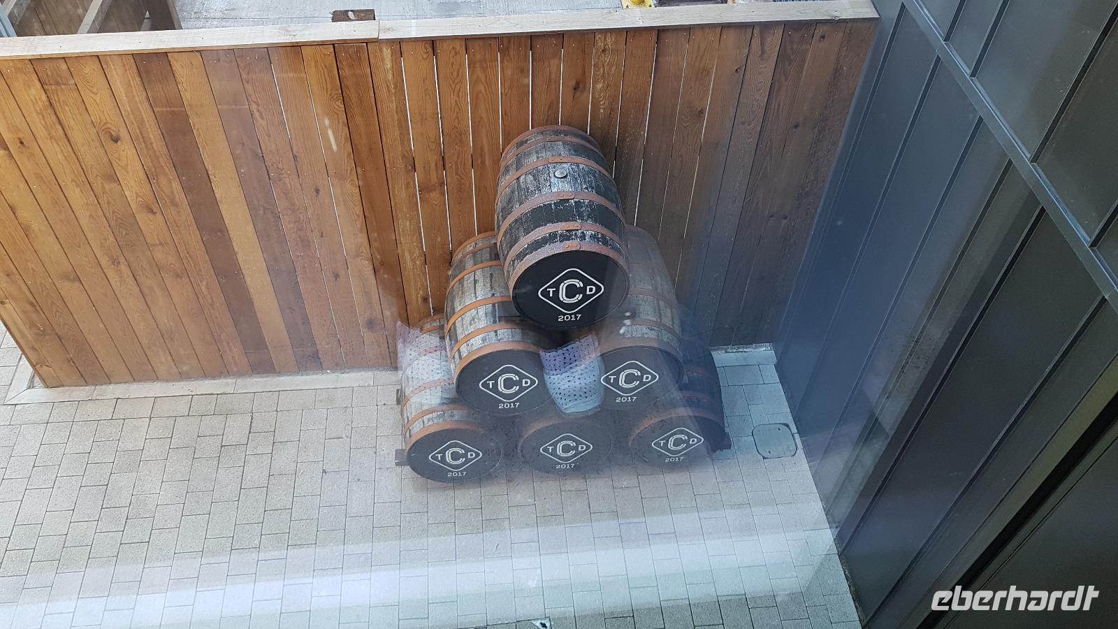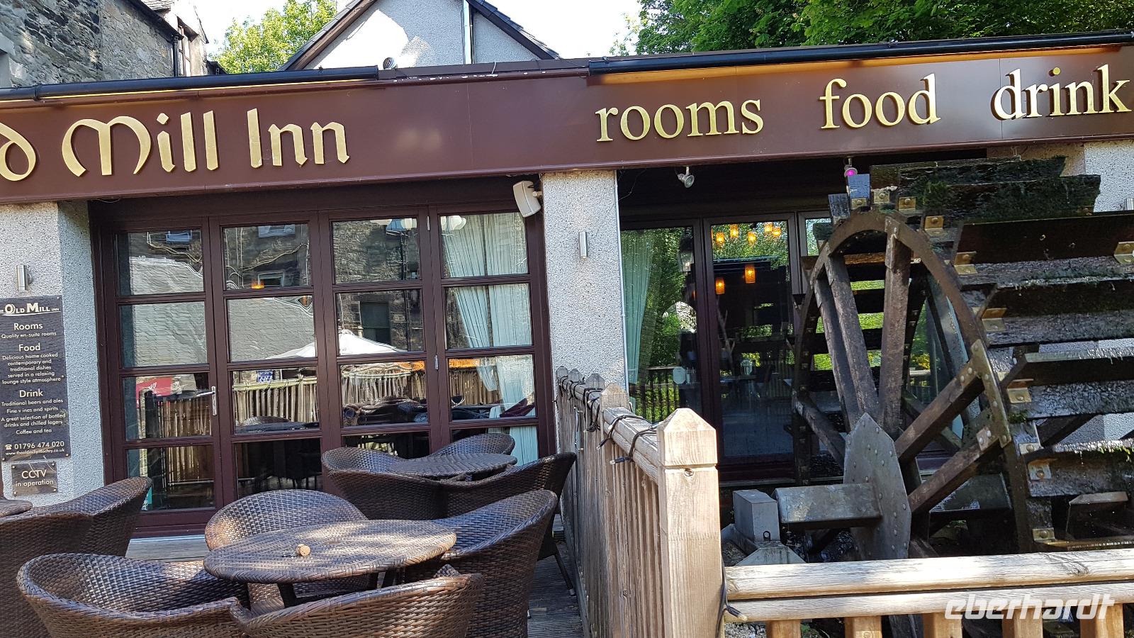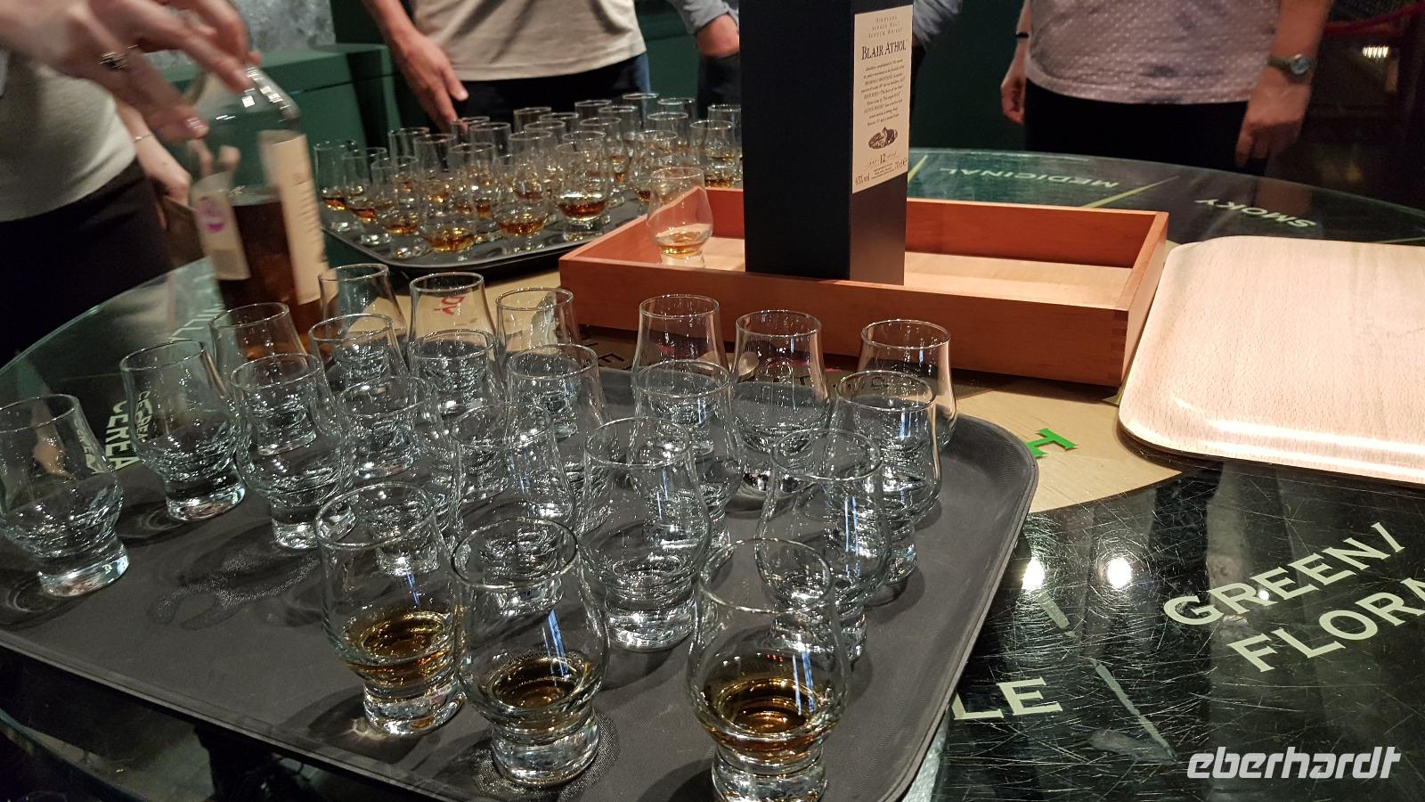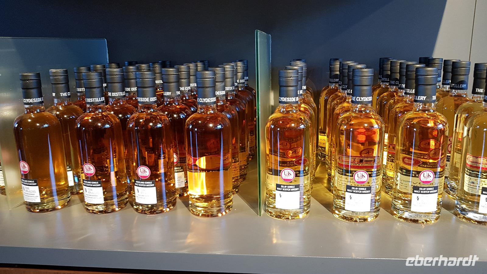 Am Morgen wartete eine böse Überraschung auf uns. Wir hatte Thoralf, unseren Busfahrer bereits vermisst beim Frühstück, da winkte er mich sichtlich schockiert hinaus. Vandalen hatten die Scheibe unseres Busses eingeschlagen- und das auf einem bewachten und beleuchteten Hotel-Parkplatz! Nun war guter Rat teuer, die Polizei rasch verständigt- aber wie kommen wir an eine neue Scheibe für den Bus- und wann ist der dann fertig? Fragen über Fragen, da hieß es erst einmal ruhig bleiben. Wir ließen unsere Koffer im Hotel einschließen denn eigentlich wollten wir ja via Stirling nach Newtonmore und dort übernachten. Es gab Kaffee und Tee für alle und wir warteten... Zwischenzeitlich nutzen wir die Chance: für einen verlorengegangenen Ausweis mußten neue Passbilder her, also ab ins Taxi, in die Stadt und retour. Als auch am späten Vormittag noch nichts entschieden war besuchten wir kurzentschlossen die Clydeside Distillery in Glasgow. Ich hatte vorher angefragt und so konnten wir, aufgeteilt in 2 Gruppen, diese neue Anlage besichtigen. Sie wurde erst im November 2017 in Betrieb genommen, dafür wurde das alte Pumpenhaus des Queensdock umgebaut und erweitert. Mit einer Verkostung je eines Whiskys aus den Lowlands, den Highlands und von der Insel Islay konnte sich jeder selber davon überzeugen, welchen Einfluß das Mälzen mit und ohne Torf und die Wahl der Fässer auf den späteren Geschmack haben. Nur den hauseigenen Whisky konnten wir nicht probieren- logisch, schließlich muss der mindestens 3 Jahre und 1 Tag in Eichenfässern reifen bevor er sich Whisky nennen darf. Da heißt es also : Wiederkommen! Es war bereits Nachmittag und immer mehr zeichnete sich ab, dass unser Bus nicht fertig wird. Vergeblich haben auch alle Verantwortlichen im Hintergrund versucht, einen Ersatzbus zu chartern, uns blieb also nichts anderes übrig, als den Zug zu nehmen. Doch erst einmal war Stärkung angesagt: das Hotel bereitete für uns Kaffee und Tee sowie Sandwiches. Dann ging es los, mit dem Taxi zum Bahnhof Queenstreet, hier Tickets holen (Gott sei dank gibt es überall außerordentlich freundliche Service-Mitarbeiter) und los zum Bahnsteig. Dann kam auch schon der Zug und wir enterten die Abteile, als wir das Zeichen bekamen, einsteigen zu können. Regelrechte Kofferburgen haben wir auf den Sitzen bauen müssen, es durfte keiner im Gang stehen bleiben, denn da kam ja noch die nette Frau mit ihrem Wagen für Erfrischungen, Kaffee und Snacks. In Stirling leerte sich der Zug bereits etwas und wir konnten das Castle und das Wallace Monument vom Zug aus sehen. Unsere Fahrt führte uns dann via Perth und Bair Atholl durch den Cairngorn Nationalpark bis nach Aviemore. Hier hieß es dann nach zwei-einhalb-stündiger Zugfahrt aussteigen und in Taxis zum Hotel in Newtonmore umsteigen. Wieder erwies es sich als ausgesprochen schwierig, das viele Gepäck und die Passagiere in ein Fahrzeug zu bekommen. So mußten denn auch die letzten ziemlich lange auf ihr Taxi warten. Sie schafften es dann endlich gegen 21:30 Uhr auch, im Hotel anzukommen, alle anderen hatten bereits ihre Zimmer bezogen und machten es sich bei Live-Musik im Pub unten gemütlich. Groß dann die Freude, als es noch einmal Sandwiches für alle gab und mit einem zünftigen „Black", einem dunklen Bier, stießen wir auf diesen abenteuerlichen Tag an.