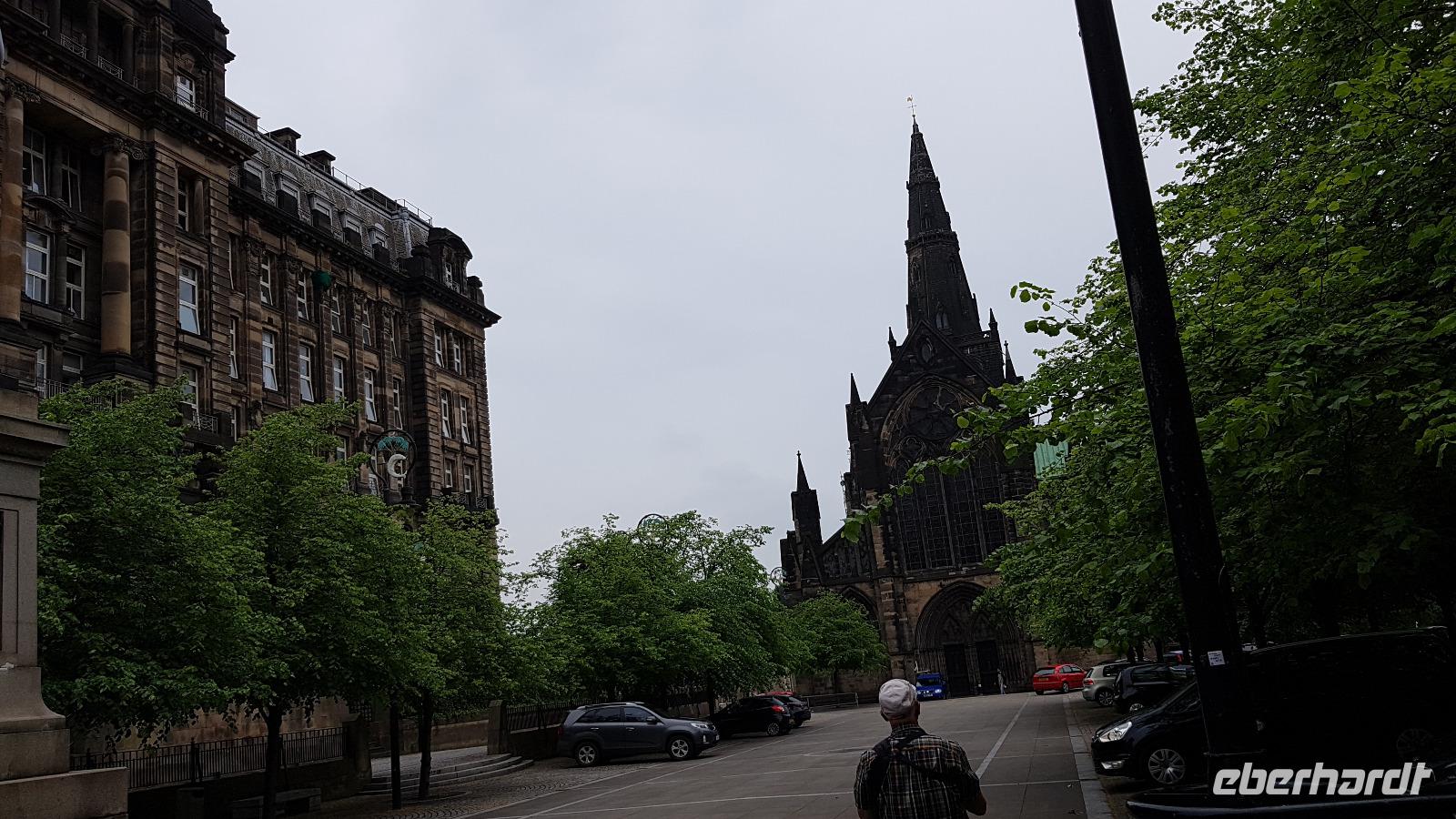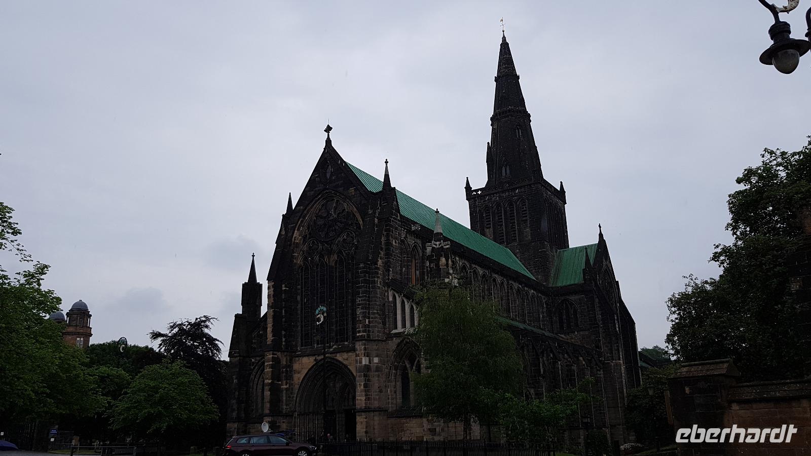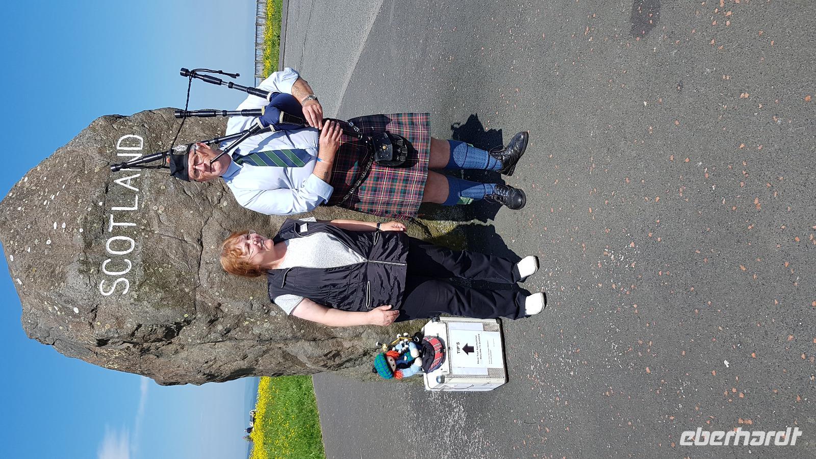 Für unsere Fluggäste heißt es heute zeitig los, von Leipzig, Dresden und Berlin starten sie Richtung Edinburgh und werden sicher mit einem Transfer zu unserem Hotel in Glasgow gebracht. Die Busgruppe gönnt sich derweil ein gutes Frühstück an Bord der Fähre und verfolgt dann gespannt das Einlaufen in den Hafen von Newcastle. Problemlos passieren wir die Passkontrolle und dann kann das Abenteuer Schottland beginnen. Unser Weg führt uns direkt am Hadrianswall entlang, der Befestigungsanlage der Römer, die Kaiser Hadrian nach der Eroberung Britanniens hier errichten ließ. Wir folgen also der alten Military Road und bei Cawfield stoppen wir. Hier ist ein alter Steinbruch, in dem Steine für die Mauern gewonnen wurden direkt am Wall. Ein kleiner Aufstieg und wir stehen auf historischem Boden, sehen auch die Grundmauern eines Kastells zu unseren Füßen. Beeindruckt setzen wir unsere Fahrt fort, wir erreichen kurz vor Gretna Green die englisch-schottische Grenze und besuchen dann die berühmte Hochzeitsschmiede. Hier konnten nach dem Verbot von Hochzeiten unter Minderjährigen im Jahre 1754 die Liebenden den englischen Gesetzen trotzen, schließlich war hier Schottland, da galten die englischen Gesetze nicht. Und schon ging die Fahrt weiter, Glasgow war unser Ziel, hier warteten ja schon unsere Fluggäste. Pünktlich erreichten wir das Hotel und konnten bereits einchecken. Auch unser Stadtführer Frazer Gordon war schon da und mit ihm erlebten wir eine kurzweilige und amüsante Tour durch seine Stadt. Vom George Square zur Kathedrale, dem Peoples Palace, Glasgow Green und dem Uni-Viertel, vorbei am Fluss Kelvin, der Namensgeber für einen Professor der Uni war - ja der mit der Kelvin-Temperatur. Auf der Fahrt durch das Stadtzentrum erfuhren wir viel über das Leben hier, dass Museen kostenfrei sind, Rentner einen Zuschuss fürs Heizen und kostenloses Busfahren erhalten, Studenten aus Schottland an den Unis hier keine Gebühren zahlen usw. und er beantwortete auch die wichtige Frage: was der Schotte unter dem Schottenrock trägt: seine Antwort: „die Zukunft Schottlands". ?? Schon war es Zeit, sich von ihm zu verabschieden und wir trafen uns zum Abendessen wieder- welche Überraschung, wir aßen a-la-Card - da fiel die Auswahl schwer. Doch nach Dessert mit Kaffee oder Tee waren alle mehr als gesättigt und wir verabschiedeten uns voneinander für heute. Einige Unentwegte zog es noch in die Nacht von Glasgow, Frazer hatte einige Pubs in de Nähe empfohlen...