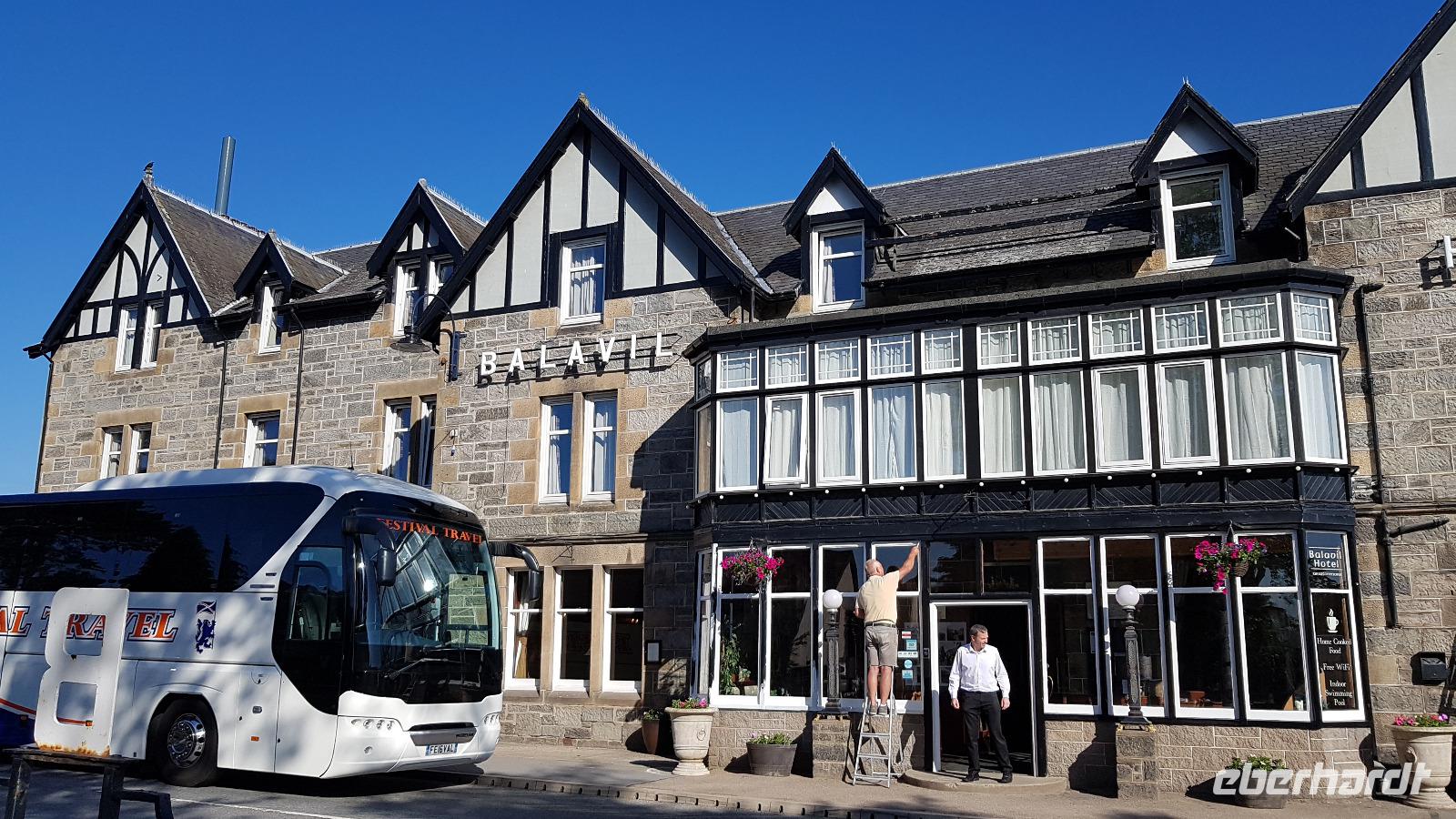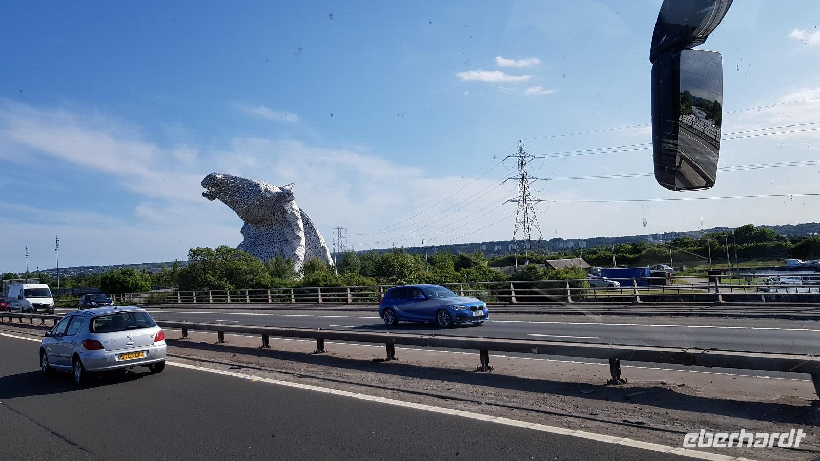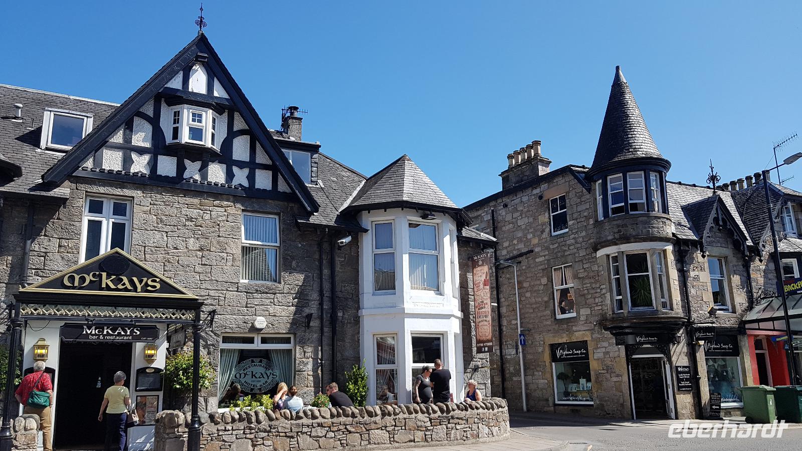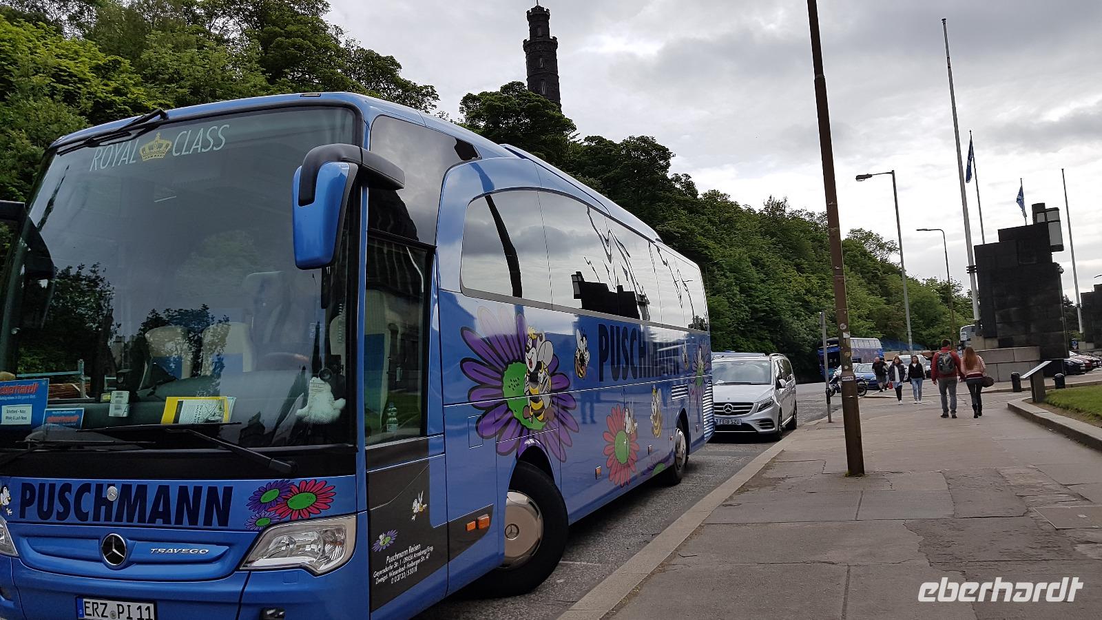 Heute ist unser Busfahrer Paul. Wir laden unsere Koffer ein, schließlich geht es nun wieder Richtung Süden. Unser erstes Ziel heißt Pitlochry. Eine kleine Stadt am Fluß Tummel. Ihre Geschichte reicht weit zurück, bis ca. 250 n. Chr., doch die eigentliche Gründung der Stadt erfolgte erst Mitte des 18. Jahrhunderts mit der Erschließung der ländlichen Bereiche des Hochlandes und dem Bau der Straßen. Bei strahlend blauem Himmel bummeln wir die Straßen entlang oder genießen die Sonne in einem der Cafes. Weiter geht unsere Fahrt zur Blair Atholl Distillery. Ganz anders als die Distillery in Glasgow- man sieht (und riecht) hier eine lange Tradition. Bei einem Rundgang werden wir wieder mit den Geheimnissen der hiesigen Gewinnung des „Wassers des Lebens" vertraut gemacht und zum Abschluss darf natürlich eine Verkostung eines 12-jährigen Whiskys aus dem Hause Blair Atholl nicht fehlen. Alle sind sich einig: genau so hatten wir uns eine Distillery in Schottland vorgestellt. Das eine oder andere Fläschchen wechselte noch den Besitzer und dann ging es weiter nach Stirling. Stirling Castle- die „Schicksalsburg im Herzen Schottlands" wollen wir besuchen. Schon von weitem sahen wir sie oben auf dem Castle Hill thronen, schier uneinnehmbar. Das dem nicht so war erfuhren wir schon unterwegs, also wollten wir es genauer wissen, ausgerüstet mit Übersichtsplänen und Audio-Guides erkundeten wir die Burg. So vieles gab es zu entdecken, von der Küche, die bis ins Detail nachgebildet war bis zu den Gemächern der Könige. Von den Gärten, den Burghöfen, den Wallanlagen und den Kanonen, der großen Batterie, bis zum Regiment-Museum. Die Burg wurde ja zuletzt als Kaserne genutzt, Oliver Cromwell hatte ihren Mauern bei seiner Eroberung schweren Schaden zugefügt, hier wollte kein König mehr leben. Beeindruckt von diesem Besuch trafen wir uns am Bus wieder und Paul brachte uns sicher nach Livingston zu unserem Hotel. Unterwegs machten wir noch die Bekanntschaft von Kelpies in Falkirk, Wasser-Fabelwesen, die die Gestalt von wunderschönen Pferden annehmen, sie verleiten dich dazu, aufzusteigen- dann ist es zu spät. Niemand kann entkommen, sie ziehen dich mit auf den Meeresboden. Zu erkennen sind sie nur an einem bläulichen Schimmer des Fells- also immer gut achtgeben... Unbeschadet erreichen wir am Abend unser Hotel und verabschieden uns von Paul. Dann lassen wir uns unser Abendessen schmecken. Wir haben gerade angefangen- da steht Thoralf im Raum und Applaus brandet ihm entgegen. Er ist mit seinem Bus endlich wieder bei uns, was haben wir ihn vermisst. Seinen Abenteuern mit der Reparatur nach zu urteilen wäre er auch viel lieber bei uns geblieben. Nun sind wir also für morgen gut gerüstet, spaßeshalber teilen die Männer schon mal die Nachtwachen ein, um den Bus zu beschützen...
