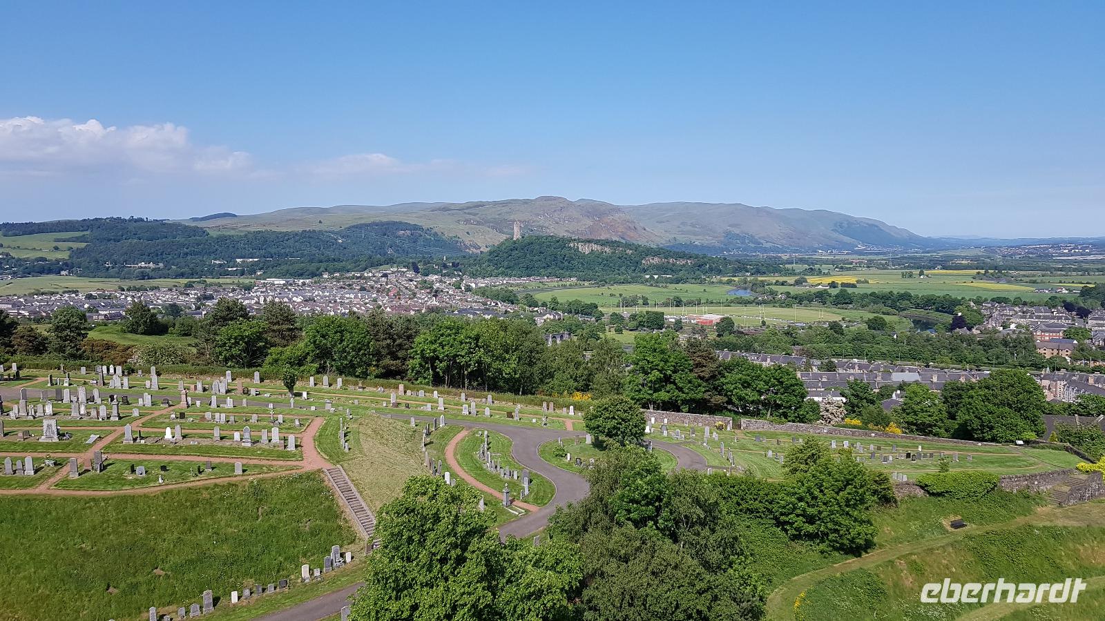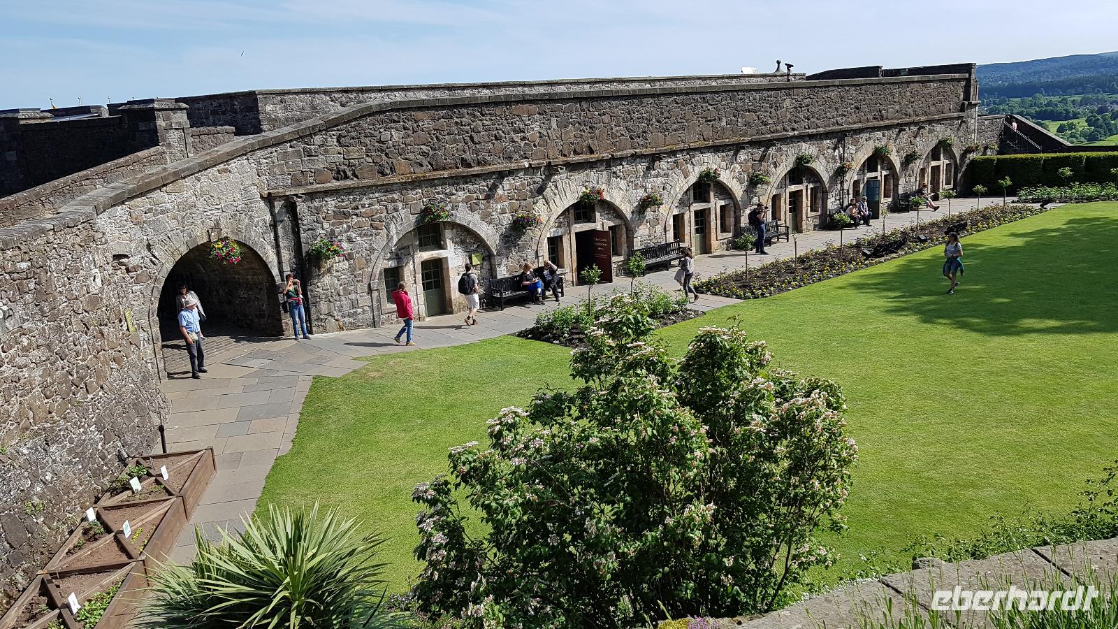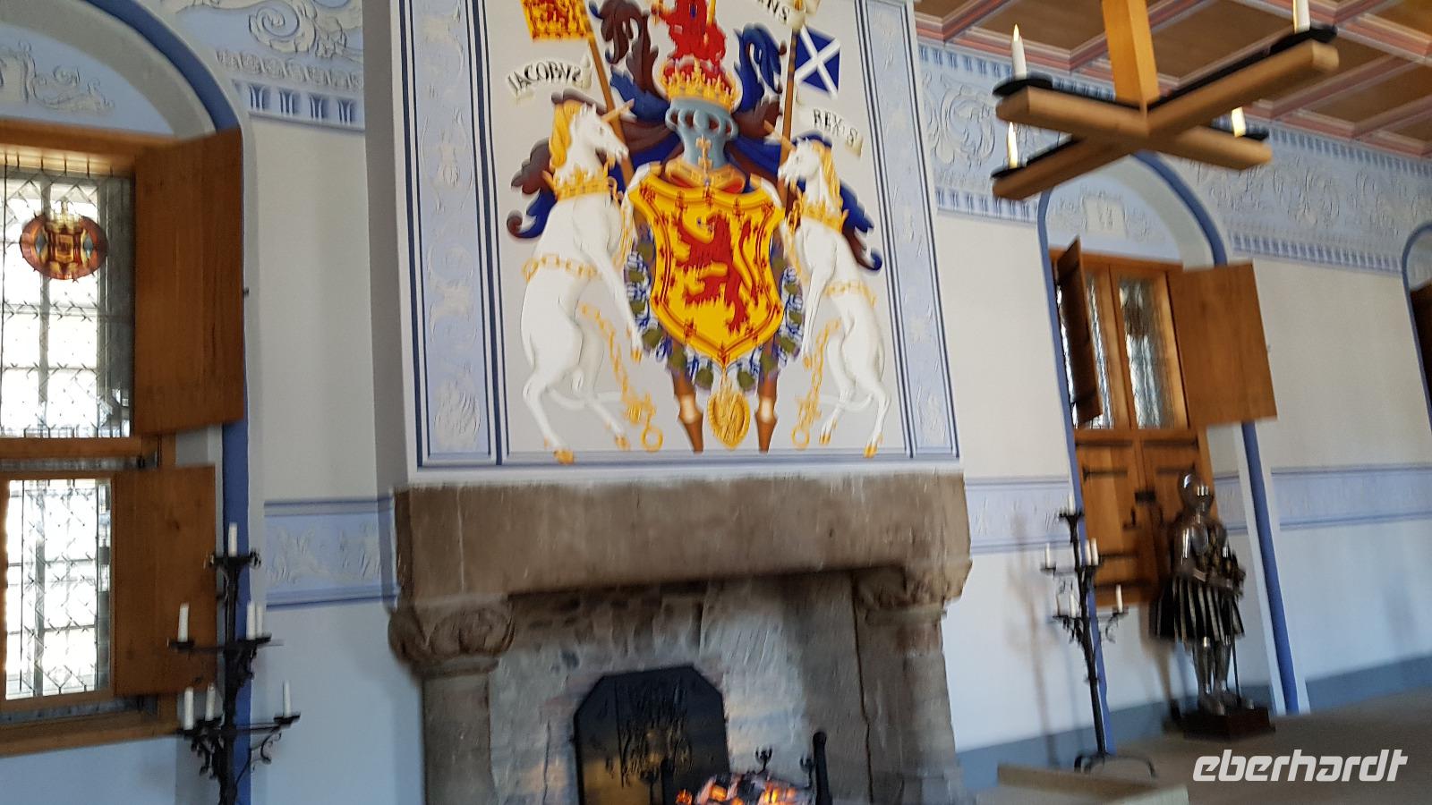 Heute ist unser Busfahrer Paul. Wir laden unsere Koffer ein, schließlich geht es nun wieder Richtung Süden. Unser erstes Ziel heißt Pitlochry. Eine kleine Stadt am Fluß Tummel. Ihre Geschichte reicht weit zurück, bis ca. 250 n. Chr., doch die eigentliche Gründung der Stadt erfolgte erst Mitte des 18. Jahrhunderts mit der Erschließung der ländlichen Bereiche des Hochlandes und dem Bau der Straßen. Bei strahlend blauem Himmel bummeln wir die Straßen entlang oder genießen die Sonne in einem der Cafes. Weiter geht unsere Fahrt zur Blair Atholl Distillery. Ganz anders als die Distillery in Glasgow- man sieht (und riecht) hier eine lange Tradition. Bei einem Rundgang werden wir wieder mit den Geheimnissen der hiesigen Gewinnung des „Wassers des Lebens" vertraut gemacht und zum Abschluss darf natürlich eine Verkostung eines 12-jährigen Whiskys aus dem Hause Blair Atholl nicht fehlen. Alle sind sich einig: genau so hatten wir uns eine Distillery in Schottland vorgestellt. Das eine oder andere Fläschchen wechselte noch den Besitzer und dann ging es weiter nach Stirling. Stirling Castle- die „Schicksalsburg im Herzen Schottlands" wollen wir besuchen. Schon von weitem sahen wir sie oben auf dem Castle Hill thronen, schier uneinnehmbar. Das dem nicht so war erfuhren wir schon unterwegs, also wollten wir es genauer wissen, ausgerüstet mit Übersichtsplänen und Audio-Guides erkundeten wir die Burg. So vieles gab es zu entdecken, von der Küche, die bis ins Detail nachgebildet war bis zu den Gemächern der Könige. Von den Gärten, den Burghöfen, den Wallanlagen und den Kanonen, der großen Batterie, bis zum Regiment-Museum. Die Burg wurde ja zuletzt als Kaserne genutzt, Oliver Cromwell hatte ihren Mauern bei seiner Eroberung schweren Schaden zugefügt, hier wollte kein König mehr leben. Beeindruckt von diesem Besuch trafen wir uns am Bus wieder und Paul brachte uns sicher nach Livingston zu unserem Hotel. Unterwegs machten wir noch die Bekanntschaft von Kelpies in Falkirk, Wasser-Fabelwesen, die die Gestalt von wunderschönen Pferden annehmen, sie verleiten dich dazu, aufzusteigen- dann ist es zu spät. Niemand kann entkommen, sie ziehen dich mit auf den Meeresboden. Zu erkennen sind sie nur an einem bläulichen Schimmer des Fells- also immer gut achtgeben... Unbeschadet erreichen wir am Abend unser Hotel und verabschieden uns von Paul. Dann lassen wir uns unser Abendessen schmecken. Wir haben gerade angefangen- da steht Thoralf im Raum und Applaus brandet ihm entgegen. Er ist mit seinem Bus endlich wieder bei uns, was haben wir ihn vermisst. Seinen Abenteuern mit der Reparatur nach zu urteilen wäre er auch viel lieber bei uns geblieben. Nun sind wir also für morgen gut gerüstet, spaßeshalber teilen die Männer schon mal die Nachtwachen ein, um den Bus zu beschützen...