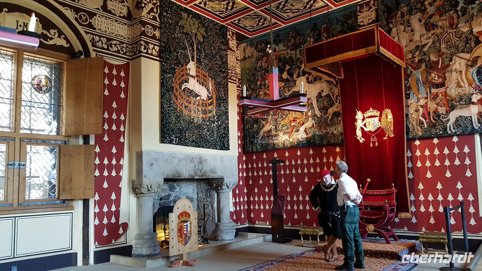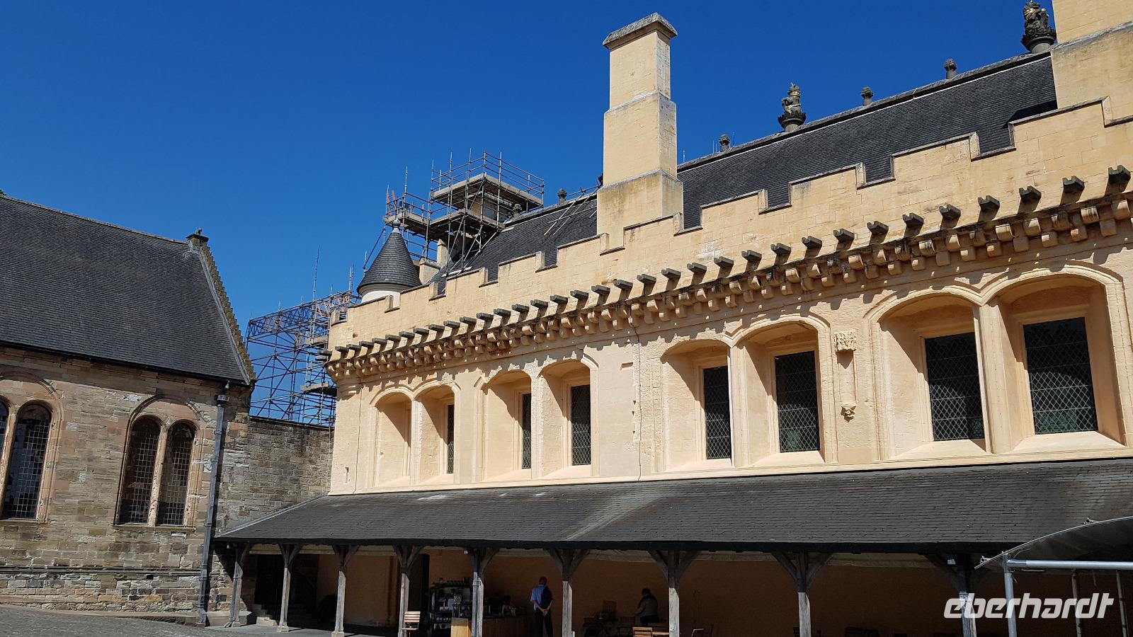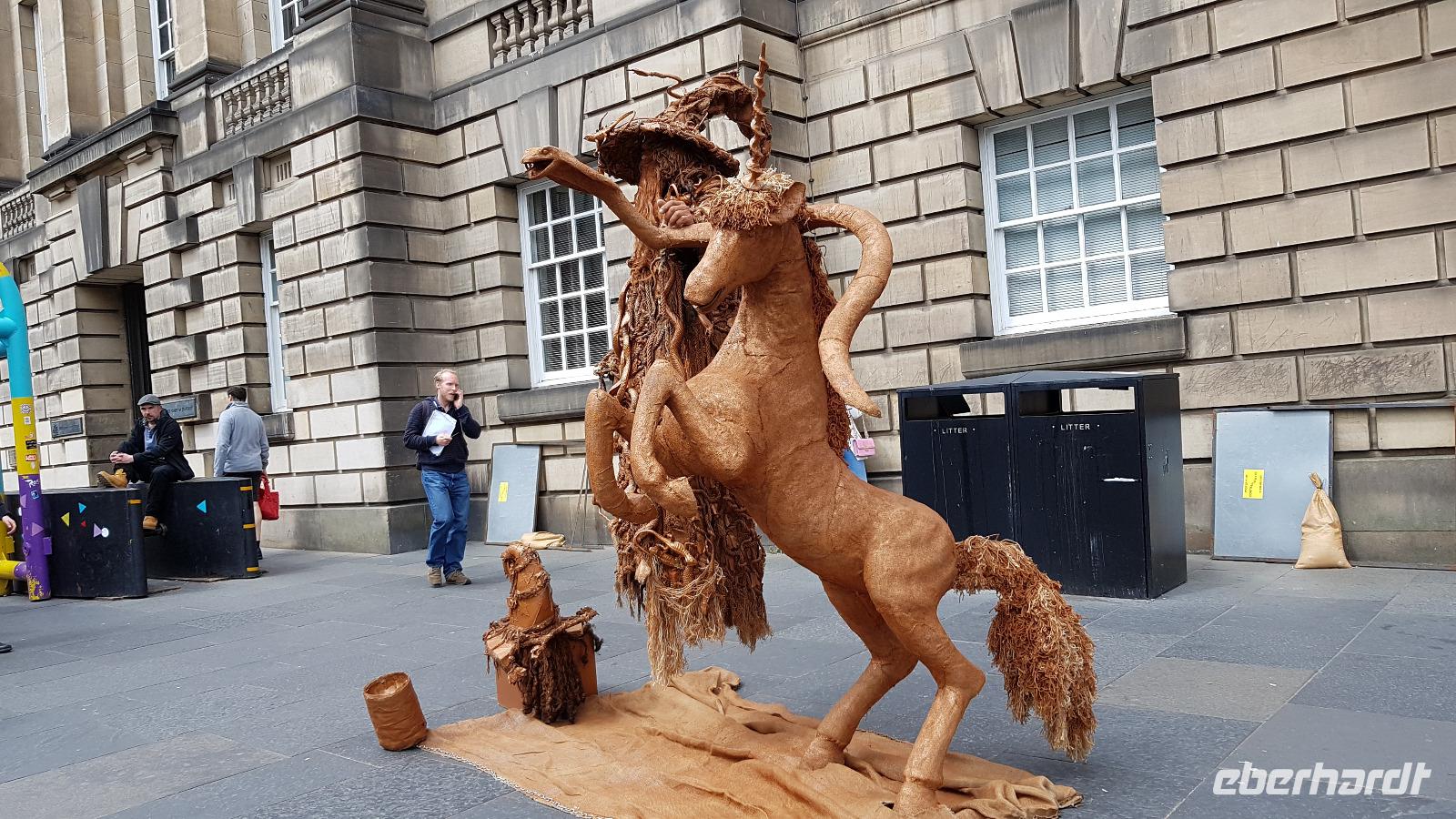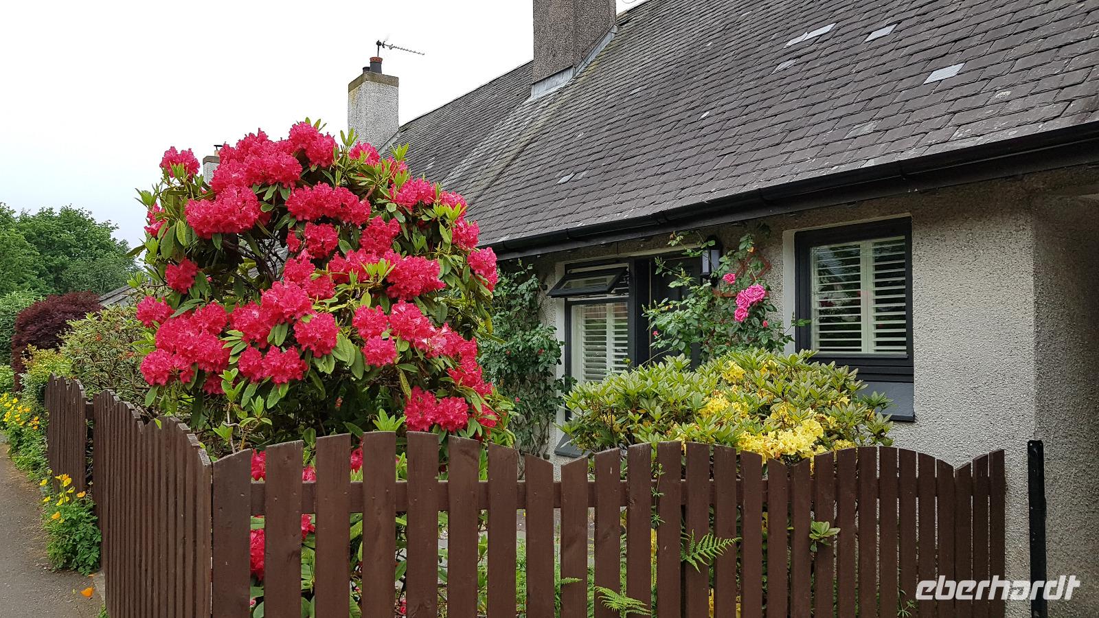 Heute ist unser Busfahrer Paul. Wir laden unsere Koffer ein, schließlich geht es nun wieder Richtung Süden. Unser erstes Ziel heißt Pitlochry. Eine kleine Stadt am Fluß Tummel. Ihre Geschichte reicht weit zurück, bis ca. 250 n. Chr., doch die eigentliche Gründung der Stadt erfolgte erst Mitte des 18. Jahrhunderts mit der Erschließung der ländlichen Bereiche des Hochlandes und dem Bau der Straßen. Bei strahlend blauem Himmel bummeln wir die Straßen entlang oder genießen die Sonne in einem der Cafes. Weiter geht unsere Fahrt zur Blair Atholl Distillery. Ganz anders als die Distillery in Glasgow- man sieht (und riecht) hier eine lange Tradition. Bei einem Rundgang werden wir wieder mit den Geheimnissen der hiesigen Gewinnung des „Wassers des Lebens" vertraut gemacht und zum Abschluss darf natürlich eine Verkostung eines 12-jährigen Whiskys aus dem Hause Blair Atholl nicht fehlen. Alle sind sich einig: genau so hatten wir uns eine Distillery in Schottland vorgestellt. Das eine oder andere Fläschchen wechselte noch den Besitzer und dann ging es weiter nach Stirling. Stirling Castle- die „Schicksalsburg im Herzen Schottlands" wollen wir besuchen. Schon von weitem sahen wir sie oben auf dem Castle Hill thronen, schier uneinnehmbar. Das dem nicht so war erfuhren wir schon unterwegs, also wollten wir es genauer wissen, ausgerüstet mit Übersichtsplänen und Audio-Guides erkundeten wir die Burg. So vieles gab es zu entdecken, von der Küche, die bis ins Detail nachgebildet war bis zu den Gemächern der Könige. Von den Gärten, den Burghöfen, den Wallanlagen und den Kanonen, der großen Batterie, bis zum Regiment-Museum. Die Burg wurde ja zuletzt als Kaserne genutzt, Oliver Cromwell hatte ihren Mauern bei seiner Eroberung schweren Schaden zugefügt, hier wollte kein König mehr leben. Beeindruckt von diesem Besuch trafen wir uns am Bus wieder und Paul brachte uns sicher nach Livingston zu unserem Hotel. Unterwegs machten wir noch die Bekanntschaft von Kelpies in Falkirk, Wasser-Fabelwesen, die die Gestalt von wunderschönen Pferden annehmen, sie verleiten dich dazu, aufzusteigen- dann ist es zu spät. Niemand kann entkommen, sie ziehen dich mit auf den Meeresboden. Zu erkennen sind sie nur an einem bläulichen Schimmer des Fells- also immer gut achtgeben... Unbeschadet erreichen wir am Abend unser Hotel und verabschieden uns von Paul. Dann lassen wir uns unser Abendessen schmecken. Wir haben gerade angefangen- da steht Thoralf im Raum und Applaus brandet ihm entgegen. Er ist mit seinem Bus endlich wieder bei uns, was haben wir ihn vermisst. Seinen Abenteuern mit der Reparatur nach zu urteilen wäre er auch viel lieber bei uns geblieben. Nun sind wir also für morgen gut gerüstet, spaßeshalber teilen die Männer schon mal die Nachtwachen ein, um den Bus zu beschützen...