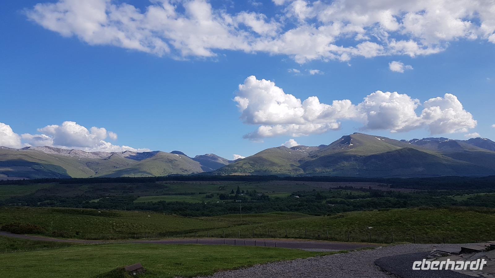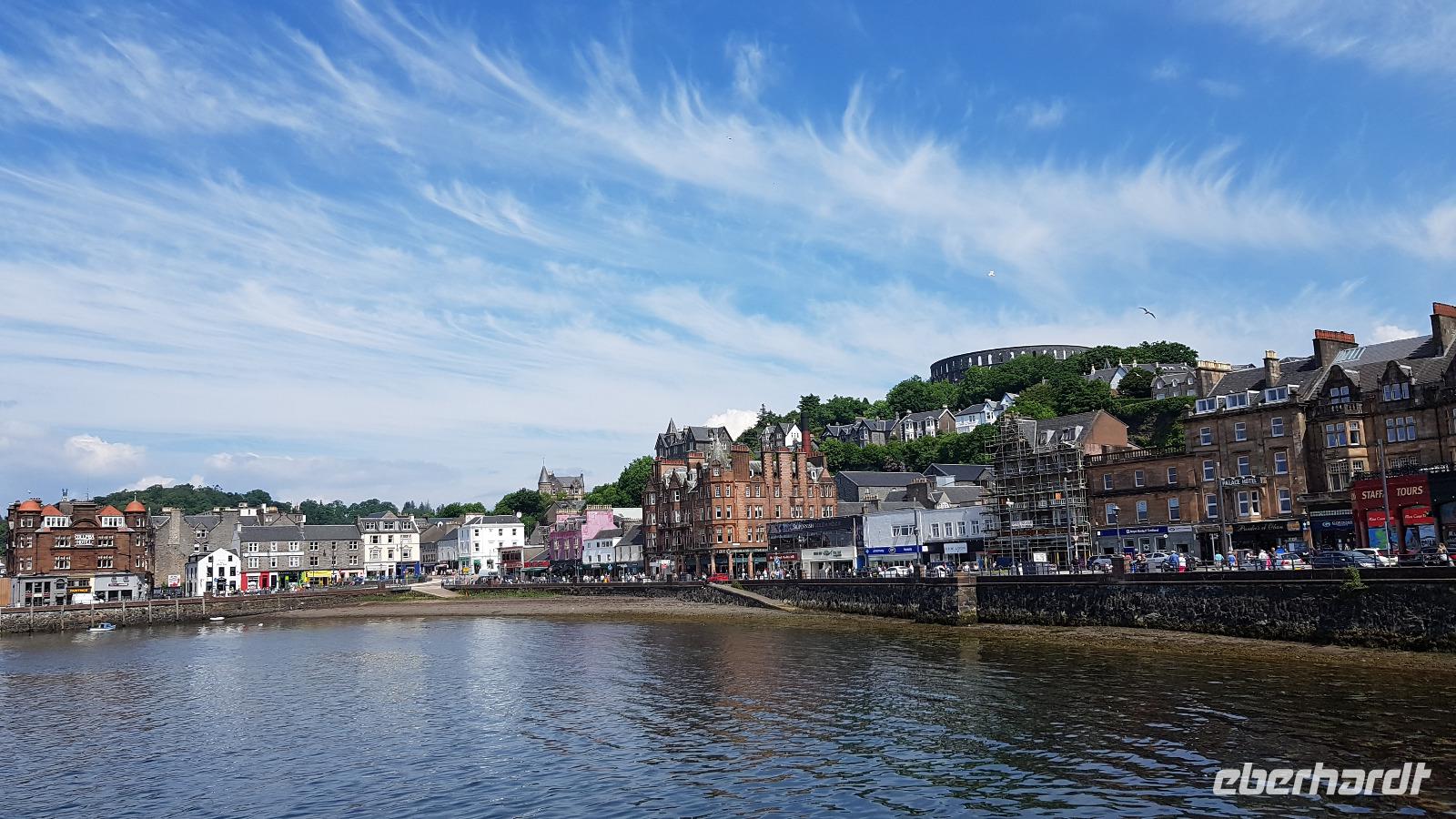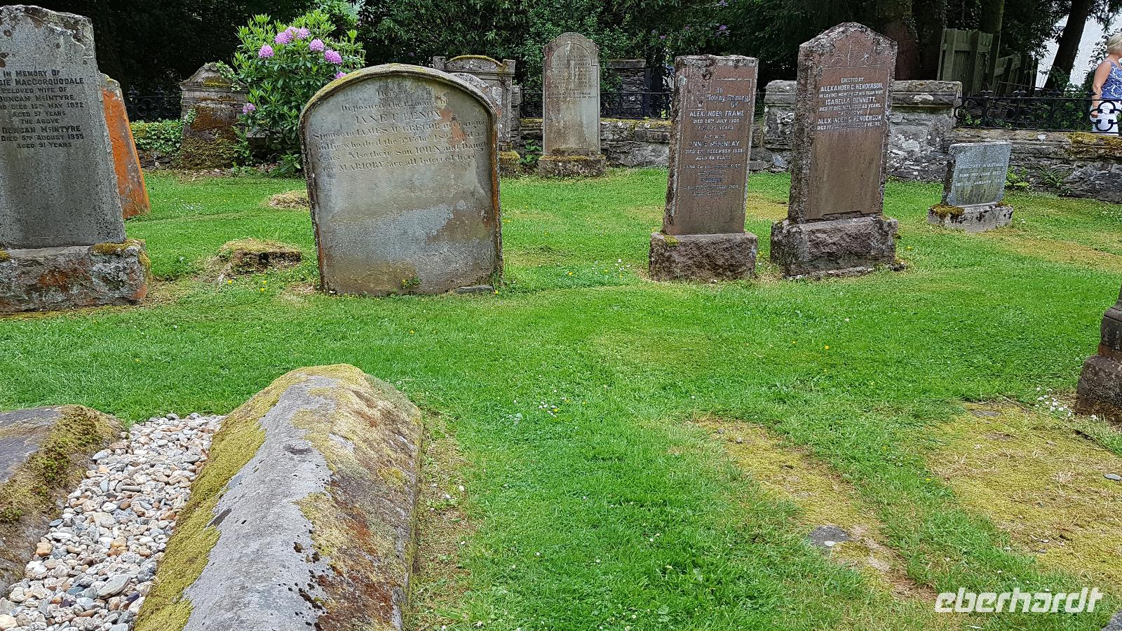 Heute Morgen erwartet uns der größte und schönste See Schottlands- Loch Lomond. Passen dazu hörten wir die Geschichte des Loch- Lomond- Liedes- von der Liebe, die hier begann, am wunderschönen Strand von Loch Lomond und der Heimkehr zweier Soldaten aus dem Jakobiner-Aufständen: Einer lebendig- er nimmt die „high Road", einer hingerichtet- er nimmt die „low Road" durch die Unterwelt...In Luss hatten wir Gelegenheit, uns von der Größe und Schönheit zu überzeugen. Ein kleiner Spaziergang durch den Ort führte uns auch zur Kirche und seinem Friedhof. Hier finden wir außergewöhnliche Zeitzeugen: sogenannte Hogbacks, längliche Grabsteine aus dem 10.-12. Jahrhundert aus der Wikingerzeit. Dann fing es leider wieder an zu regnen, eine Baustelle an einem Steinschlag kostete viel Zeit und so fuhren wir direkt weiter nach Inveraray. Ein so gar nicht typisch schottisches Schloss erwartete uns: Inveraray Castle. Exzentrisch und eindrucksvoll. Nach einem kleinen Abstecher durch den Ort ging es weiter: nach Oban. Siehe da: die Sonne schien, strahlend blauer Himmel und wir konnten, ausgerüstet mit unseren Stadtplänen, diese wunderbare Hafenstadt erkunden. Viele zog es zum Hafen, sie probierten fangfrische Muscheln, andere erkundeten Mc Caigs Tower- den Nachbau des Kolosseums hier, der hoch über der Stadt thront und wieder andere genossen einfach das Flair und bummelten durch die Straßen. Über die Brücke von Connel ging es dann weiter Richtung Norden. Glen Coe- auch das „Tal der Tränen" genannt nahm uns gefangen. Erst durch die Geschichte dazu, die wir hörten, dann aber der Anblick selber. Wie majestätisch und erhaben! Dann ging das Tal in das Rannoch Moor über und wir konnten uns bei einem Fotostopp davon überzeugen, wie elastisch der Boden unter unseren Füßen war und welch grandiose Aussichten sich uns boten. Dann ging die Fahrt zurück, in Luss stoppten wir noch einmal kurz und kamen erschöpft aber voller neuer Eindrücke im Hotel an. Gleich ging es zum Abendessen, ein Buffett wartete auf uns und so war für jeden etwas dabei.