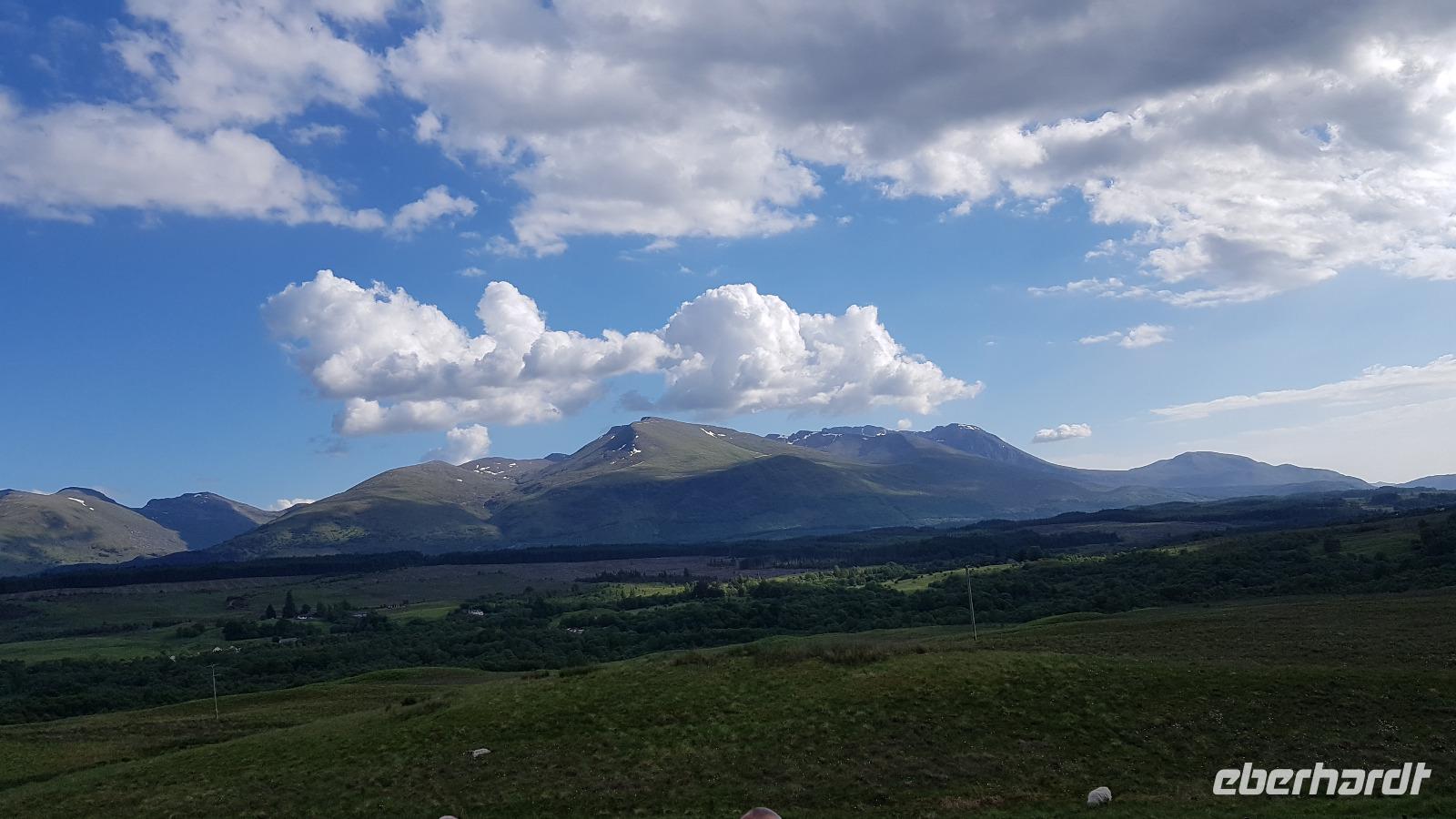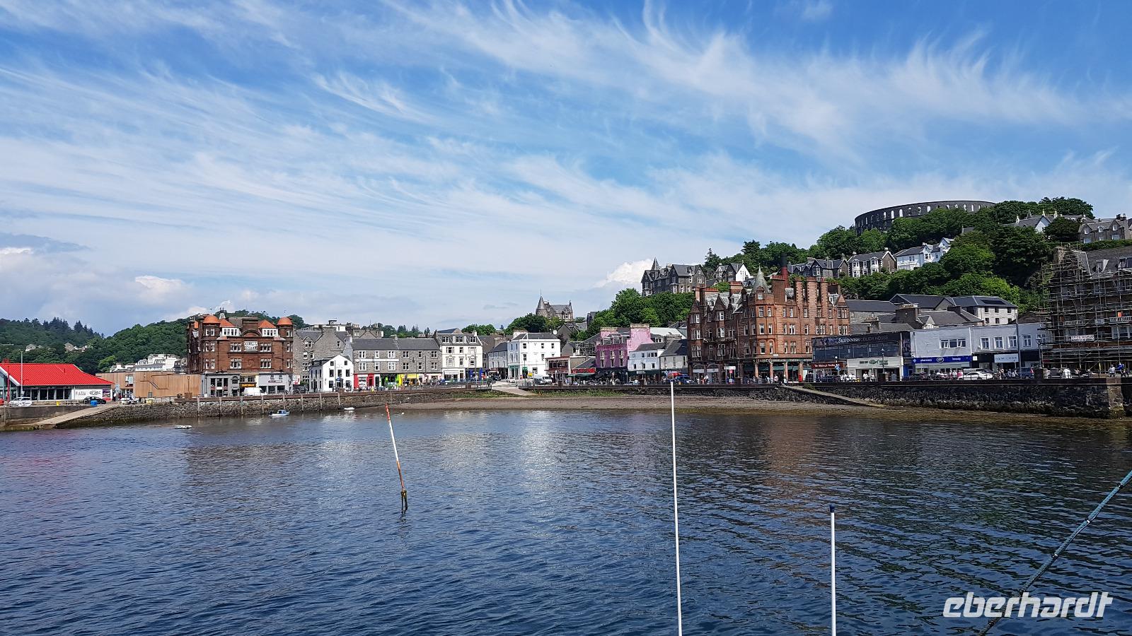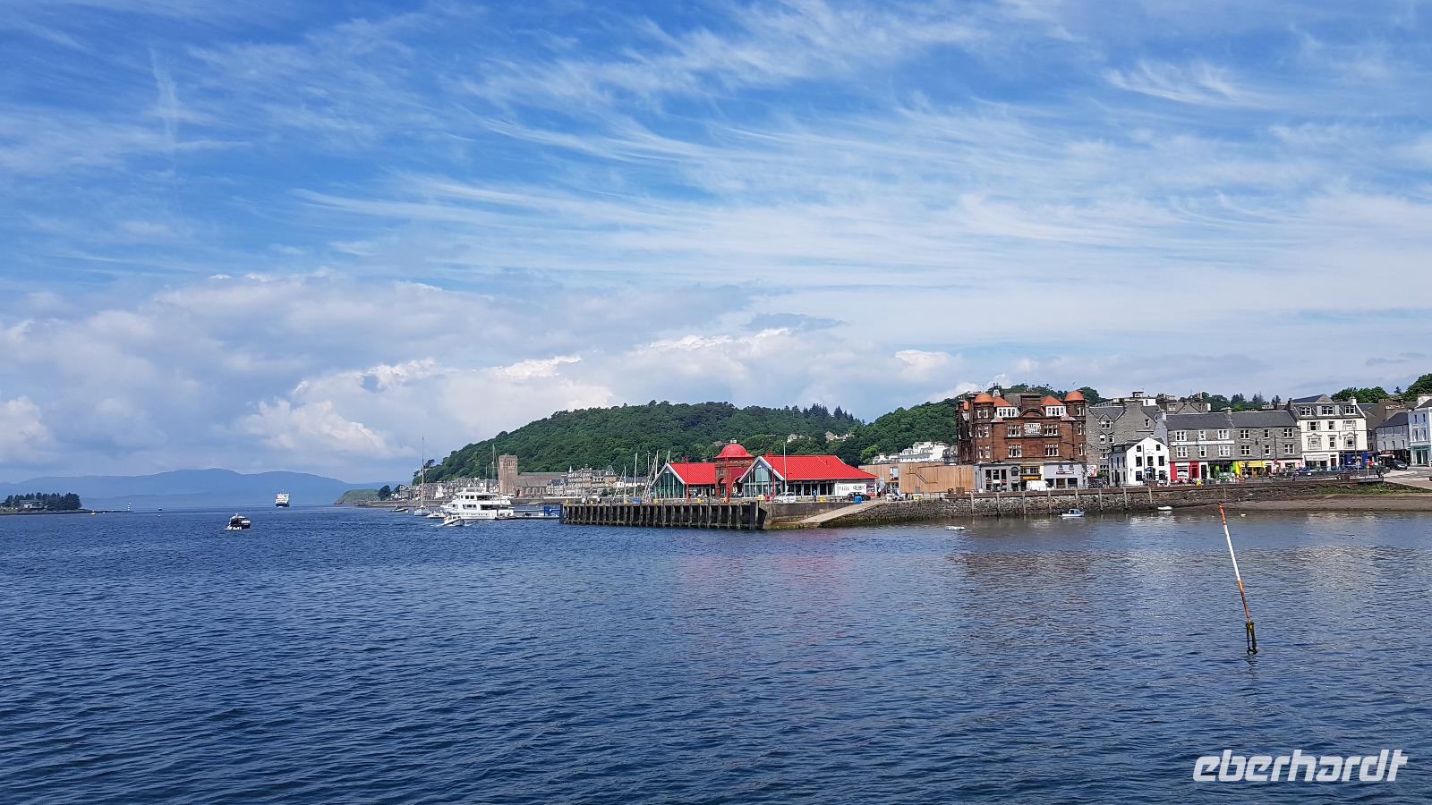Heute Morgen erwartet uns der größte und schönste See Schottlands- Loch Lomond. Passen dazu hörten wir die Geschichte des Loch- Lomond- Liedes- von der Liebe, die hier begann, am wunderschönen Strand von Loch Lomond und der Heimkehr zweier Soldaten aus dem Jakobiner-Aufständen: Einer lebendig- er nimmt die „high Road", einer hingerichtet- er nimmt die „low Road" durch die Unterwelt...In Luss hatten wir Gelegenheit, uns von der Größe und Schönheit zu überzeugen. Ein kleiner Spaziergang durch den Ort führte uns auch zur Kirche und seinem Friedhof. Hier finden wir außergewöhnliche Zeitzeugen: sogenannte Hogbacks, längliche Grabsteine aus dem 10.-12. Jahrhundert aus der Wikingerzeit. Dann fing es leider wieder an zu regnen, eine Baustelle an einem Steinschlag kostete viel Zeit und so fuhren wir direkt weiter nach Inveraray. Ein so gar nicht typisch schottisches Schloss erwartete uns: Inveraray Castle. Exzentrisch und eindrucksvoll. Nach einem kleinen Abstecher durch den Ort ging es weiter: nach Oban. Siehe da: die Sonne schien, strahlend blauer Himmel und wir konnten, ausgerüstet mit unseren Stadtplänen, diese wunderbare Hafenstadt erkunden. Viele zog es zum Hafen, sie probierten fangfrische Muscheln, andere erkundeten Mc Caigs Tower- den Nachbau des Kolosseums hier, der hoch über der Stadt thront und wieder andere genossen einfach das Flair und bummelten durch die Straßen. Über die Brücke von Connel ging es dann weiter Richtung Norden. Glen Coe- auch das „Tal der Tränen" genannt nahm uns gefangen. Erst durch die Geschichte dazu, die wir hörten, dann aber der Anblick selber. Wie majestätisch und erhaben! Dann ging das Tal in das Rannoch Moor über und wir konnten uns bei einem Fotostopp davon überzeugen, wie elastisch der Boden unter unseren Füßen war und welch grandiose Aussichten sich uns boten. Dann ging die Fahrt zurück, in Luss stoppten wir noch einmal kurz und kamen erschöpft aber voller neuer Eindrücke im Hotel an. Gleich ging es zum Abendessen, ein Buffett wartete auf uns und so war für jeden etwas dabei.