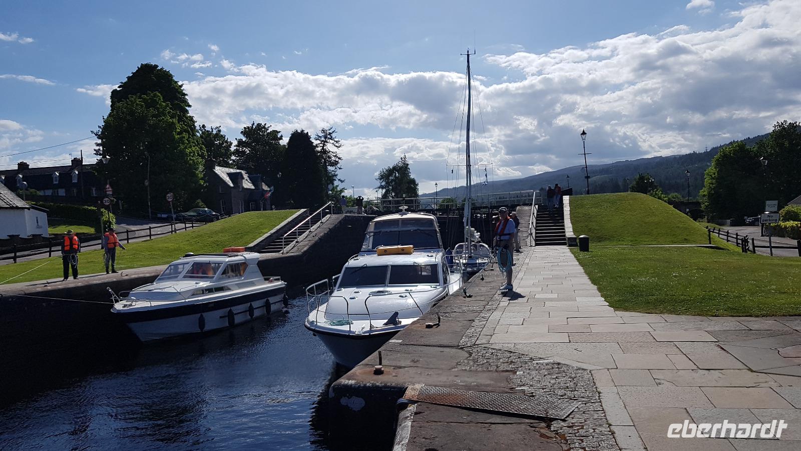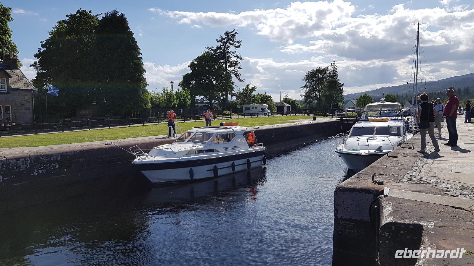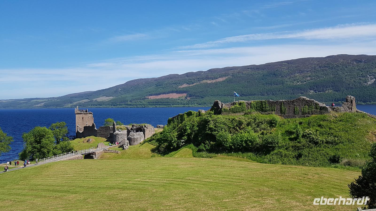 Heute hatten wir einen neuen Bus und unser Fahrer Michael brachte uns nach einem guten Frühstück zuerst an den Moray-Fjord. Hier thront auf einer Landzunge das Fort George- wieder erbaut von König George II. nach dem Sieg über die Jakobiten 1746. „Nie wieder sollt ihr euch erheben" das sollte das Fort ausdrücken und die Highlander wurden all ihrer Symbole und ihrer Traditionen beraubt. Sogar das Tragen des Kilts und das Spielen des Dudelsackes wurde verboten. Unglaubliche 200.000 Pfund soll der Bau damals gekostet haben- das wäre heute umgerechnet fast 1 Milliarde Pfund. Imposant entsprechend auch die Anlagen des Forts. Viele Besonderheiten konnten wir hier mit Audio Guides erkunden und so trafen wir uns erst am Mittag wieder um weiterzufahren. Einige hatten sogar Glück und konnten Delfine in der Bucht fotografieren. Am Culloden -Schlachtfeld dann ein kurzer Stopp für eine Harmonie-Pause und einen kleinen Snack. Das Schlachtfeld selber sahen wir dann vom Bus aus ebenfalls. Dann der große Schreck- ein Handy ist weg. Gott sei dank meldete sich ein Mitarbeiter vom Culloden- Info-Center als ich versuchte, das Telefon zu erreichen. Ein ehrlicher Finder hatte es bei ihm abgegeben. Nun war guter Rat teuer denn wir konnten nicht umkehren. Auf uns wartete das Schiff für unsere Bootsfahrt auf dem Loch Ness. Michael erklärte sich bereit noch einmal zurück zu fahren, während wir auf dem See und im Urquart Castle waren. Was für ein Glück. Am Loch Ness konnten wir uns selber überzeugen, dass er tatsächlich so dunkel war und man nicht tief blicken konnte- perfekt für die Legende von Nessie. Immerhin erreicht der See an seiner tiefsten Stelle 230 Meter. Auf dem Schiff genossen wir das perfekte Wetter, strahlender Sonnenschein und blauer Himmel- was wollten wir mehr. Am Castle angekommen war erst einmal Zeit sich umzuschauen. Einen Blick auf das ehemalige Torhaus zu werfen, dass die Grants gesprengt hatten, damit das Castle nicht in die Hände der Jakobiter fiel. Zum Abschluss unseres Besuches sahen wir den Film über das Castle an, von den Anfängen, dem Besuch des St. Columba im 6. Jahrhundert bis zur Aufgabe des Castle. Absolut überwältigend dann der Augenblick, als sich der Vorhang öffnete und den Blick auf die Ruinen des Castle freigab. Weiter ging unsere Fahrt- immer am Loch Ness entlang, aber Nessie haben wir nicht gesehen. Da half auch kein Versuch wie in einer bekannten Werbung. Am Fort Augustus hielten wir, es war bereits später Nachmittag und wir hofften, noch einen Schleusengang auf der hiesigen Schleusentreppe des kaledonischen Kanals sehen zu können. Wir hatten Glück. Gerade wurden 3 Schiffe hinabgeschleust und wir schauten fasziniert zu. Wir konnten uns kaum trennen aber unsere Fahrt ging weiter. Das Commando Memorial sollte dann ein würdiger Abschluss unseres Tages werden. Bei strahlendem Sonnenschein präsentierten sich alle 3000er in voller Pracht, auch der Ben Nevis mit seinen 1344 Metern, der höchste Berg Großbritanniens. Warum er zu den 3000ern gehört? Na weil sie hier in Fuß messen, und das sind so um die 30 Zentimeter. Alle über 3000 Fuss werden Munroe genannt weil ein Sir Munroe 1891 eine Liste mit den Bergen Schottland über 3000 Fuss verfasste. Was er nicht ahnte: er löste einen Trend aus, nämlich alle 284 Munroes besteigen zu wollen, und jedes Jahr kommen 200-300 neue Munroe-Bezwinger dazu. Wir würdigten aber auch die Denkmäler und Mahnmale für die gefallenen Soldaten. An dieser Stelle war einst ein Ausbildungs- und Übungsgebiet, nun mahnt es die Lebenden. Mit wundervollen Fotos und tollen Eindrücken erreichen wir schließlich unser Hotel in Newtonmore. Wir verabschieden uns von Michael und treffen uns zum Abendessen wieder. Im Pub ist wieder Live-Musik und wir fühlen uns angekommen in Schottland.