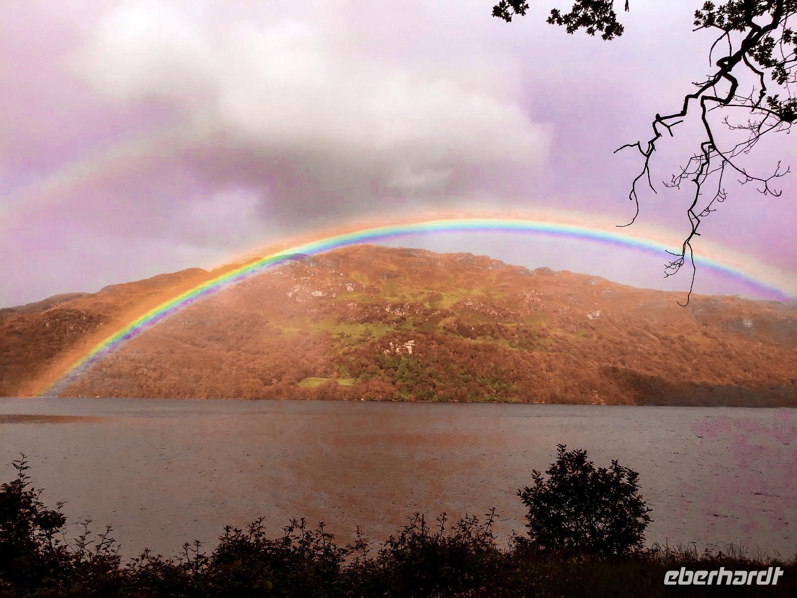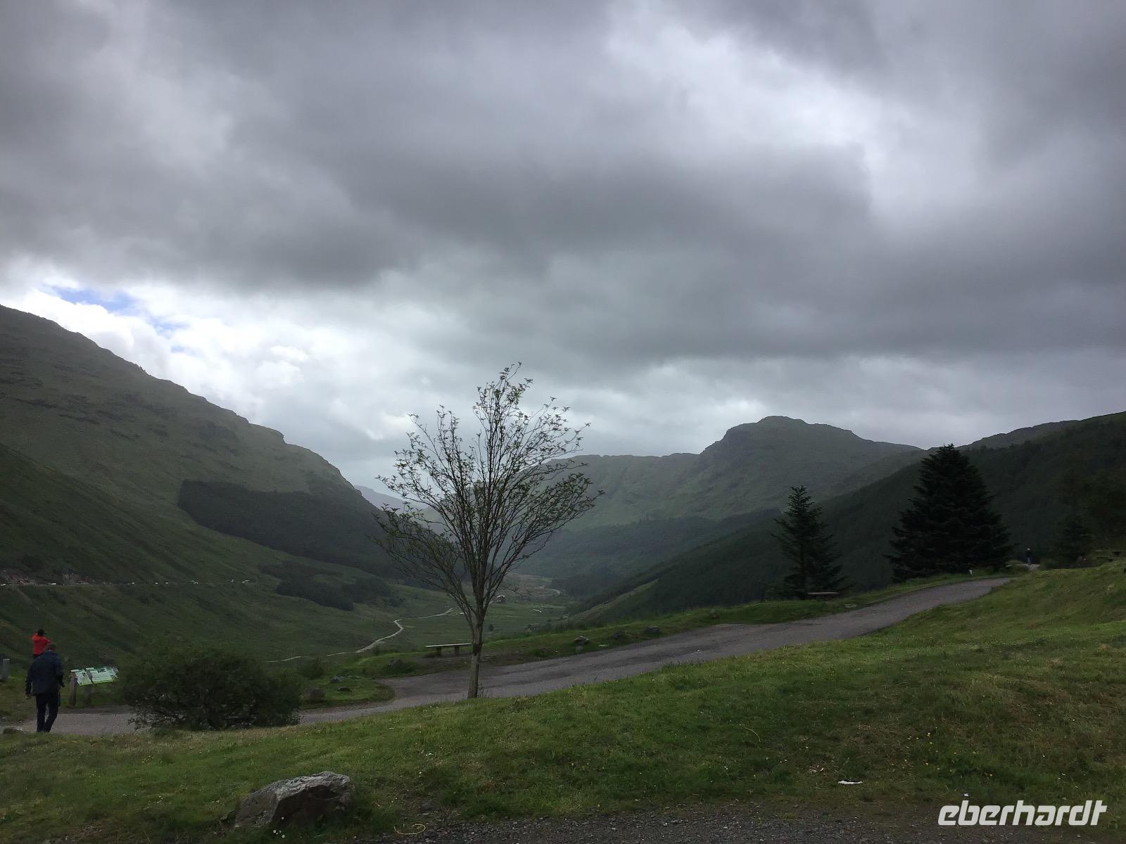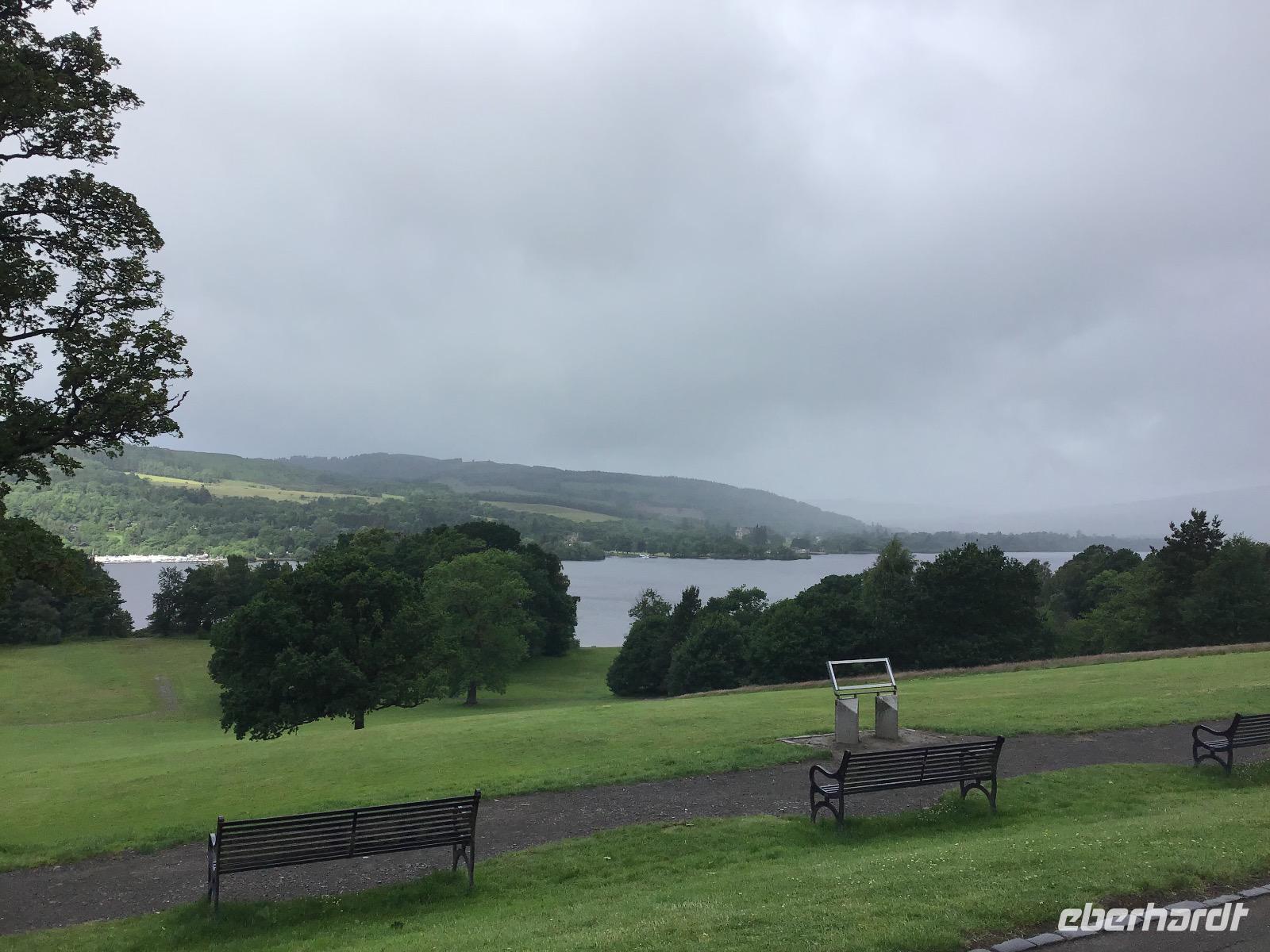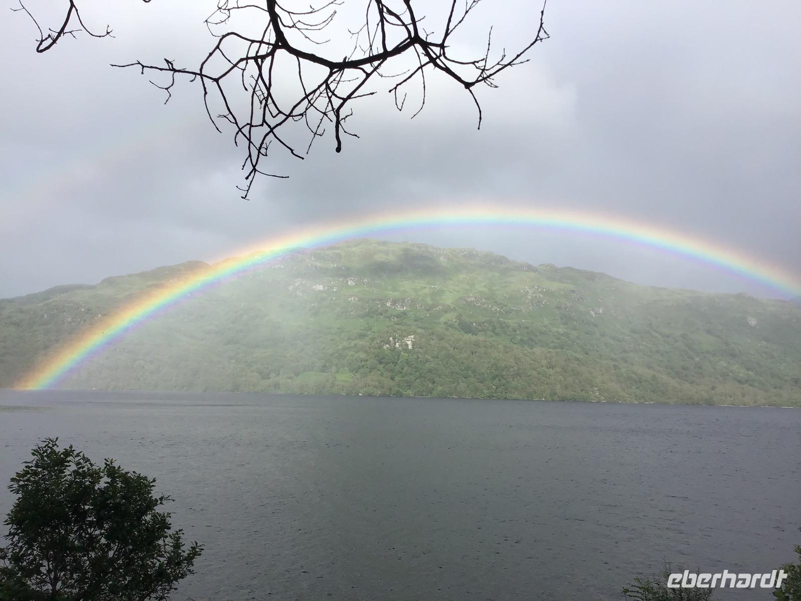 Zum Frühstück gibt es schottische Spezialitäten, zum Beispiel Black Pudding, dicke Bohnen, Würstchen und Hash Browns. Für die, die das nicht mögen, sind auch Rührei, Weißbrot oder Brötchen im Angebot. Um acht machen wir uns auf den Weg. Unser erstes Ziel ist der Loch Lomond. Im Balloch Castle Country Park unternehmen wir einen gemütlichen Vormittagsspaziergang. Nach zwanzig Minuten erreichen wir das Balloch Castle. Von hier haben wir einen traumhaften Ausblick auf den Loch Lomond. Das Wetter ist typisch schottisch: wechselhaft. Dicke Wolken, Nieselregen und Sonne wechseln sich ab. Als wir am See ankommen, müssen wir uns noch unter unsere Schirme flüchten. Doch kaum wenden wir uns zum Gehen, zeigt sich Klärchen und beleuchtet Loch Lomond. Nach einem gemütlichen Spaziergang zurück zum Parkplatz fahren wir weiter nach Inverary. Hier besichtigen wir das Castle mit seiner beeindruckenden Waffensammlung. Sogar ein paar Dolchscheiden aus dem Nachlass von Rob Roy, dem schottischen Robin Hood, sind hier zu bewundern. In Oban lädt der kleine Hafen zum Verweilen ein. Nachmittags durchqueren wir Glenn Coe, das Tal der Tränen und denken an das Massaker, das sich hier Mitte des 17. Jahrhunderts ereignet hat. Heute ist es friedlich hier. Viele Lochs (Seen) und Glenns (Täler) warten darauf, fotografiert zu werden und in unsere Reisetagebücher zu wandern.