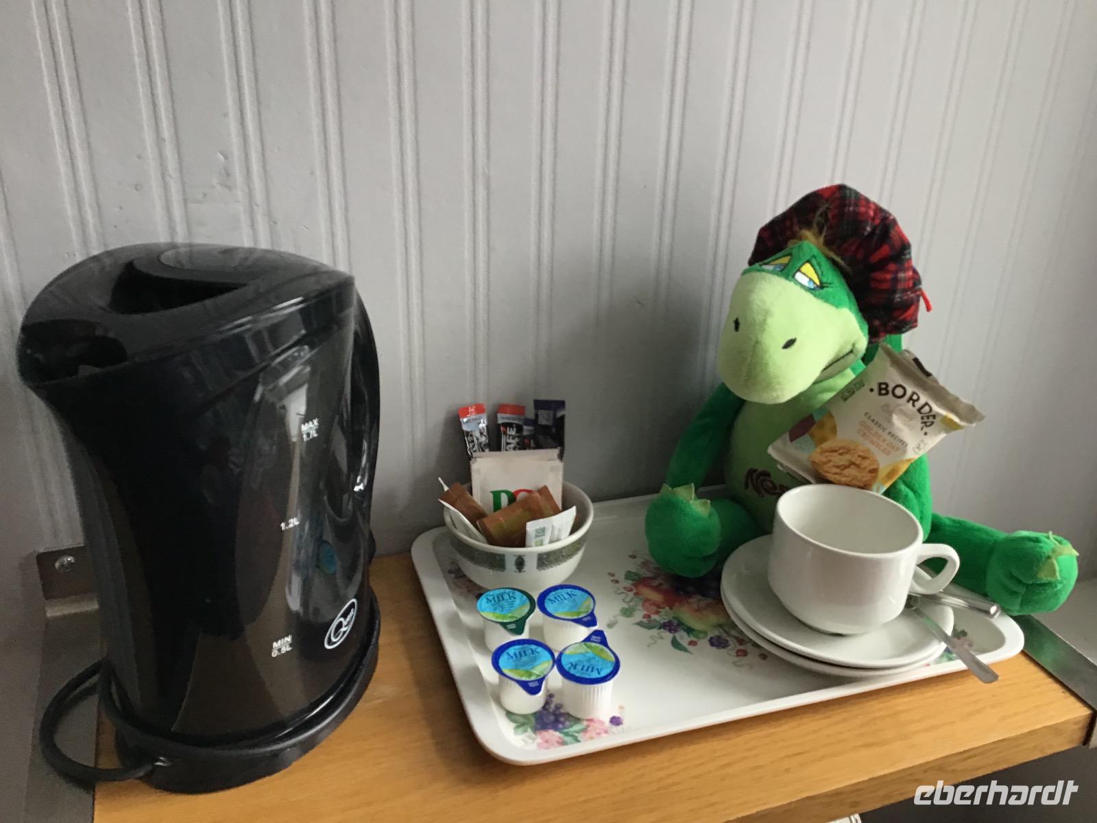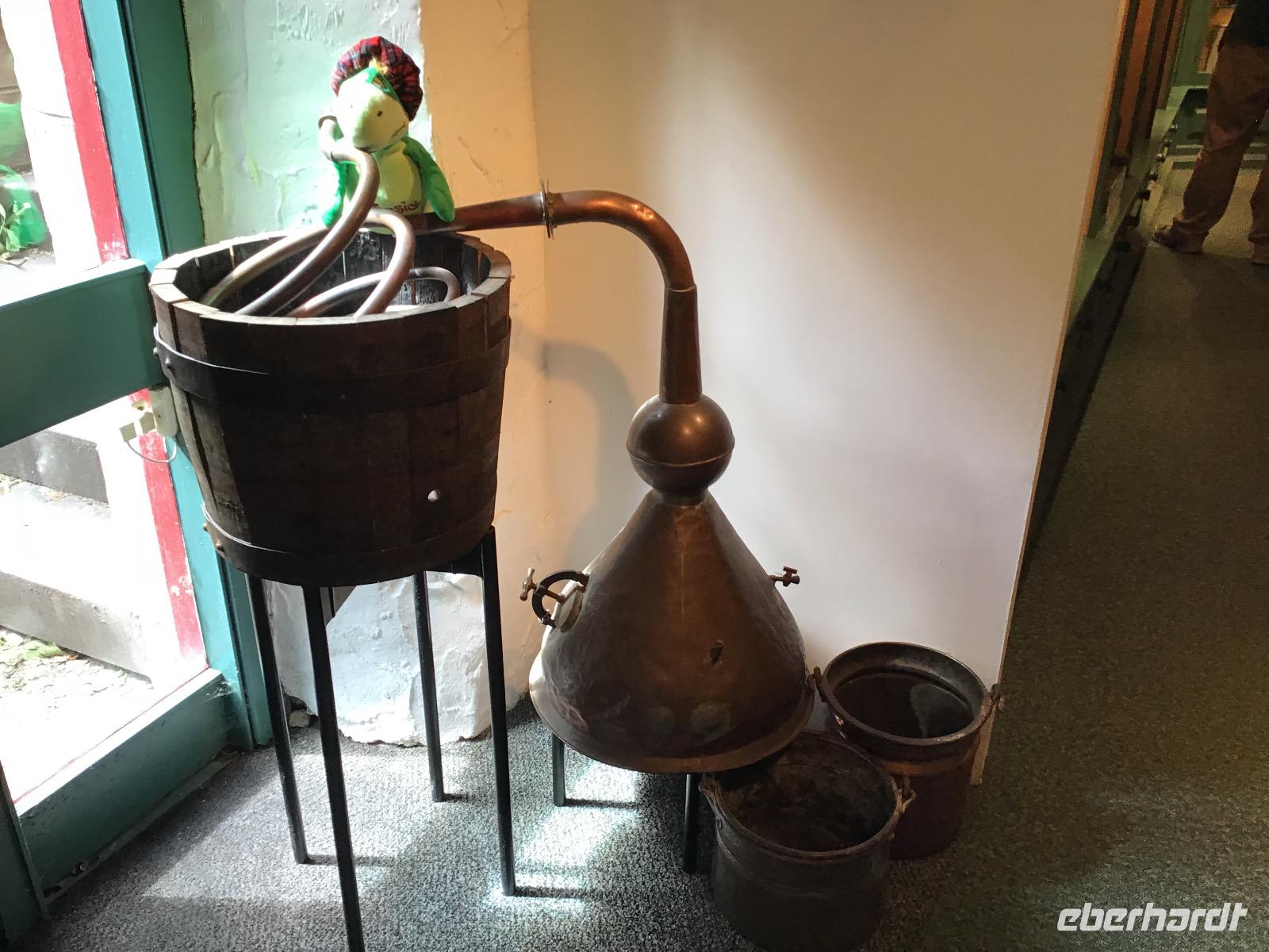 In der Blair Atoll Destillerie erfahren wir am Nachmittag auf amüsante Weise, wie Whisky gebrannt wird. Selbstverständlich verkosten wir den guten Tropfen. Erst das Glas mit beiden Händen auf Körpertemperatur bringen, dann riechen. Mit dem ersten Schluck den Mund ausspülen, das desinfiziert. Und dann schmeckts. Und zwar schmeckt es so gut, dass der clevere Verkäufer gute Geschäfte mit uns macht. Nach einer Stunde Freizeit im schönen Örtchen Pitlochry setzen wir unsere Fahrt Richtung Newtonmore fort. Wir sind gut in der Zeit, deshalb fahren wir erst einmal am Hotel vorbei und unternehmen einen Abstecher ins nahegelegenen Freilichtmuseum. Im Hotel Balavil werden wir anschließend bereits erwartet. Die Zimmerschlüssel sind vorbereitet. Freundlicherweise haben die Hotelangestellten für uns das Menü mit Hilfe von Google auf Deutsch übersetzt. Eine Geste der Gastfreundschaft. Wir fühlen uns willkommen.