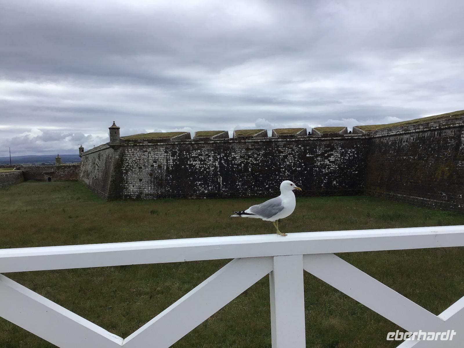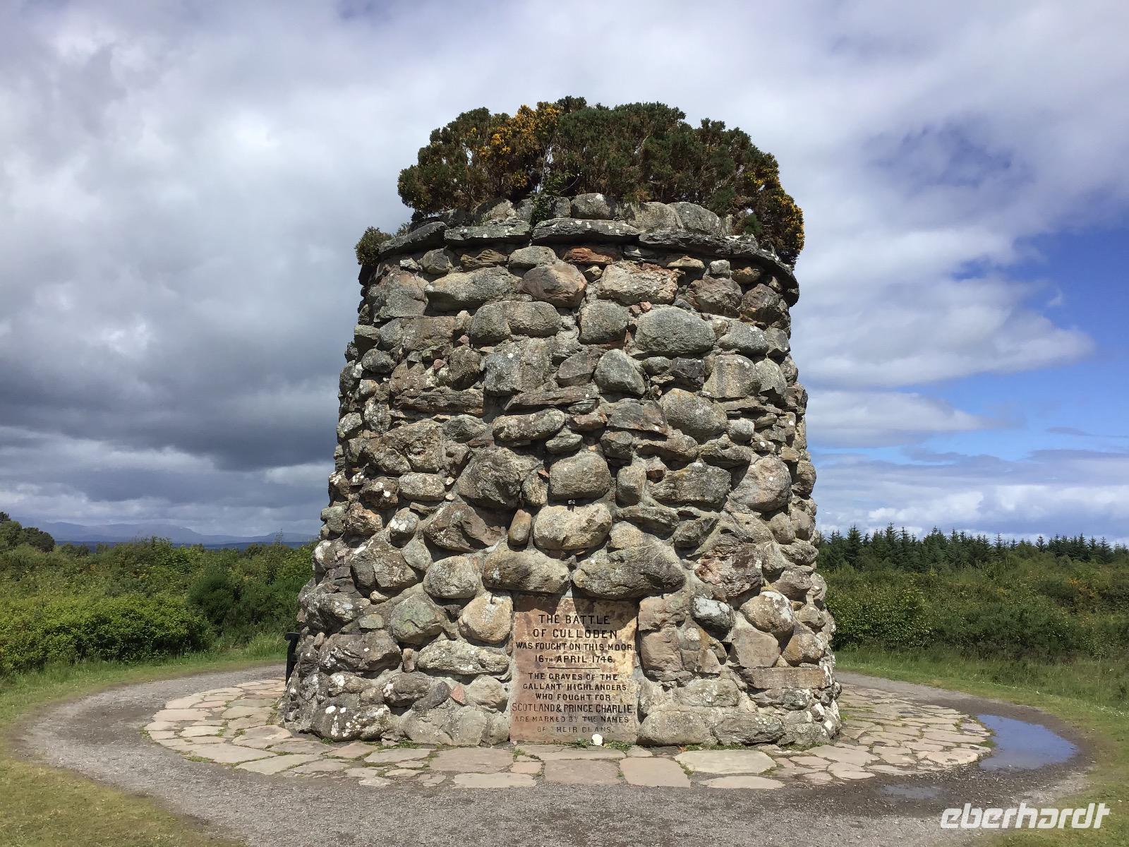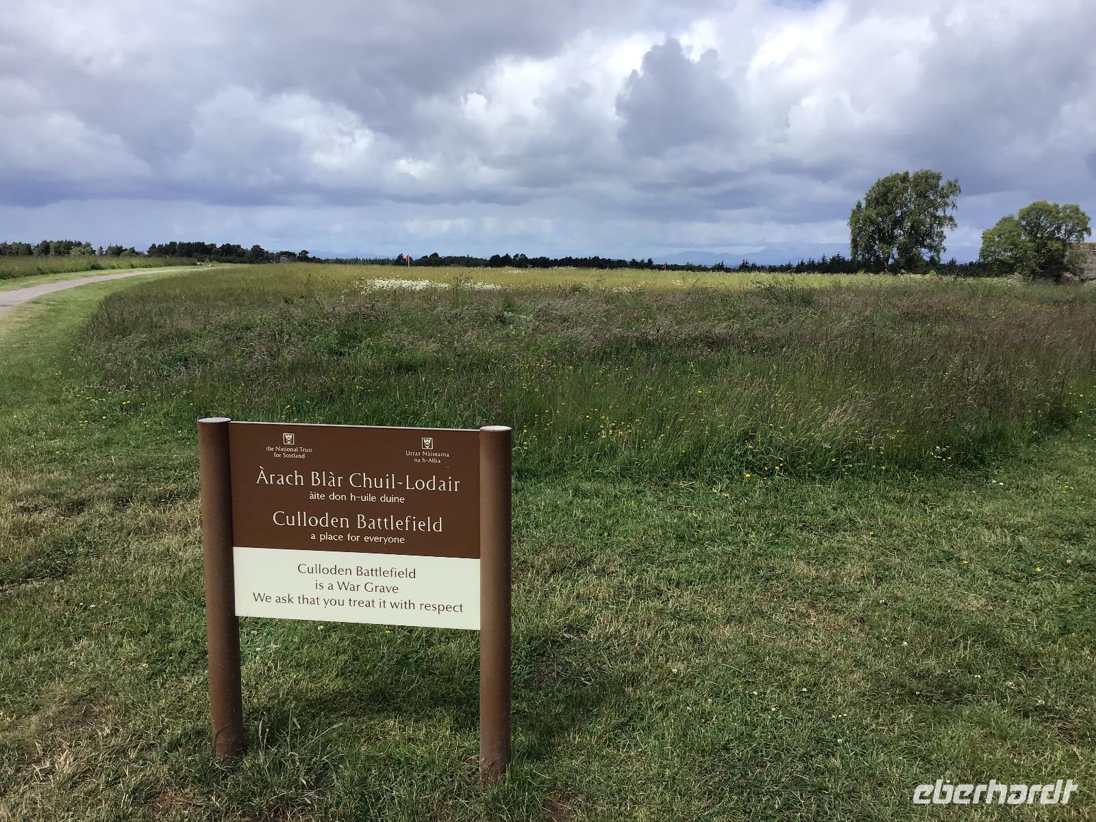 Nach einem schottischen Frühstück mit dicken Bohnen, Spiegelei, Black Pudding und Haggis starten wir halb neun unseren Ausflug. Nach einer guten Stunde erreichen wir Fort George am Morray Firth, eine immer noch aktive Militärbasis mit großem Besucherareal. Audioguides versorgen uns mit Informationen zu sehenswerten Punkten. In der Kapelle weilt im mittleren Fenster der einzige Engel der Welt mit einem Dudelsack. Nach der ausführlichen Besichtigung dieses Bollwerks, fahren wir weiter bis nach Culloden, dem Schlachtfeld, auf dem die Highlander ihre Kultur verloren. Nicht nur, dass Hunderte ums Leben kamen, als Folge der verlorenen Schlacht wurde das Spielen von Dudelsack und das Tragen der traditionellen Kleidung mit Kilt und Tartan, verboten.