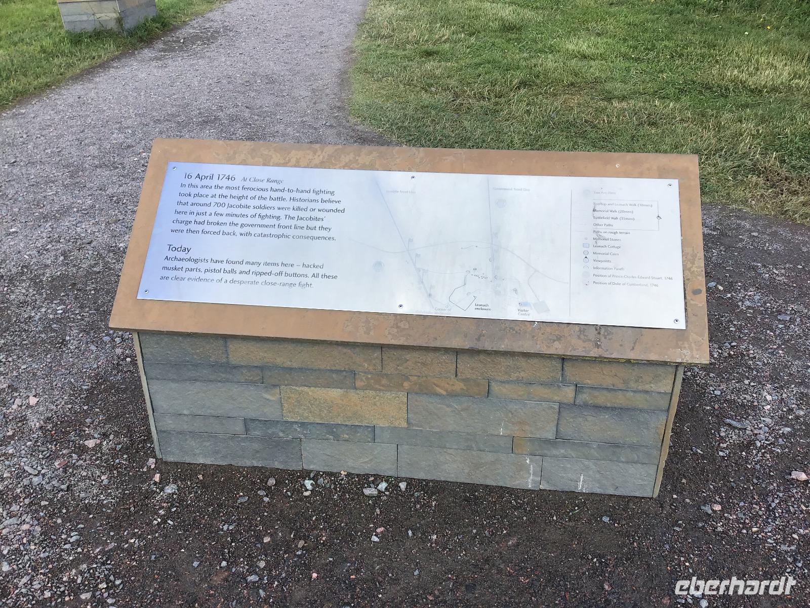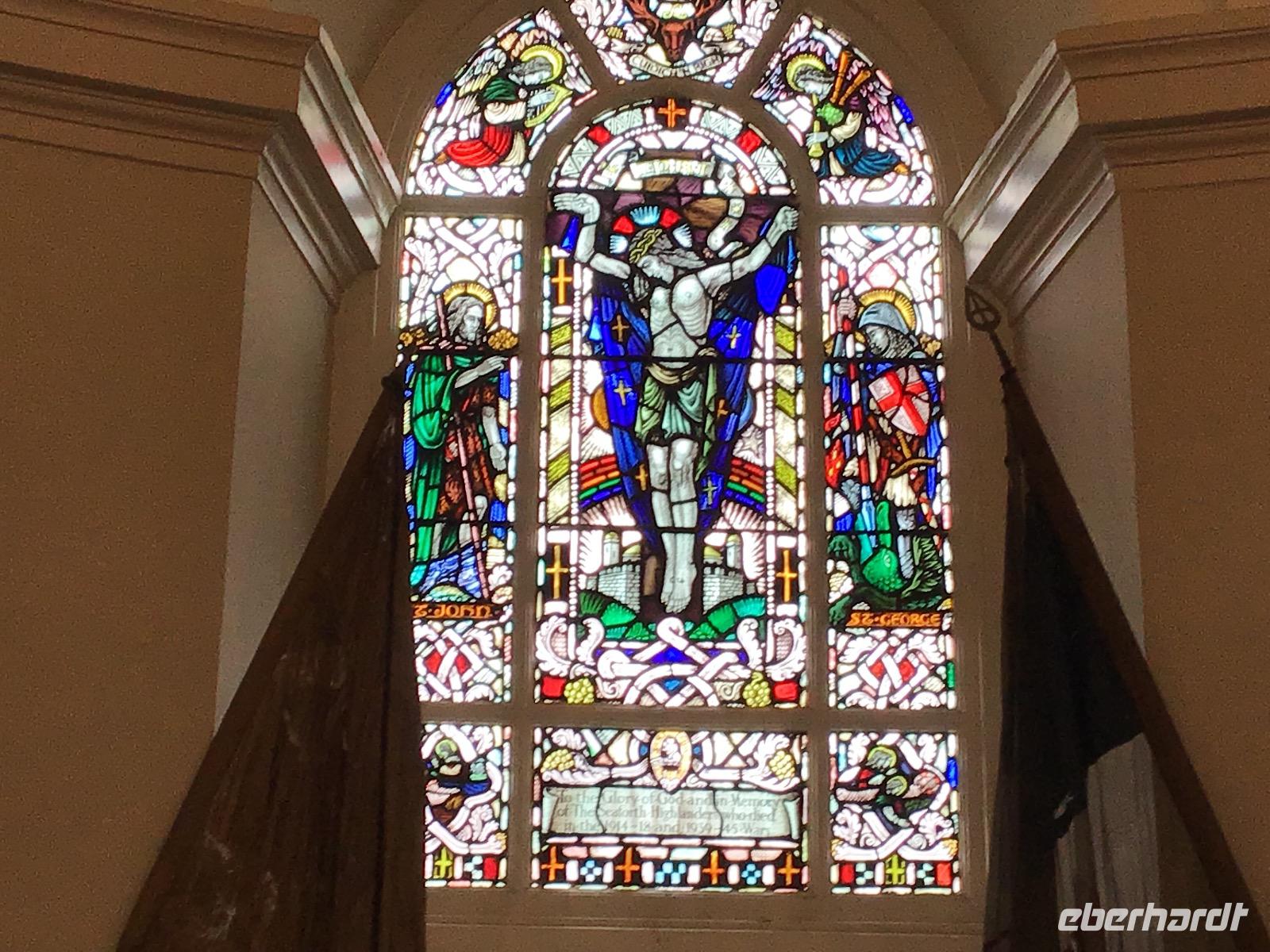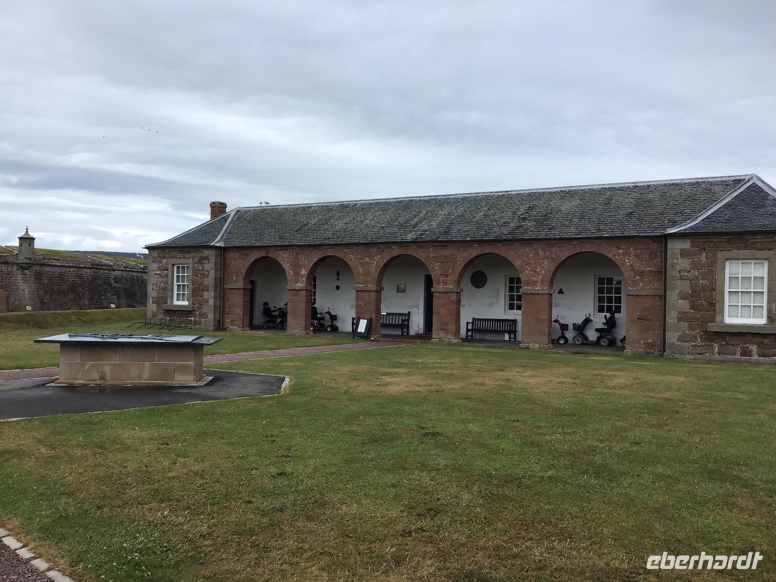 Nach einem schottischen Frühstück mit dicken Bohnen, Spiegelei, Black Pudding und Haggis starten wir halb neun unseren Ausflug. Nach einer guten Stunde erreichen wir Fort George am Morray Firth, eine immer noch aktive Militärbasis mit großem Besucherareal. Audioguides versorgen uns mit Informationen zu sehenswerten Punkten. In der Kapelle weilt im mittleren Fenster der einzige Engel der Welt mit einem Dudelsack. Nach der ausführlichen Besichtigung dieses Bollwerks, fahren wir weiter bis nach Culloden, dem Schlachtfeld, auf dem die Highlander ihre Kultur verloren. Nicht nur, dass Hunderte ums Leben kamen, als Folge der verlorenen Schlacht wurde das Spielen von Dudelsack und das Tragen der traditionellen Kleidung mit Kilt und Tartan, verboten.