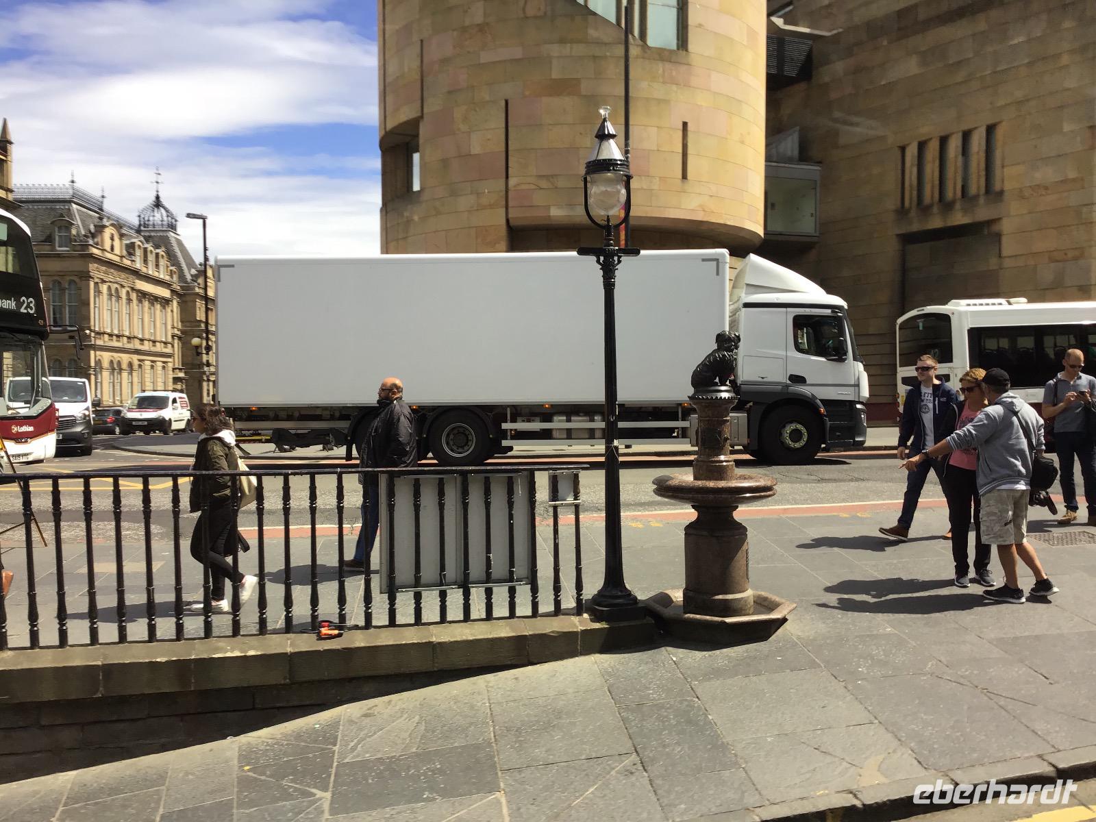 Wir dürfen erst um acht in das Frühstücksrestaurant. In diesem Hotel herrschen strenge Regeln. Satt und zufrieden fahren wir nach Edinburgh. Mit Hanna, unserer örtlichen Stadtführerin, erklimmen wir den Carlton Hill, von dem wir einen rundum schönen Blick auf Edinburgh haben. Anschließend setzen wir die Fahrt mit dem Bus fort. Am Hollyrood Castle steigen wir wieder aus und legen eine kleine Pause ein. WC? Oder Souvenir? Kaffee? Je nachdem, was das Herz begehrt. Wir setzen die Stadtrundfahrt fort, kommen am Grasmarkt vorbei, lauschen den Geschichten von Verbrechern, die Leichen verkauften, um reich zu werden oder der Geschichte von Robert Louis Stevenson über Jekyll und Hyde, dessen Vorbild in Edinburgh lebte. Albert auch Bobby, der Hund, der vierzehn Jahre lang auf sein verstorbenes Herrschen wartete, bis er selbst das Zeitliche segnete, begegnet uns auf der Tour. Am Edinburgh Castle verabschieden wir uns von Hanna und schaffen es gerade noch rechtzeitig, um den Knall zu hören, der täglich um dreizehn Uhr von der Kanone auf dem Edinburgh Castle ausgelöst wird. Königliche Zimmer und Kronjuwelen werden besichtigt, dann ist es Zeit, durch Edinburgh zu bummeln. Wir Schlemmern und shoppen uns durch die Stadt und fotografieren alles, was uns vor die Linse kommt. Bis zum Abend. Jetzt kehren wir in einen typischen schottischen Pub ein. Der übliche Lärm ist kaum zu hören, denn diesmal sind die Fernseher lauter als die Besucher - es ist Fußball Weltmeisterschaft.