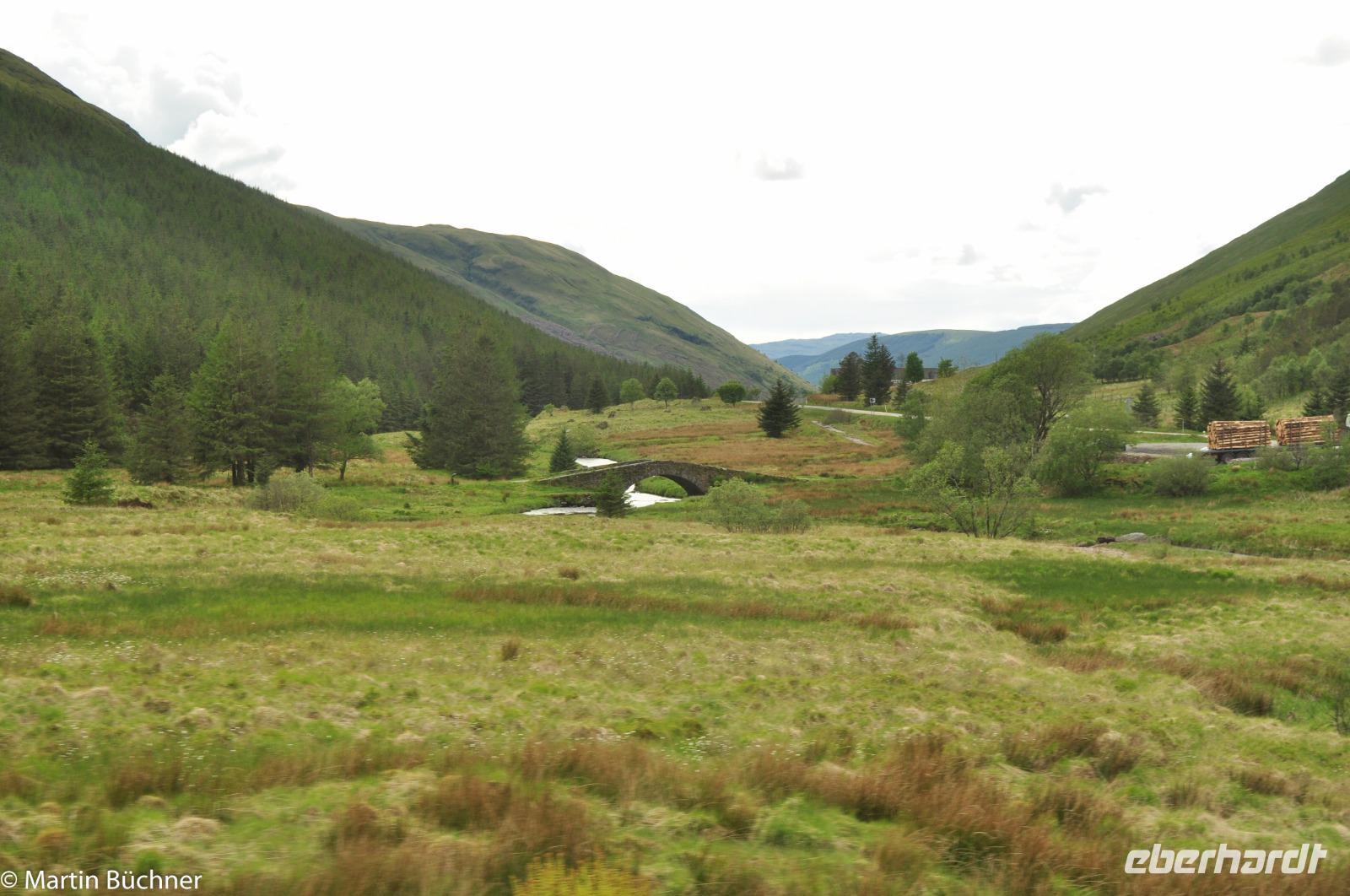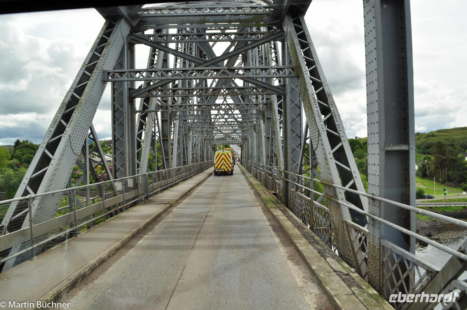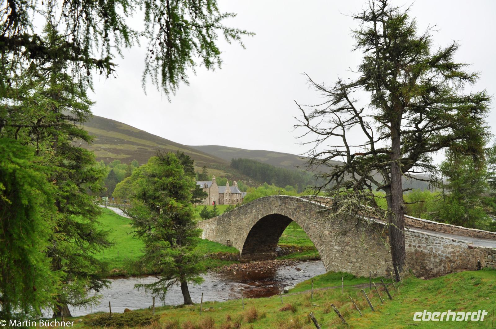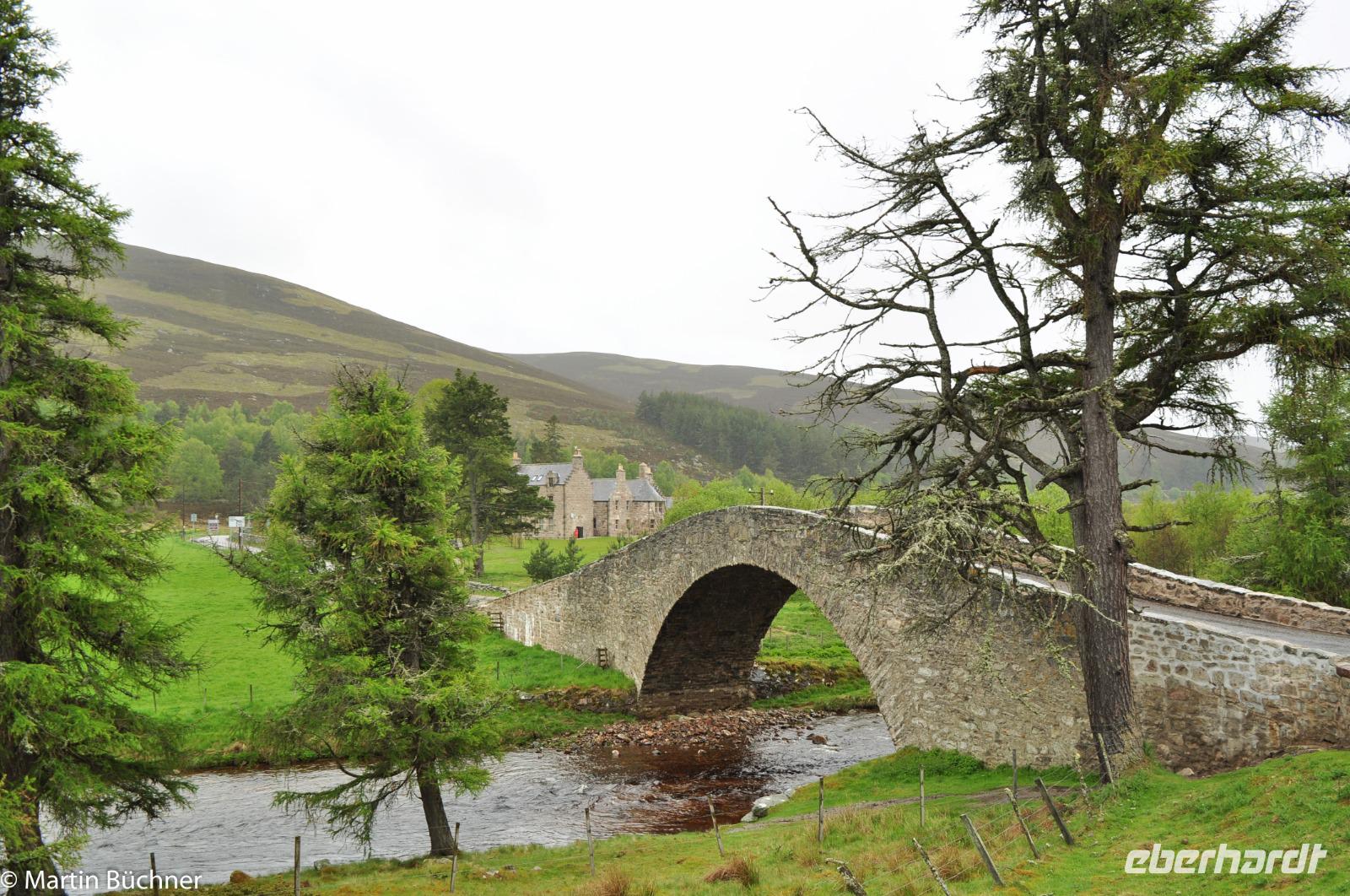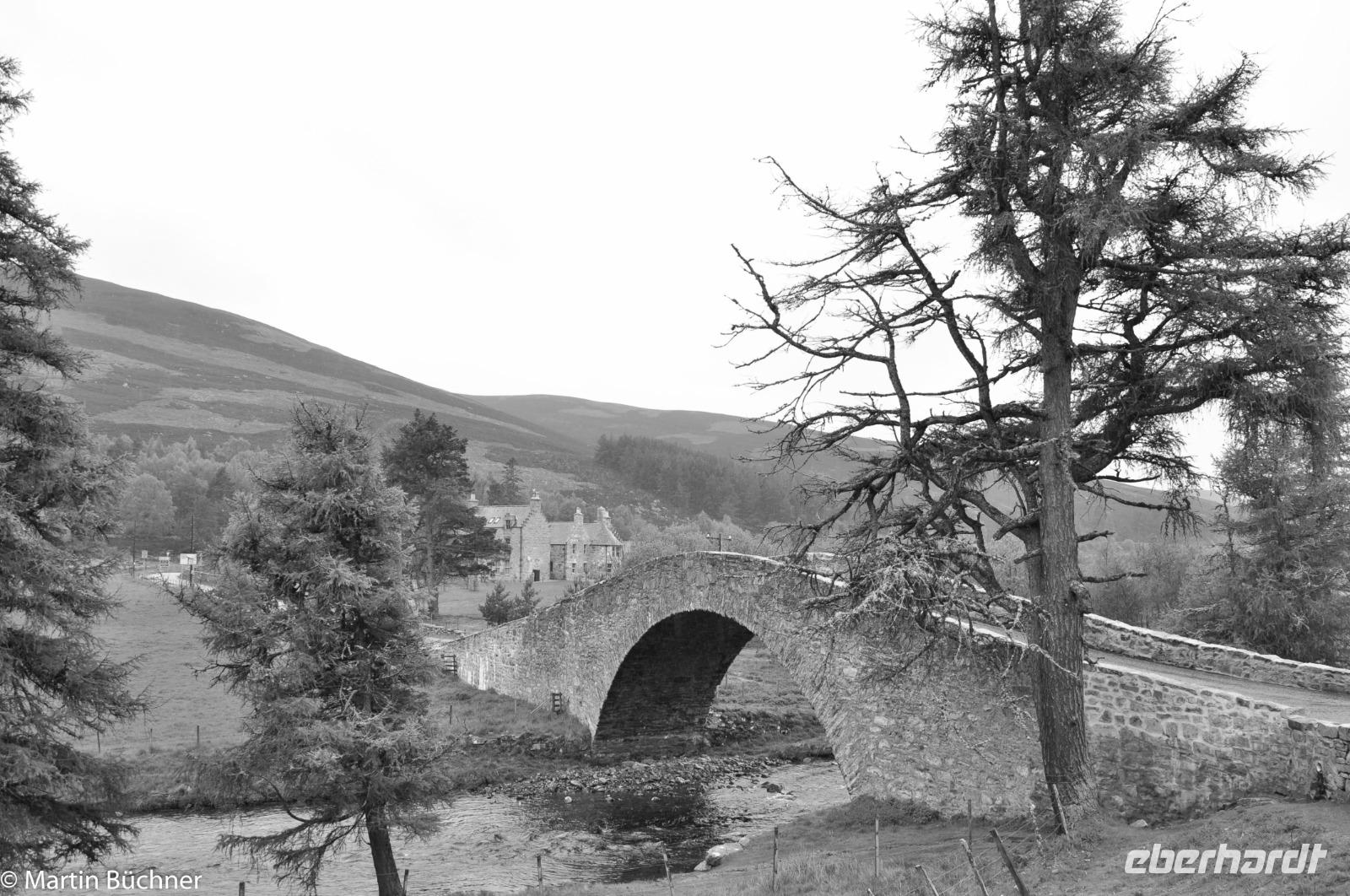 Auf dem Weg in Richtung Ballater überqueren wir die River Gairn Bridge. Wir steigen aus und gehen zu Fuß über die Brücke, natürlich nur um die spektakuläre Überfahrt unseres Busses über diese steile alte Steinbrücke zu beobachten. Unser Bus hat einen perfekt gepflegten Unterboden!!