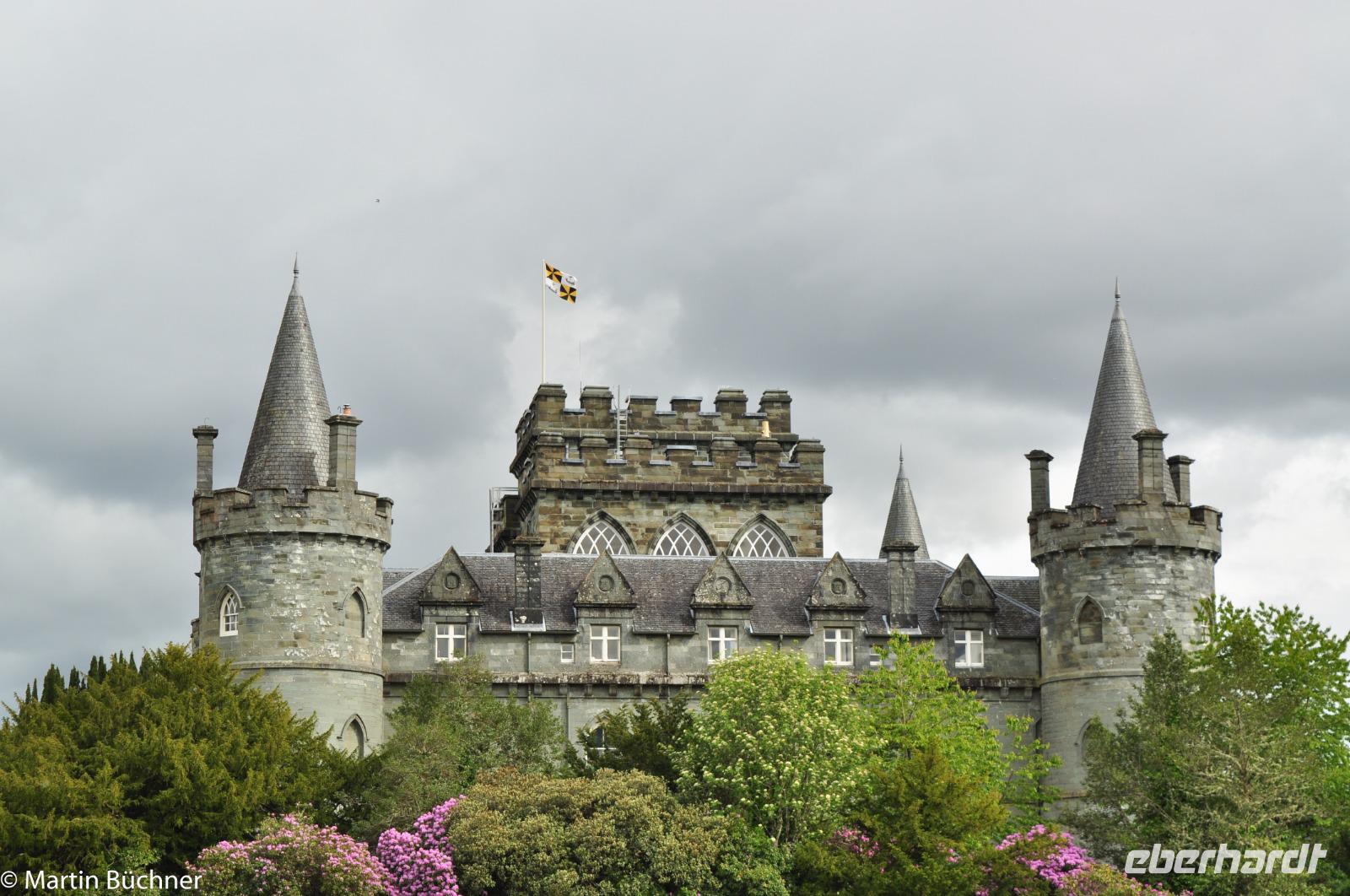 Am Nachmittag fahren wir über Loch Awe (lies: „Or"), in dem das wilde Kilchurn Castle liegt weiter nach Inveraray. Der Ort ist der Stammsitz des Campbell Clans, dem auch heute noch mächtigsten Clan Schottlands. Der amtierende Duke ist Mitglied im Londoner Oberhaus und adliger Stellvertreter der Queen.