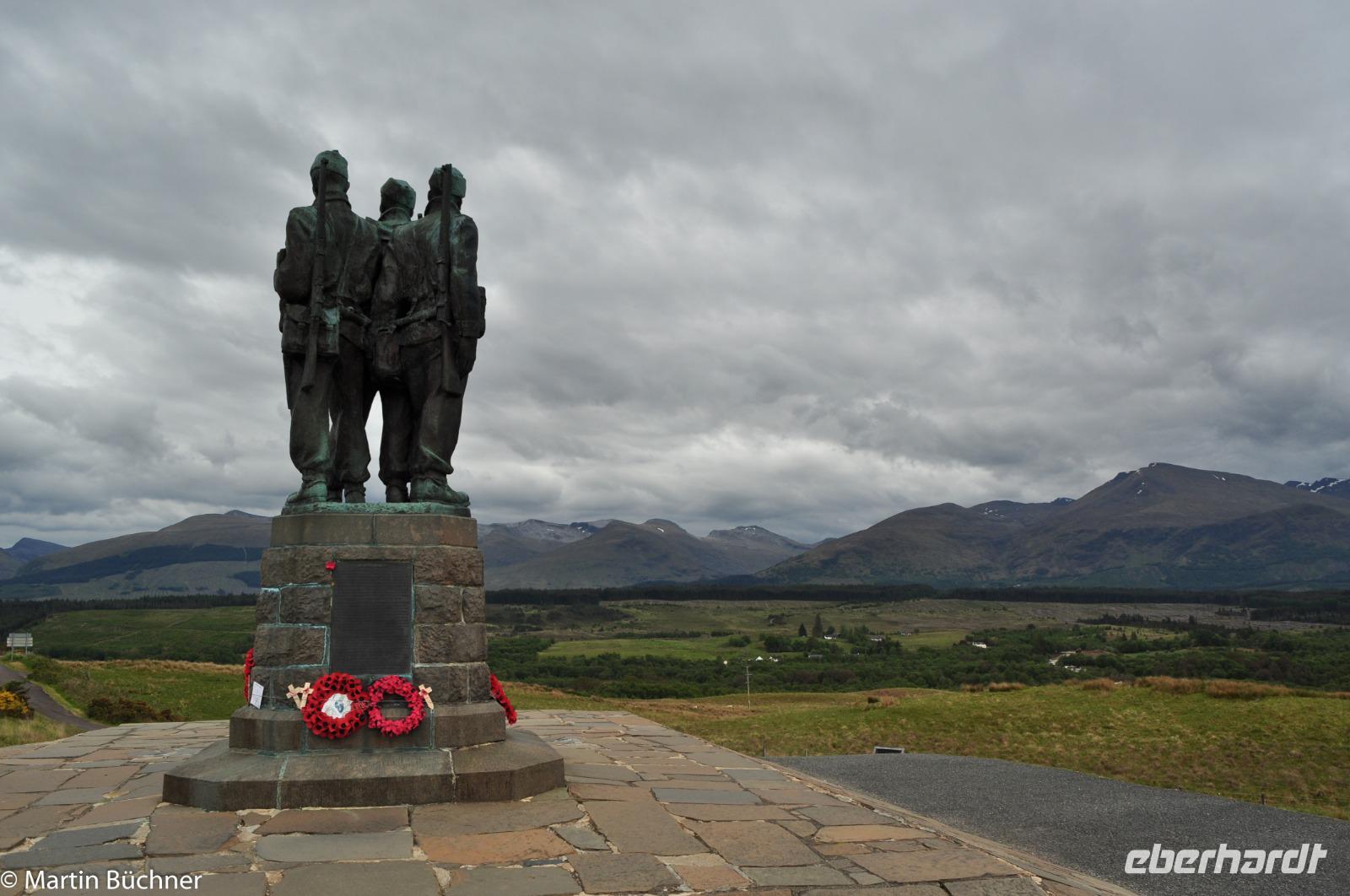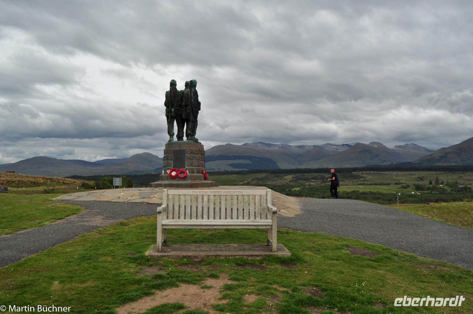 In Spean Bridge liegt das Commando Memorial, eine Gedenkstätte für gefallene Soldaten diverser britische Kriegseinsätze. Von hier eröffnet sich ein fantastischer Blick auf die umliegende Bergwelt unter anderem auf den höchsten Gipfel des Vereinigten Königreichs, der Ben Nevis (1.345 m) mit 4.416 ft der höchste der 282 Munros (Berge über 3.000 ft). Dieser Gipfel ist an über 300 Tagen im Jahr Nebel- oder Wolken verhangen. Nicht am heutigen Tag: Klare Sicht, kein Nebel und keine Wolken behindern den Blick! Anschließend geht es zurück nach Newtonmore.